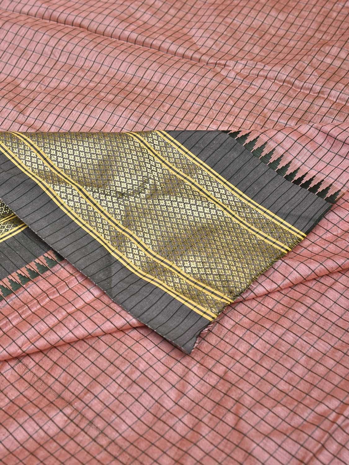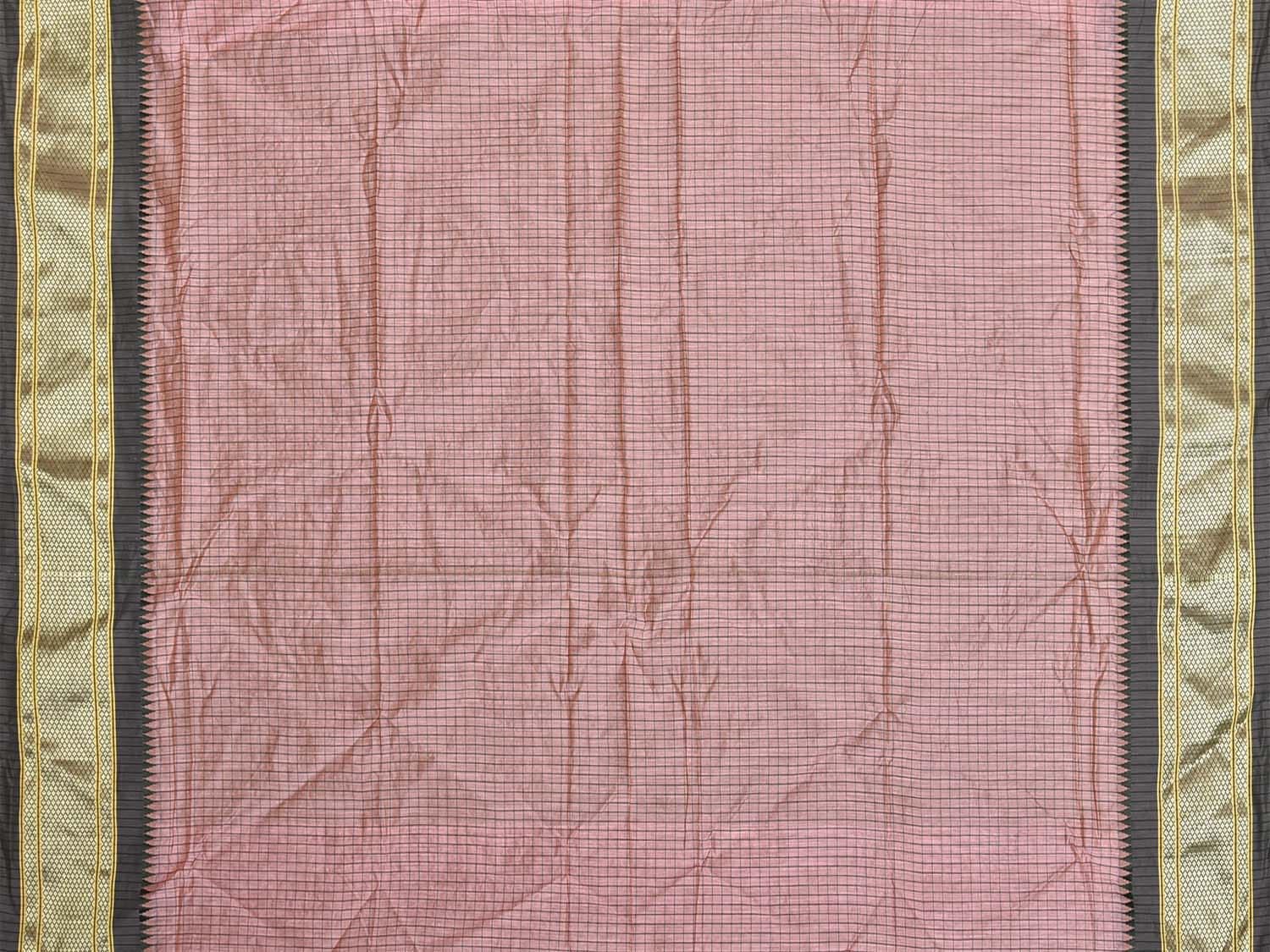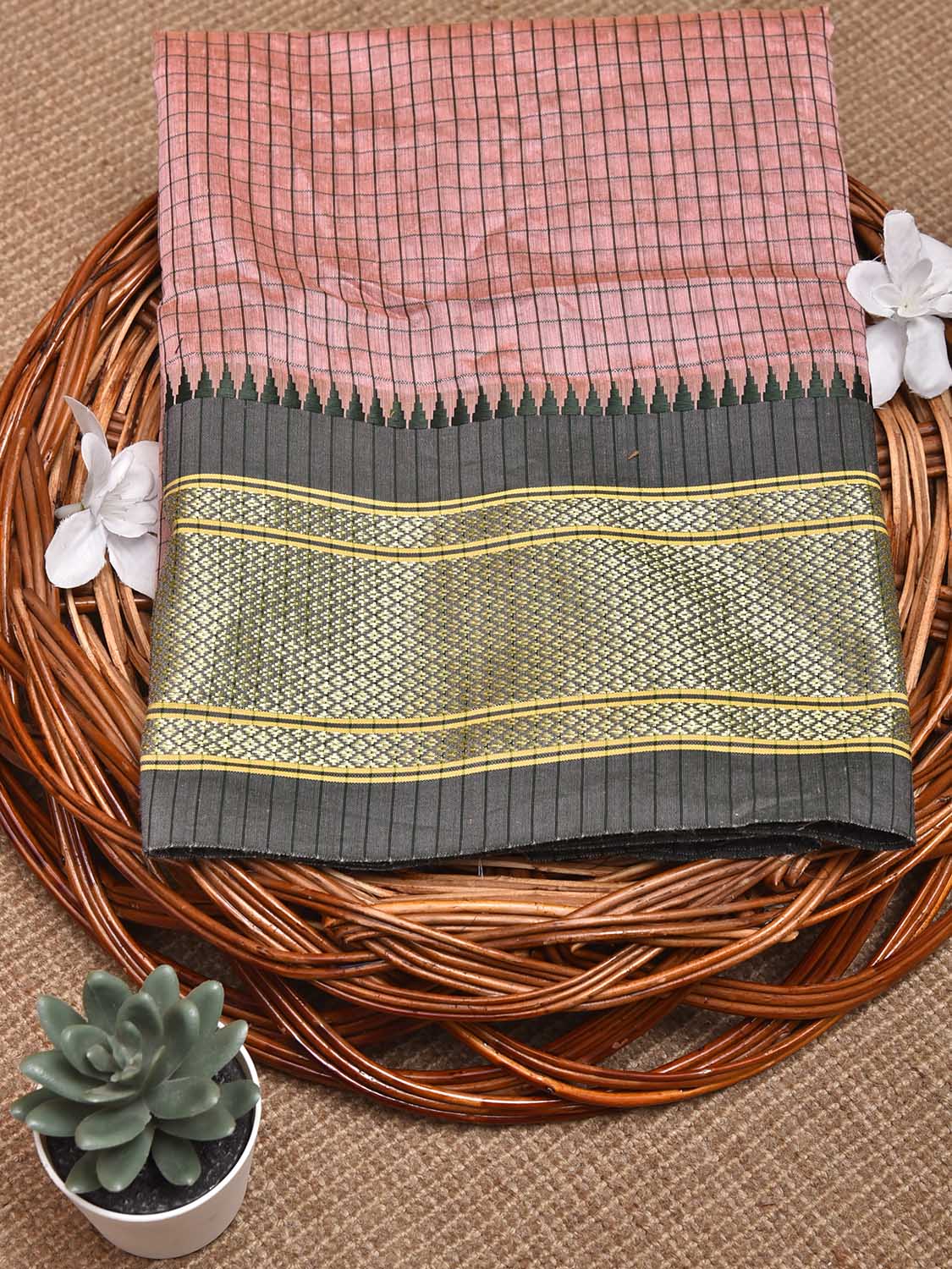 Peach and Green Bamboo Cotton Blouse with Checks Design Length 80cm Width 44 Inches BL0086
