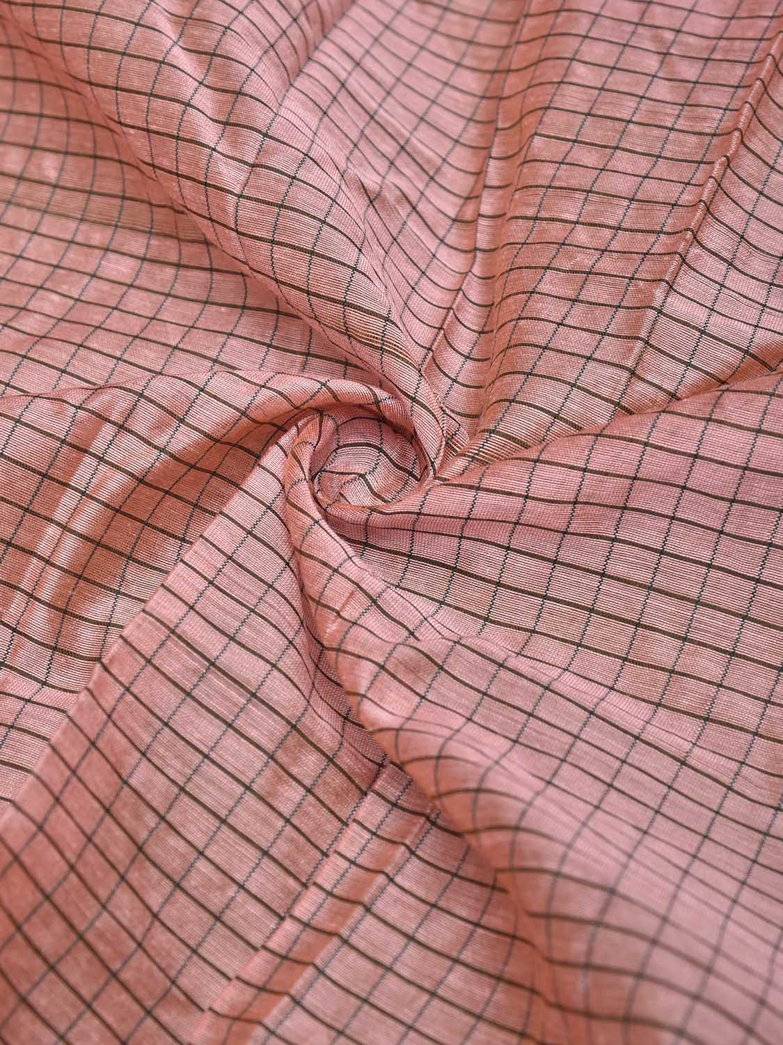 Peach and Green Bamboo Cotton Blouse with Checks Design Length 80cm Width 44 Inches. Beautiful Pattern Blouse Fabric and Easy to Match to Any Suitable Saree. We Advise Gentle Handwash for Fabric Care.