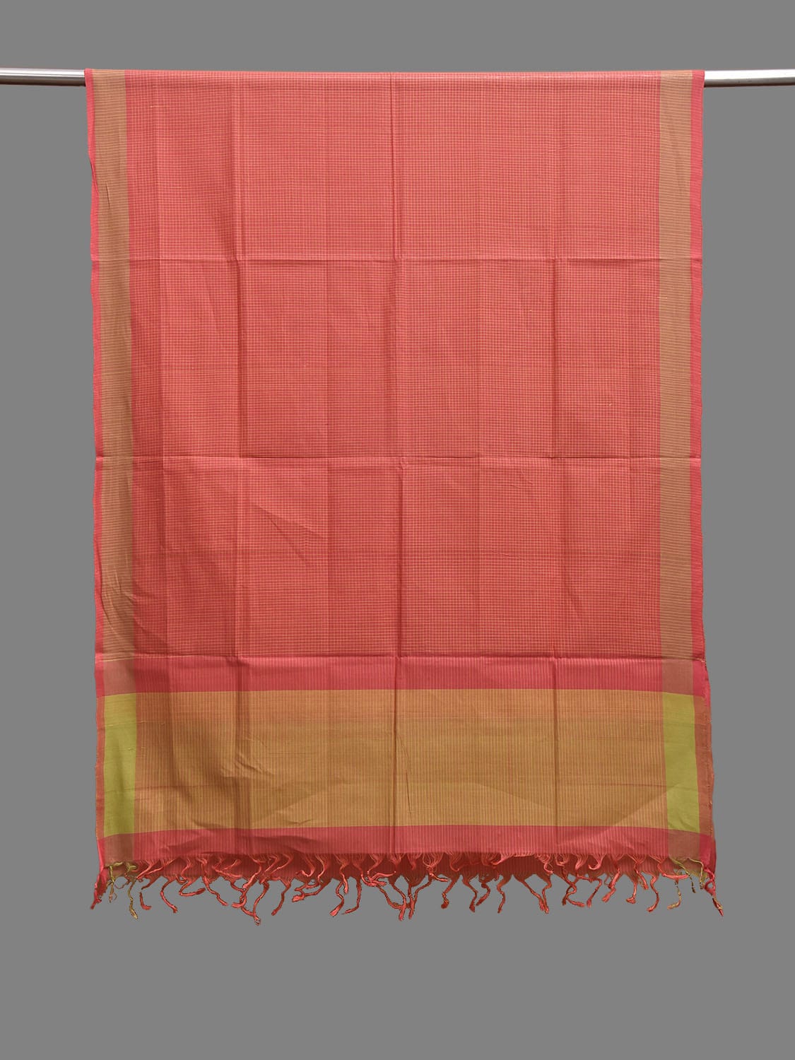 Peach and Green Mangalgiri Cotton Handloom Dupatta with Checks Design. We Advise Gentle Handwash for Fabric Care.