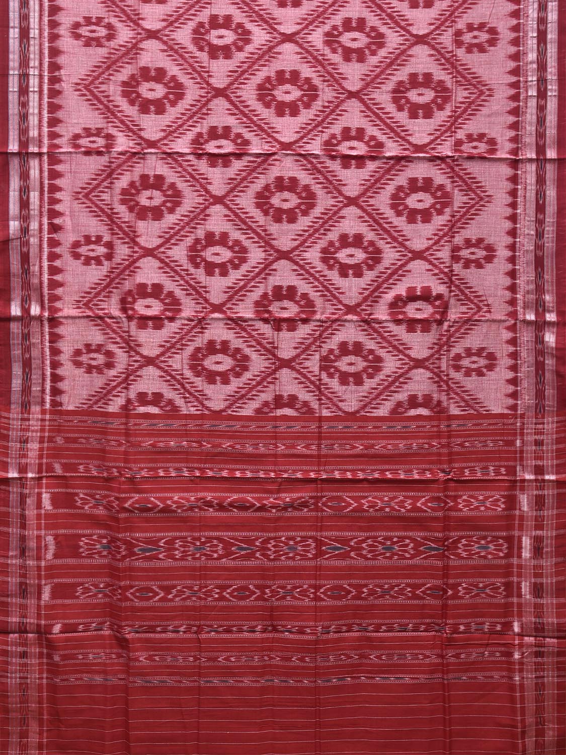 Peach and Red Ikat Cotton Handloom Saree with All Over Body and Pallu Design No Blouse. This Handloom Saree from Andhra Pradesh has been woven using the resist-dyeing, which produces the unique patterns adorning the fabric. We advise gentle handwash separately for fabric care. This saree has no blouse.