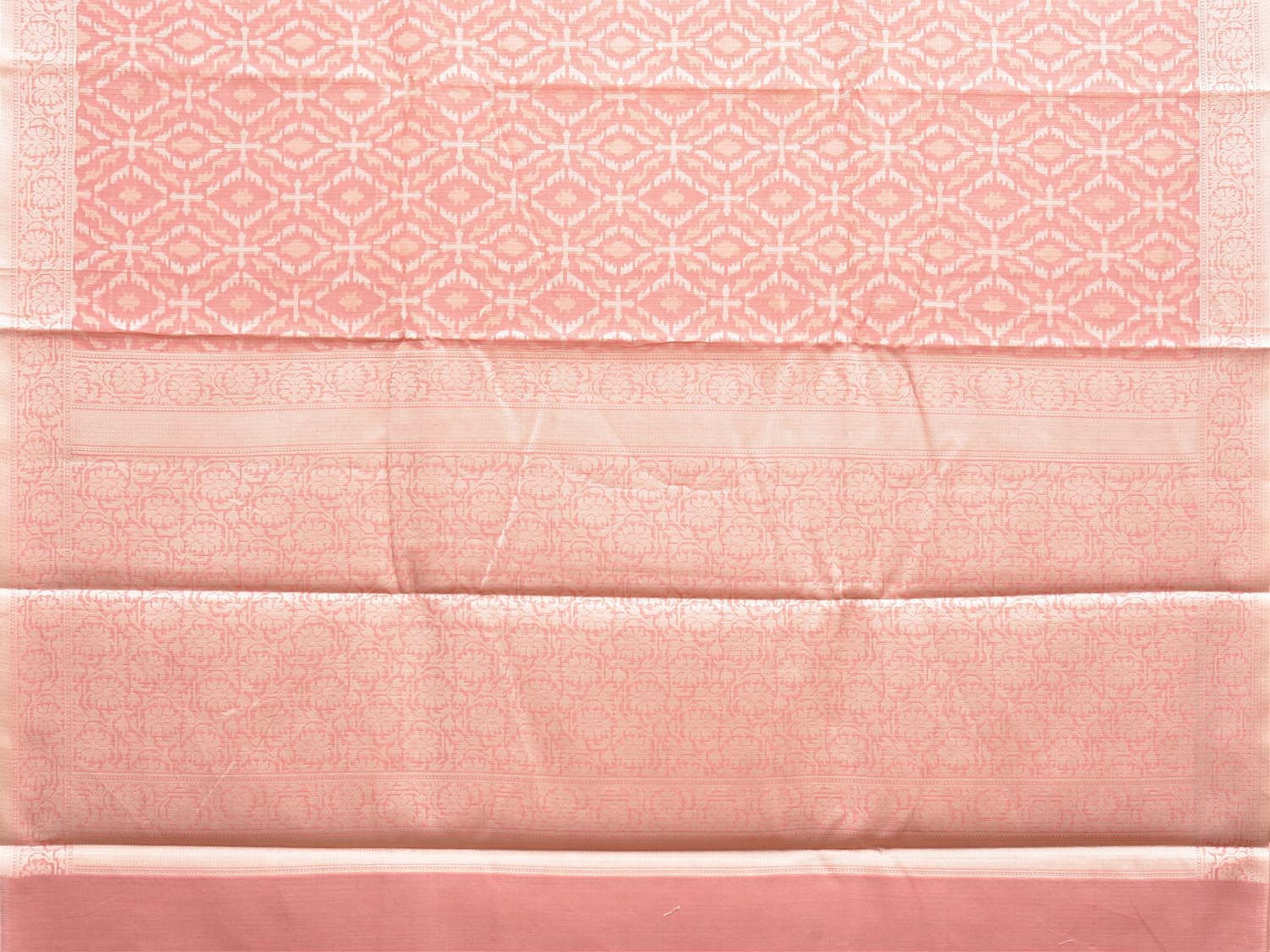 Peach Dhakai Jamdani Cotton Viscose Saree with All Over and Pallu Design. These are some of the traditional Dhakai Jamdani designs, these sarees have geometric designs and sometimes floral or combination of both. We advice gentle handwash separately for fabric care.