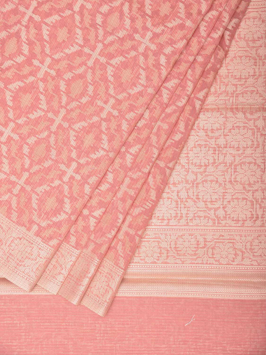 Peach Dhakai Jamdani Cotton Viscose Saree with All Over and Pallu Design dj0354