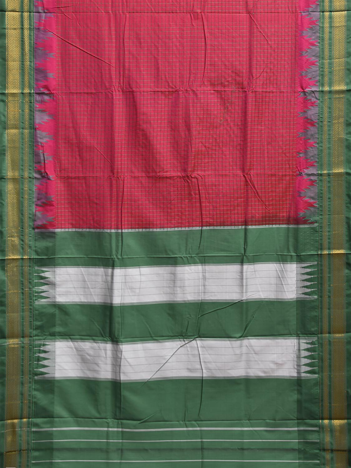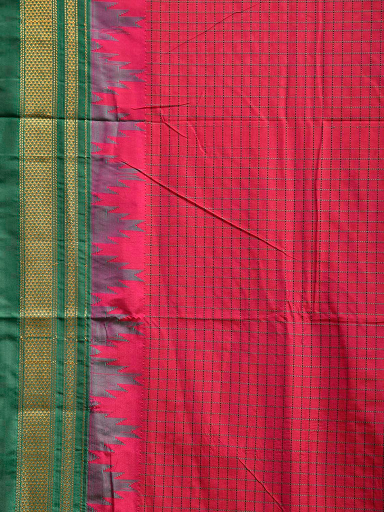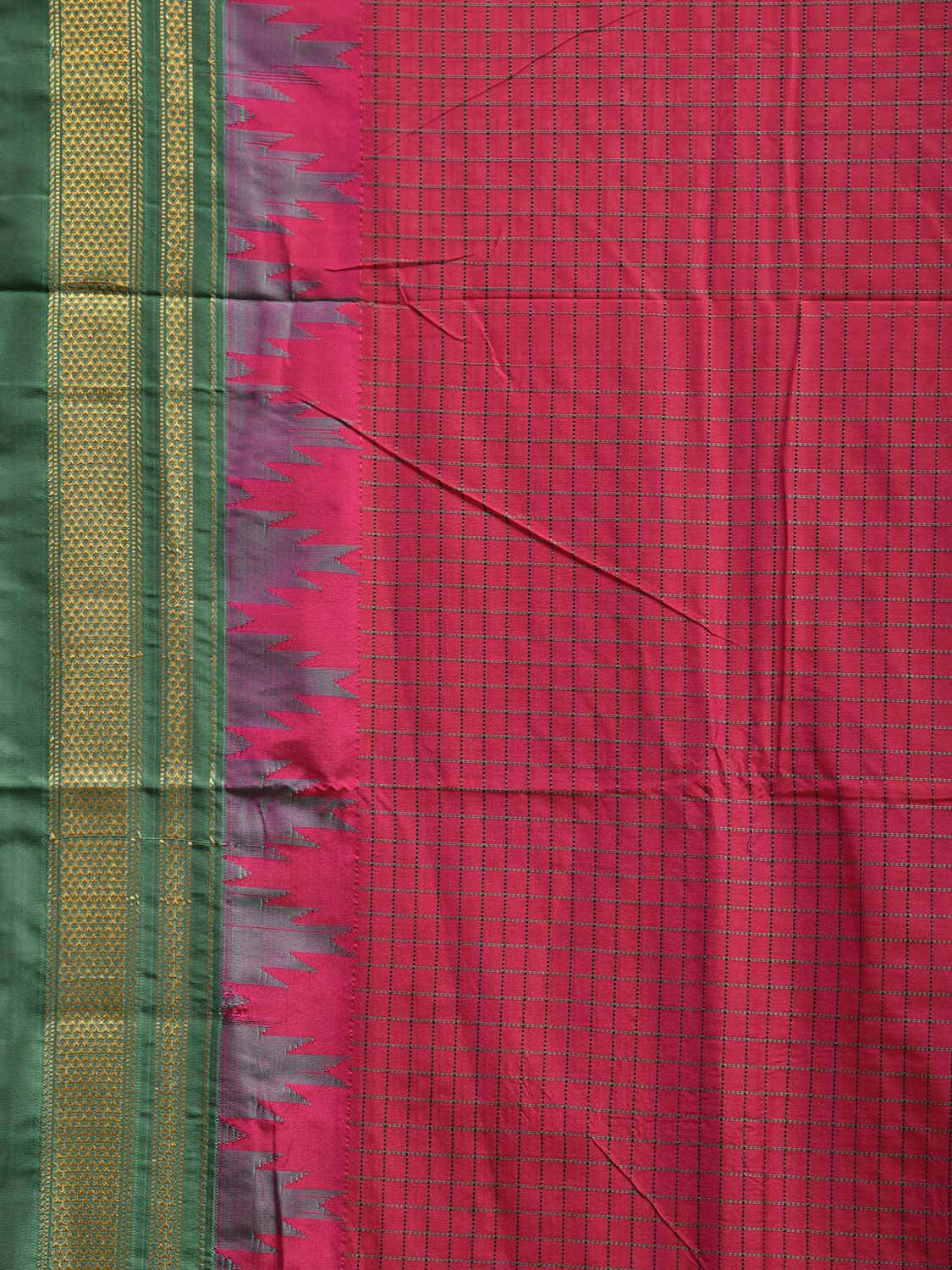 Pink and Green ilkal Viscose Saree with Big Temple Border and Checks Design. For fabric care we advise gentle handwash separately.