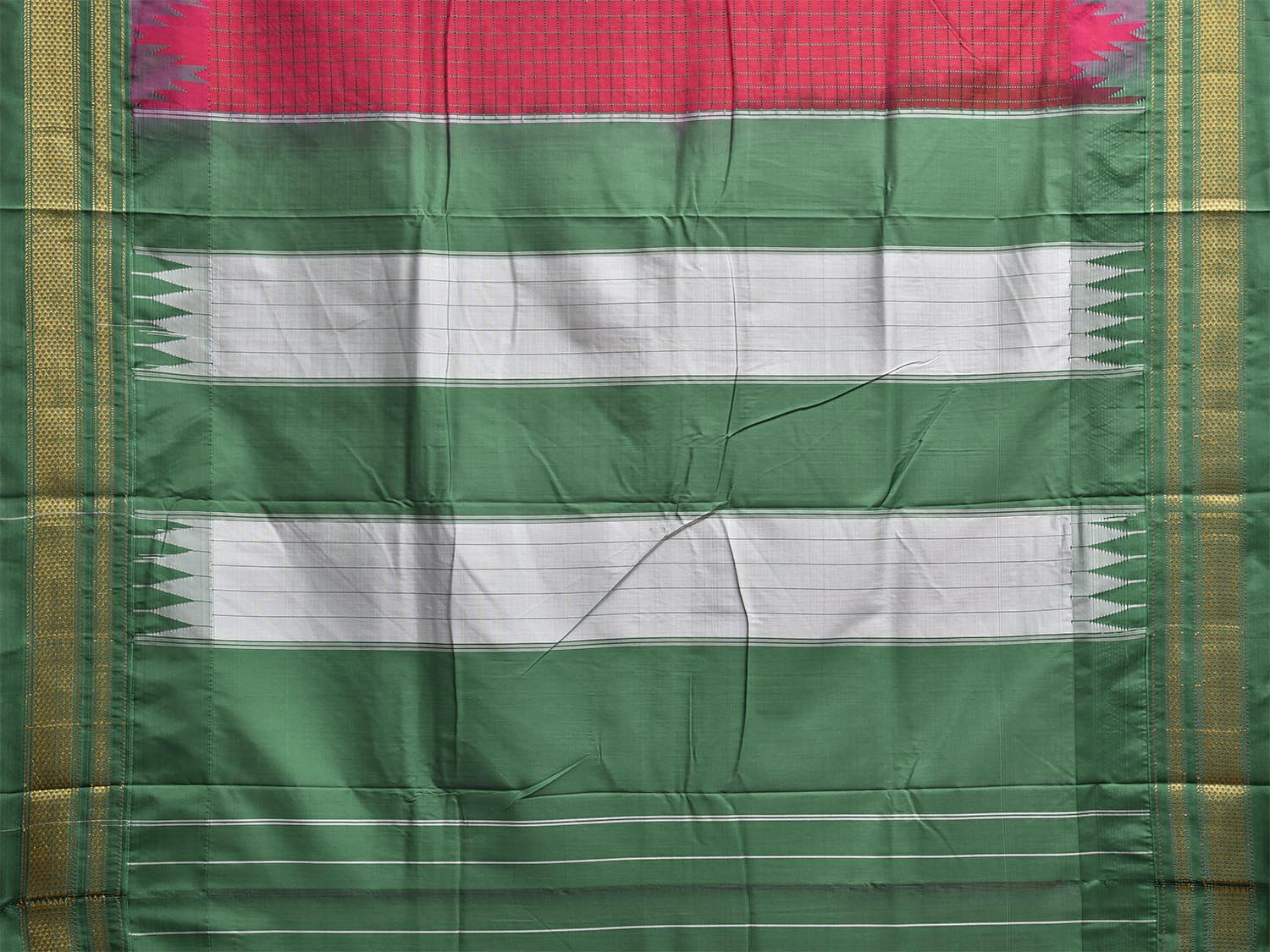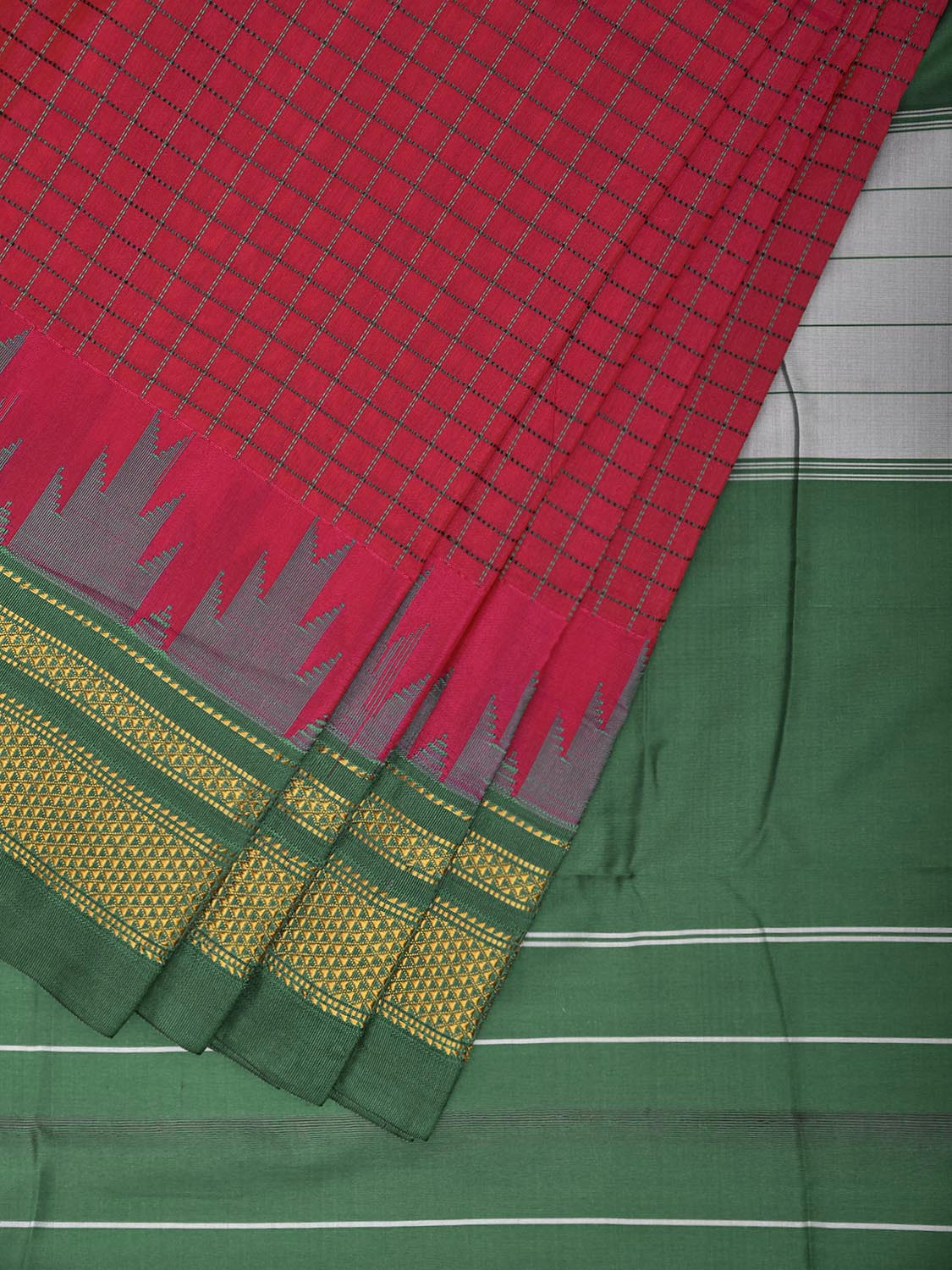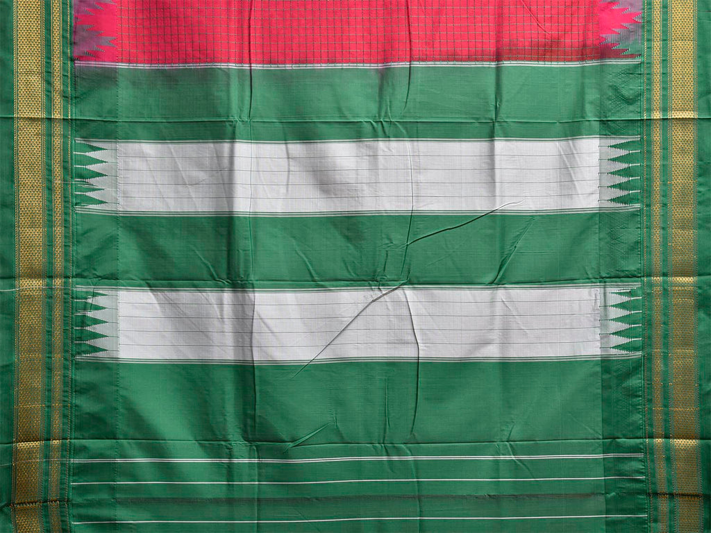 Pink and Green ilkal Viscose Saree with Big Temple Border and Checks Design. For fabric care we advise gentle handwash separately.