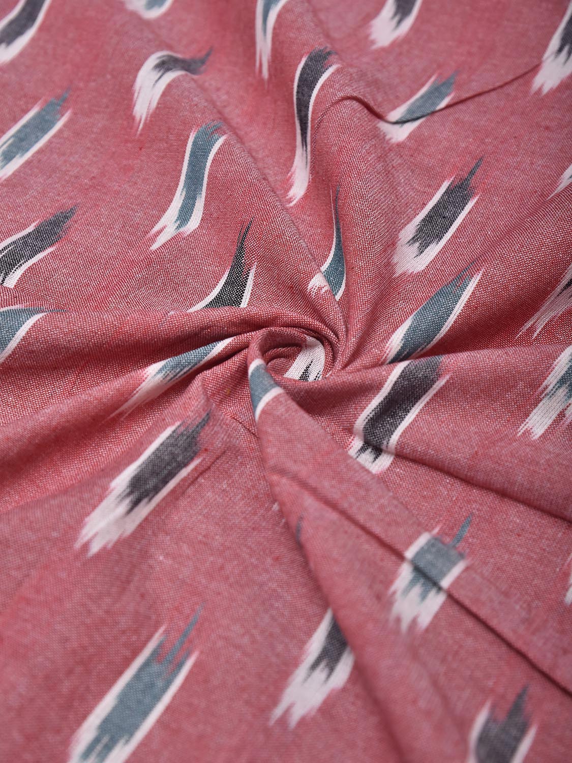 Pink and Grey Pochampally Ikat Cotton 2.5mts Fabric with Buta Design. This Handloom Cotton Fabric from Andhra Pradesh has been woven using the resist-dyeing, which produces the unique patterns adorning the fabric. Fabric is 44 inches in width. The price mentioned is for Quantity 1 = 2.5 meters. For fabric care we advise gentle handwash separately