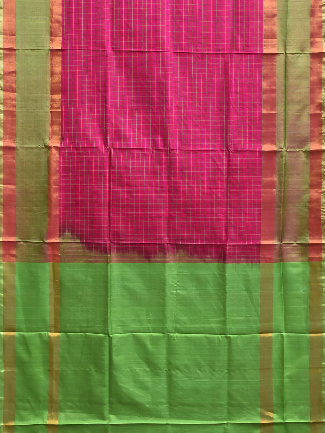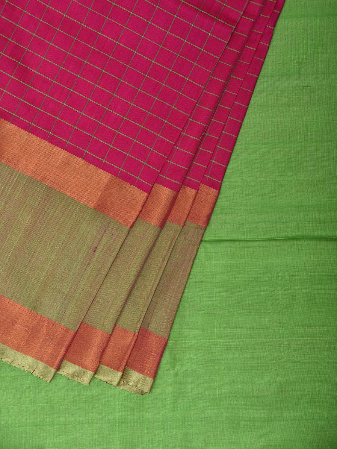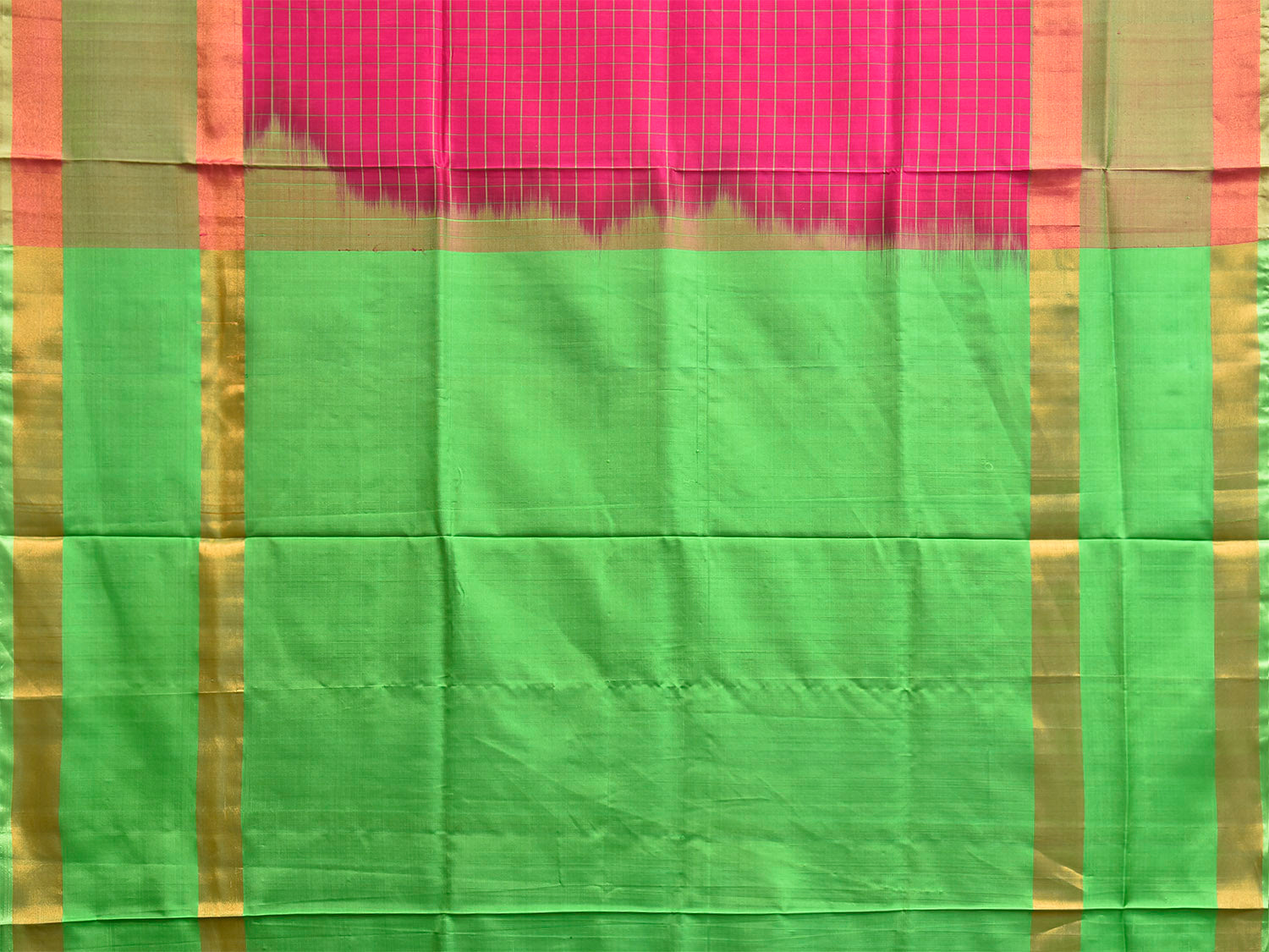 Pink and Light Green Uppada Silk Handloom Saree with Checks Design
