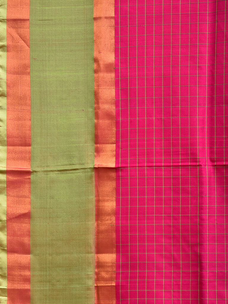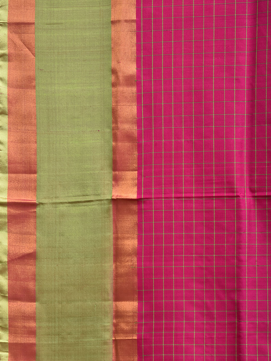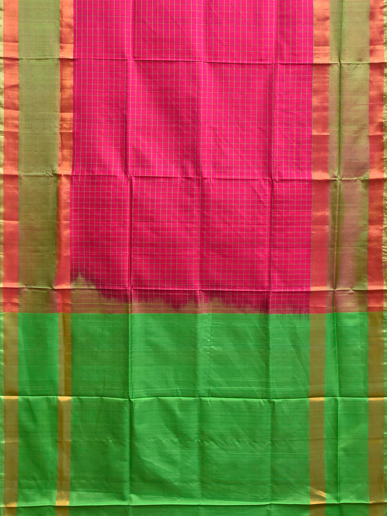 Pink and Light Green Uppada Silk Handloom Saree with Checks Design
