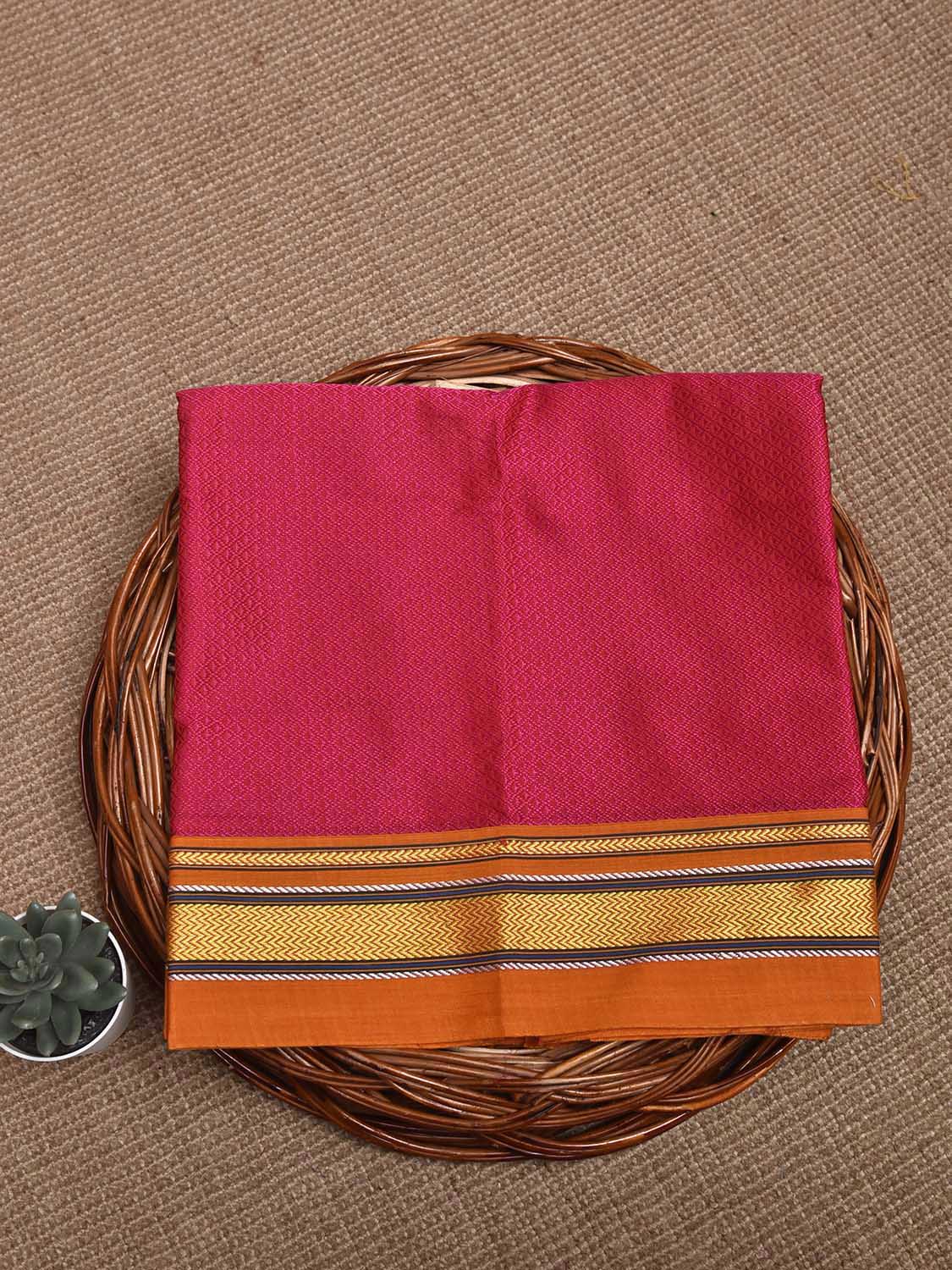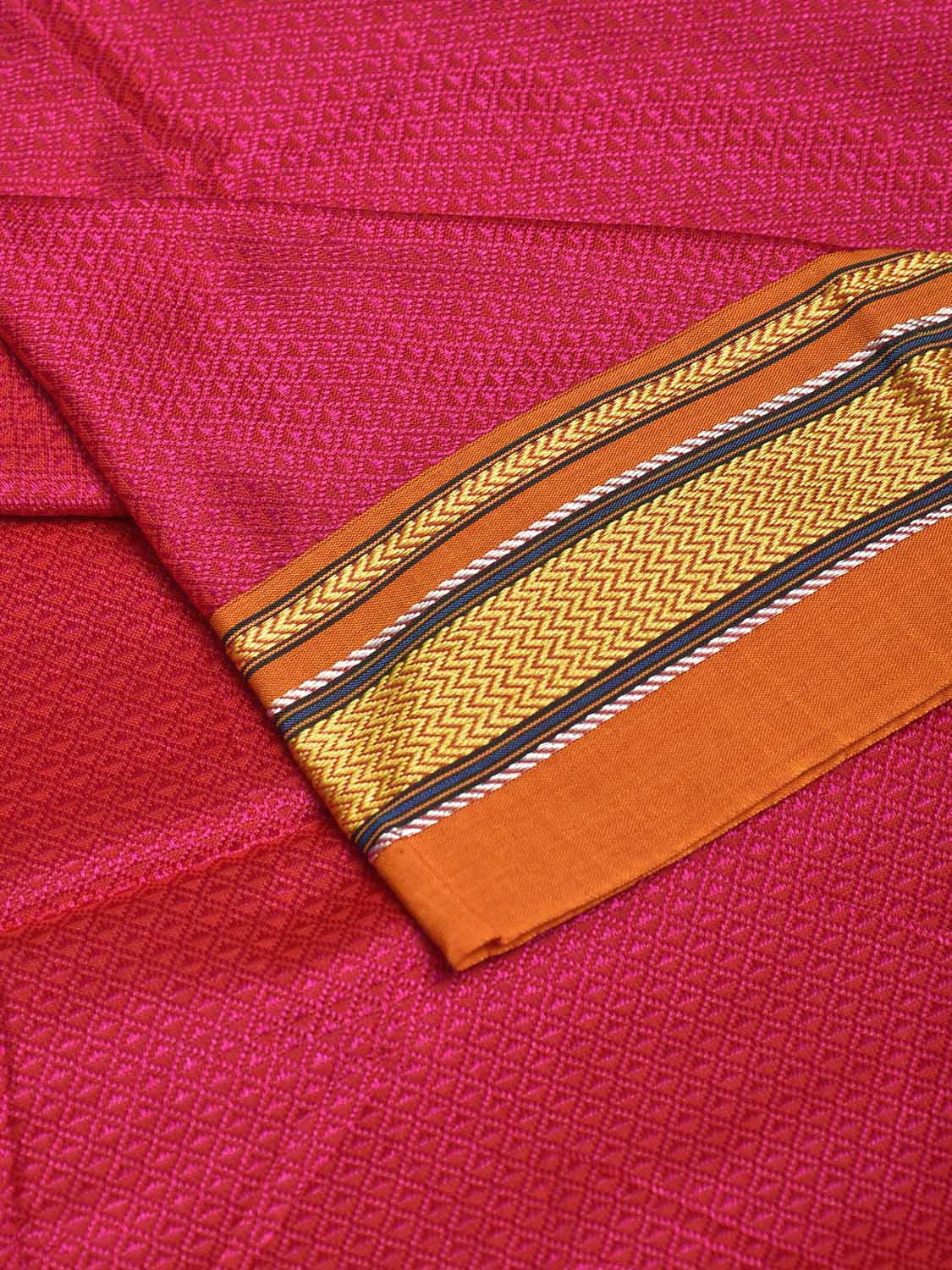 Pink and Orange Jacquard Viscose Blouse with Contrast Border Design Length 1mt Width 31 Inches. Beautiful Pattern Blouse Fabric and Easy to Match to Any Suitable Saree. We Advise Gentle Handwash for Fabric Care.