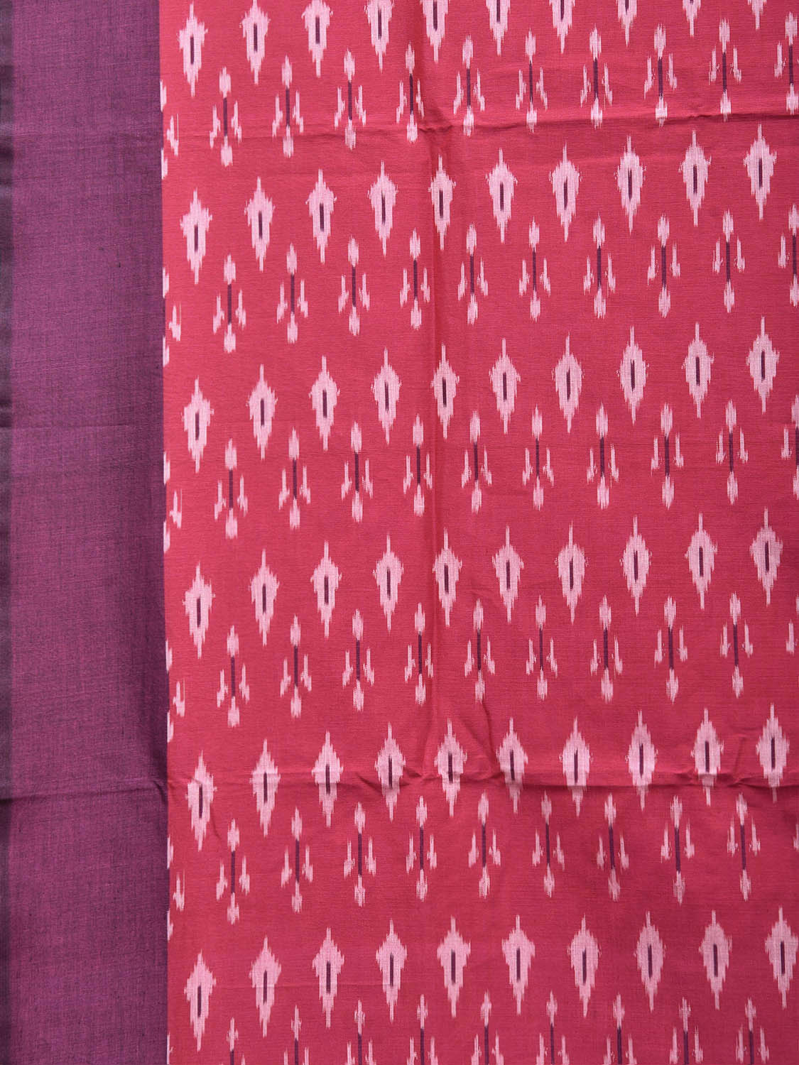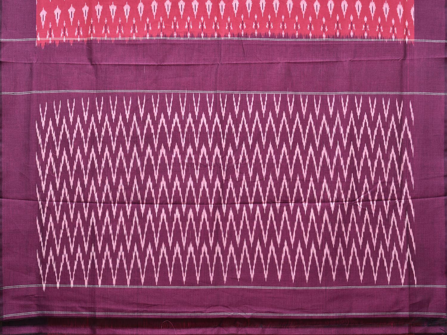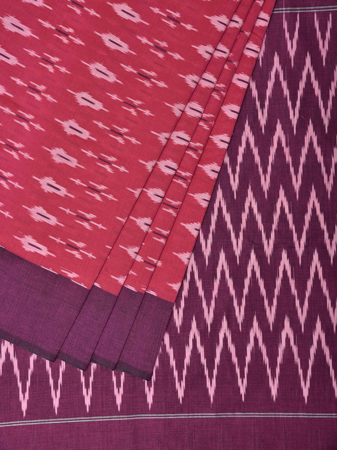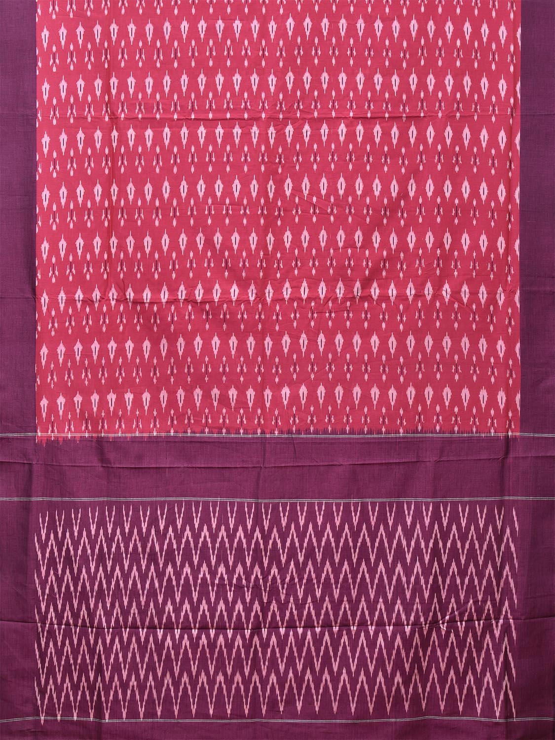 Pink and Purple Pochampally Ikat Cotton Handloom Saree with Body Buta and Zig-Zag Pallu Design No Blouse. This Handloom Saree from Andhra Pradesh has been woven using the resist-dyeing, which produces the unique patterns adorning the fabric. We advise gentle handwash separately for fabric care. This saree has no blouse.