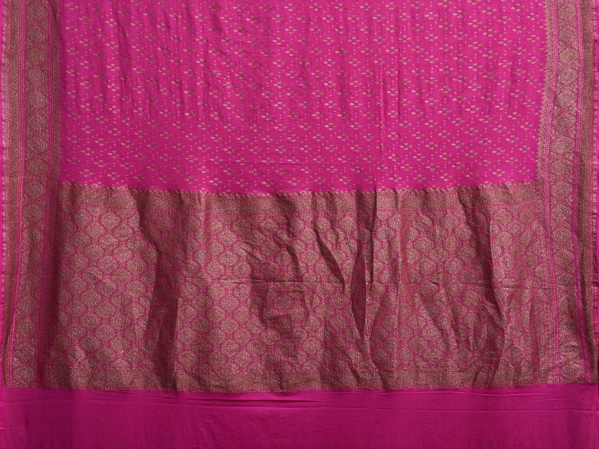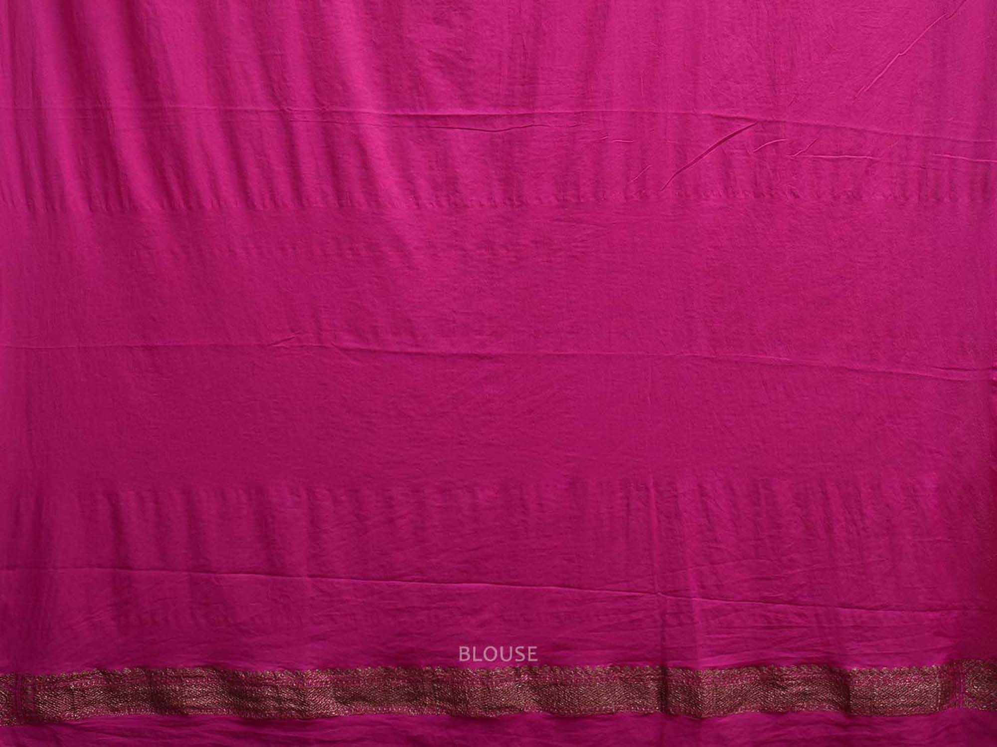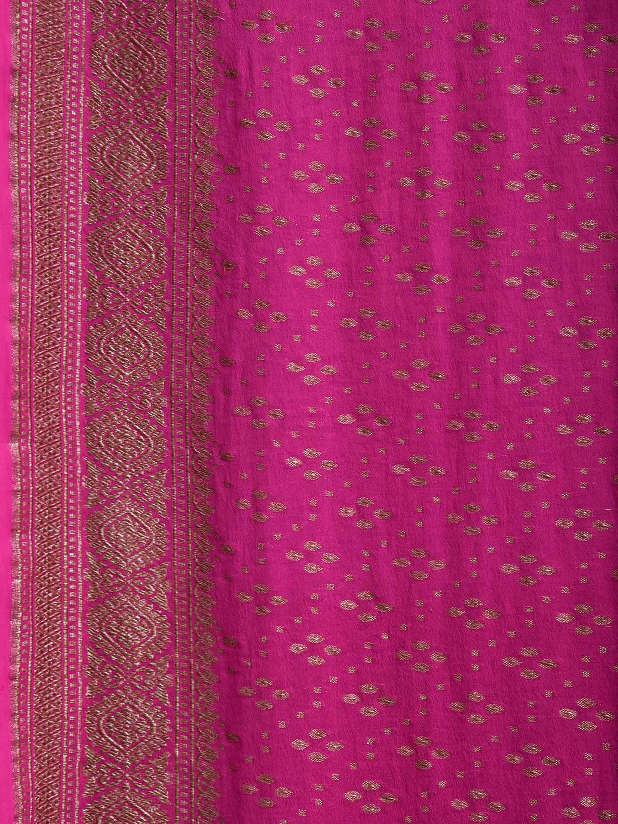Pink Banaras Georgette Saree with Pallu and Border Design. Banaras Sarees are considered one of finest sarees with gold or silver zari work, and colorful design makes it the saree for various occassions. For fabric care we advise dry clean.