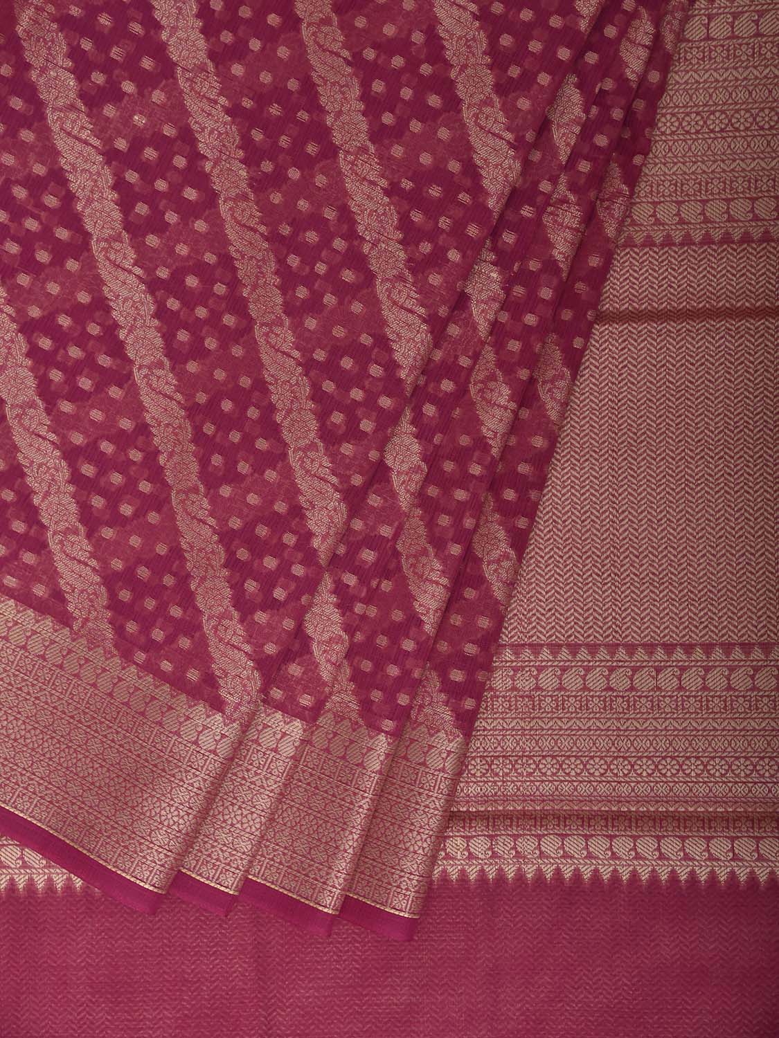 Pink Dhakai Jamdani Cotton Viscose Saree with Diagonal and Pallu Design dj0313