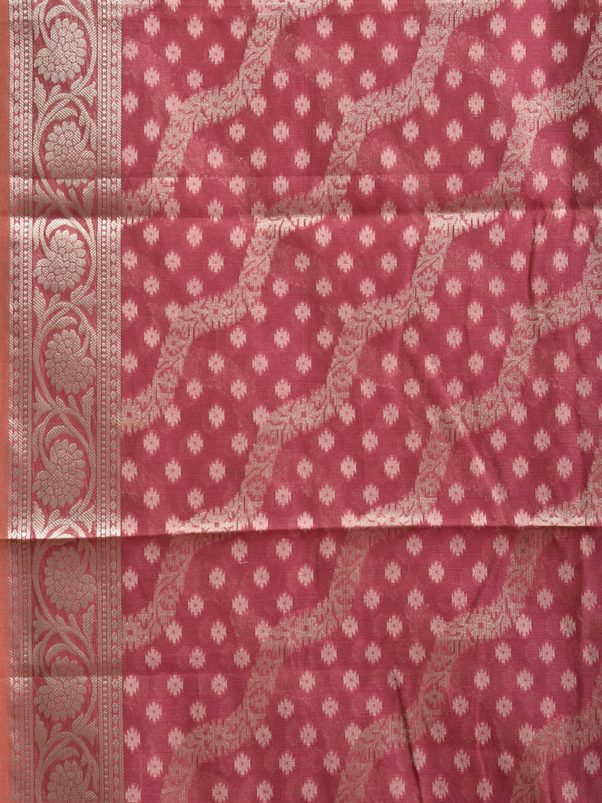 Pink Dhakai Jamdani Cotton Viscose Saree with Diagonal and Pallu Design. These are some of the traditional Dhakai Jamdani designs, these sarees have geometric designs and sometimes floral or combination of both. We advice gentle handwash separately for fabric care.