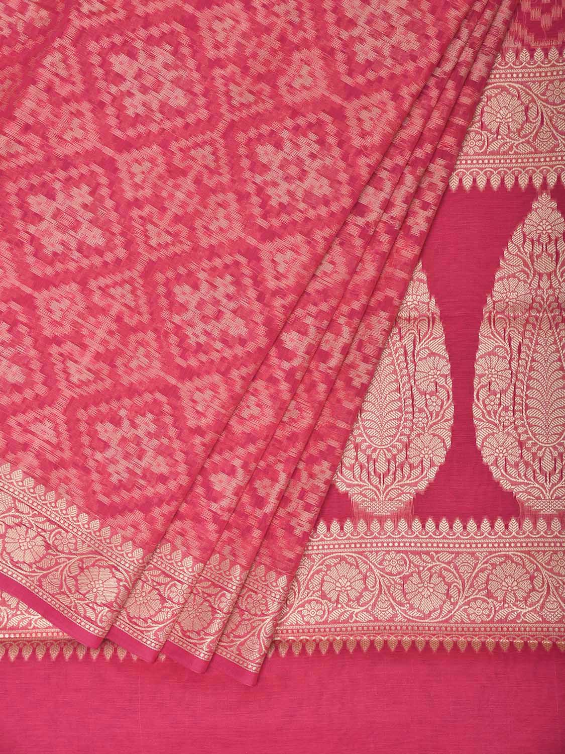 Pink Dhakai Jamdani Cotton Viscose Saree with Grill and Pallu Design dj0356