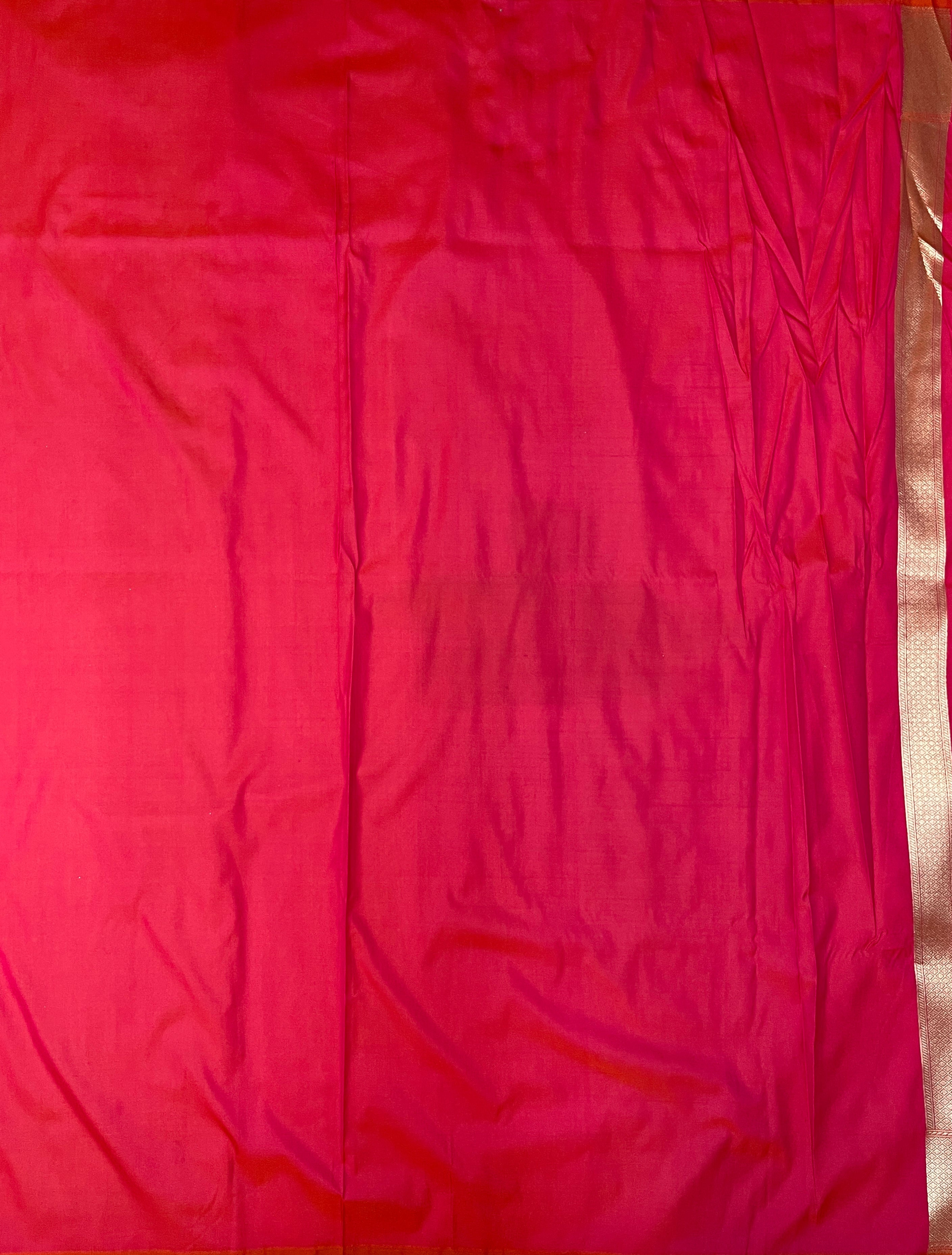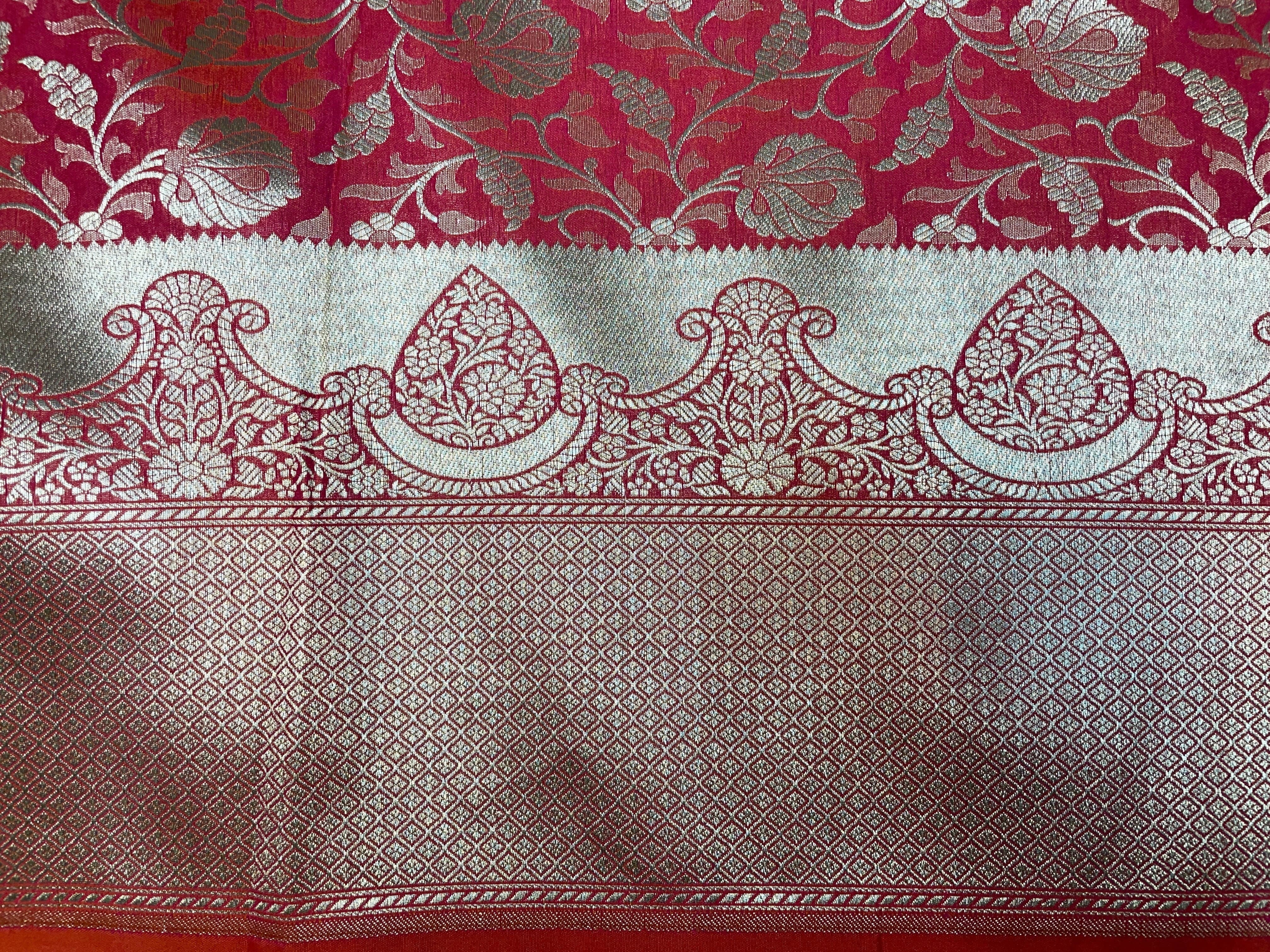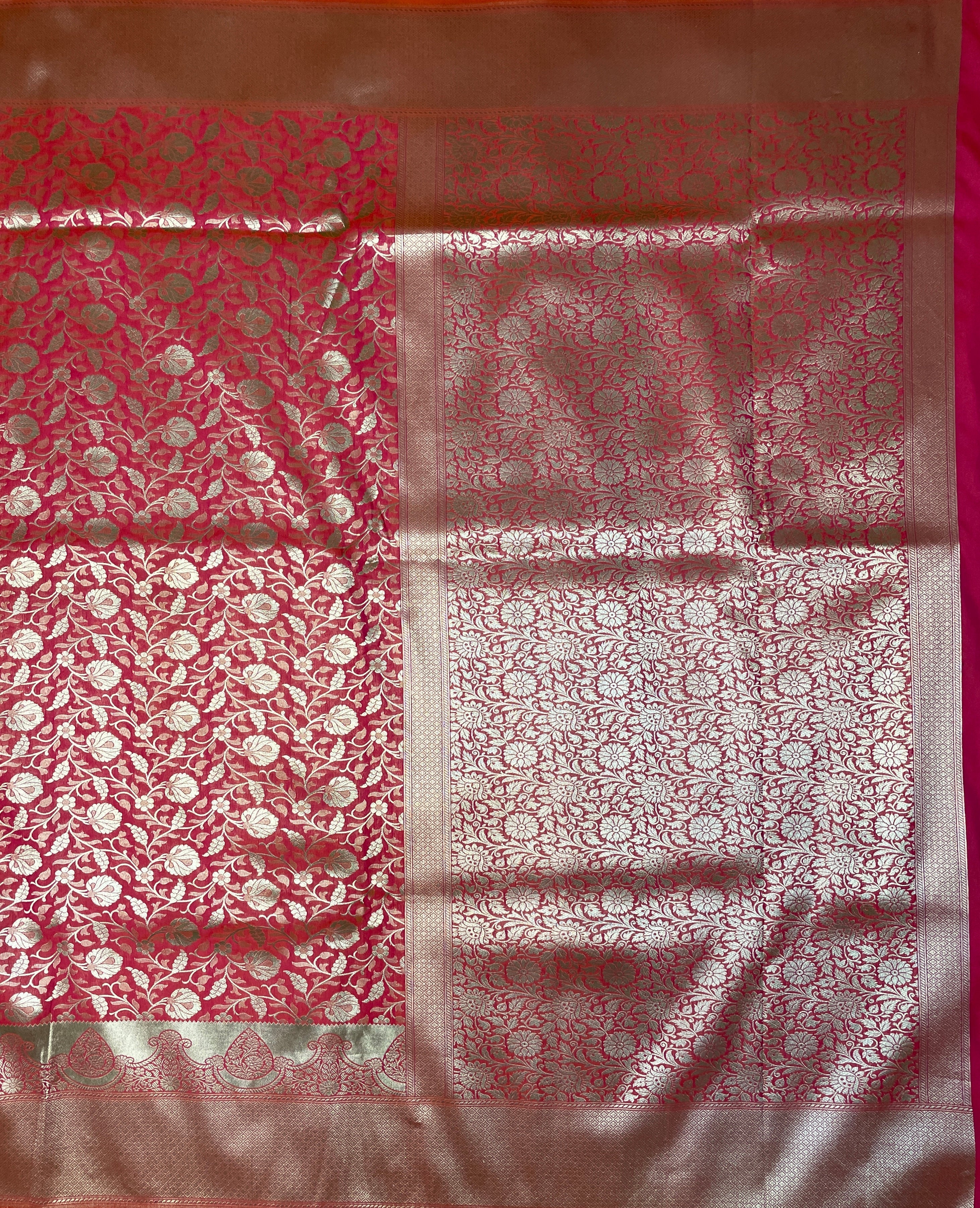 Pink Katan Banarasi Saree with Silver Zari Floral Weaving And Grand Pallu B05601ds