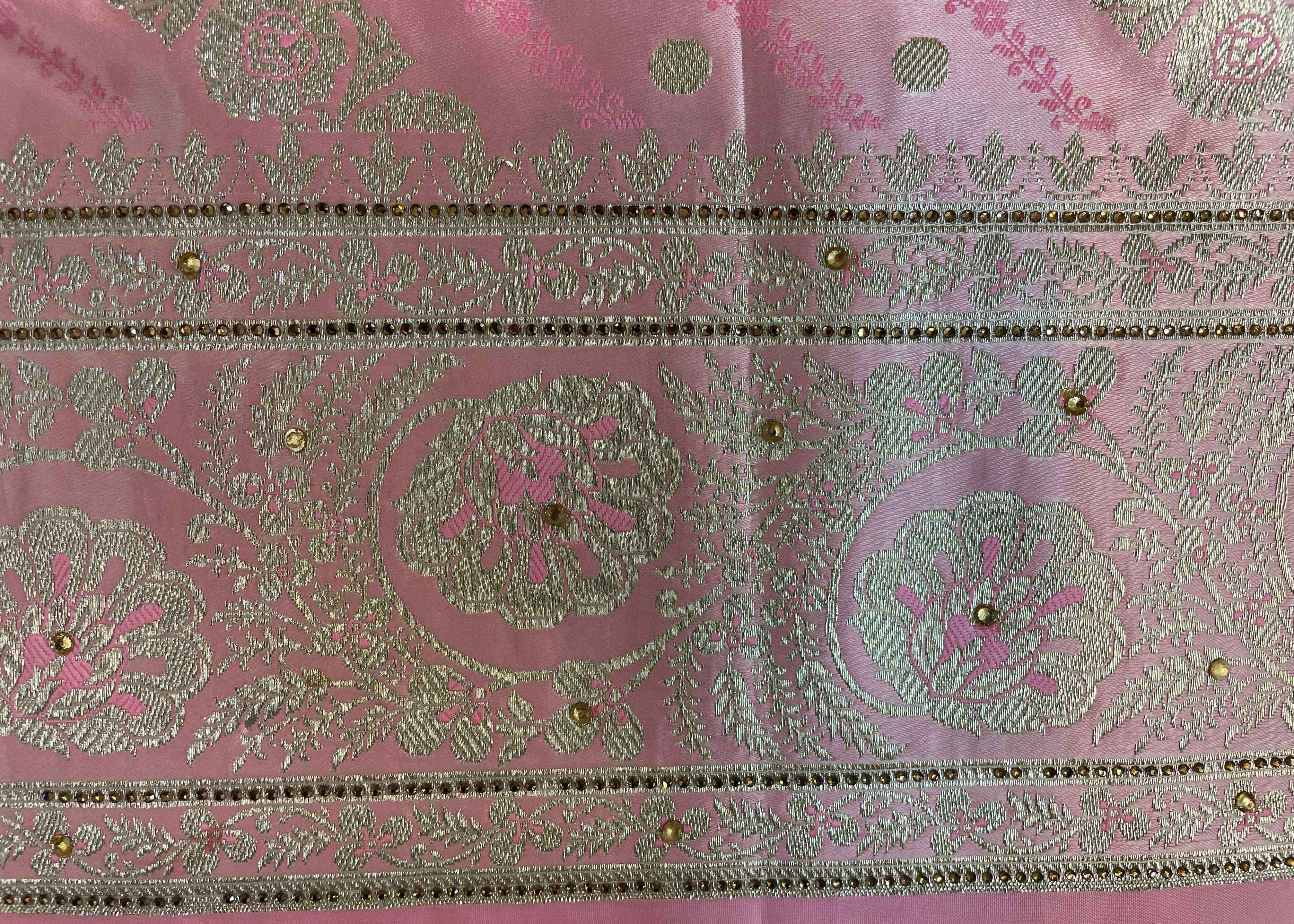 Pink Katan Banarasi Saree with Silver Zari Floral Weaving And Grand Pallu B0629ds