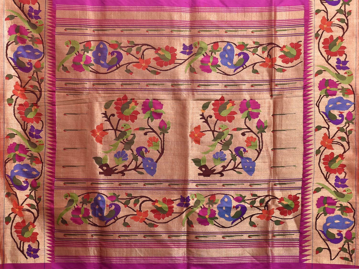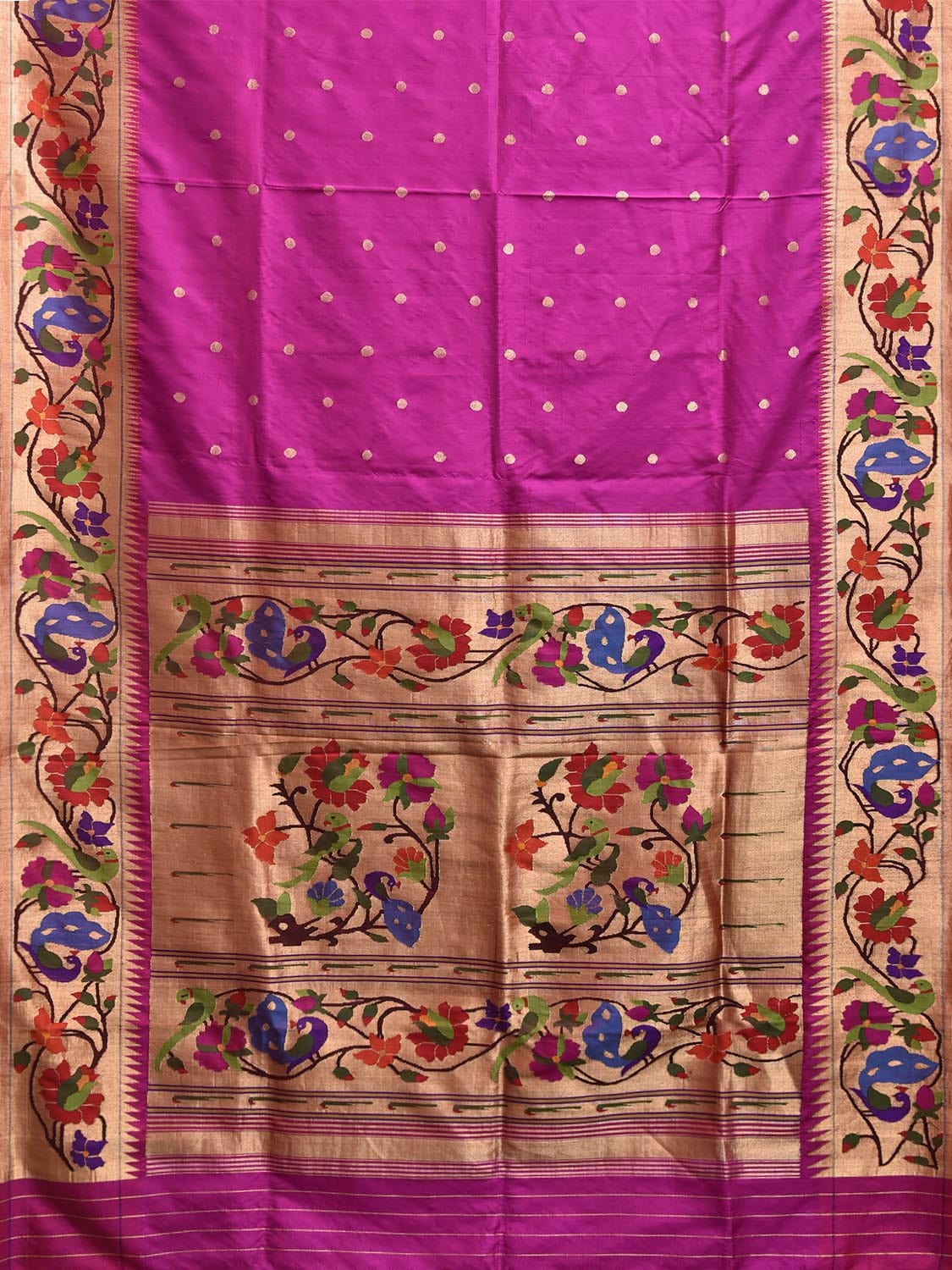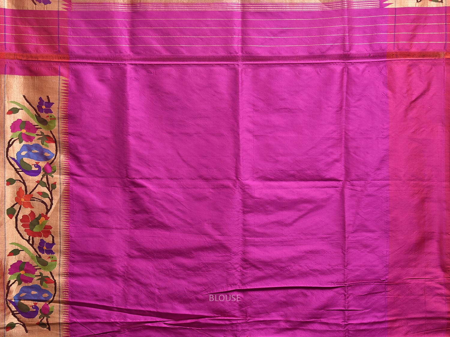 Pink Paithani Silk Handloom Saree with Peacock and Parrot Border Design. Paithani Sarees are traditional Maharastrian Sarees, they are well known for their beautiful royal look appearance. We advice dry clean for fabric care.