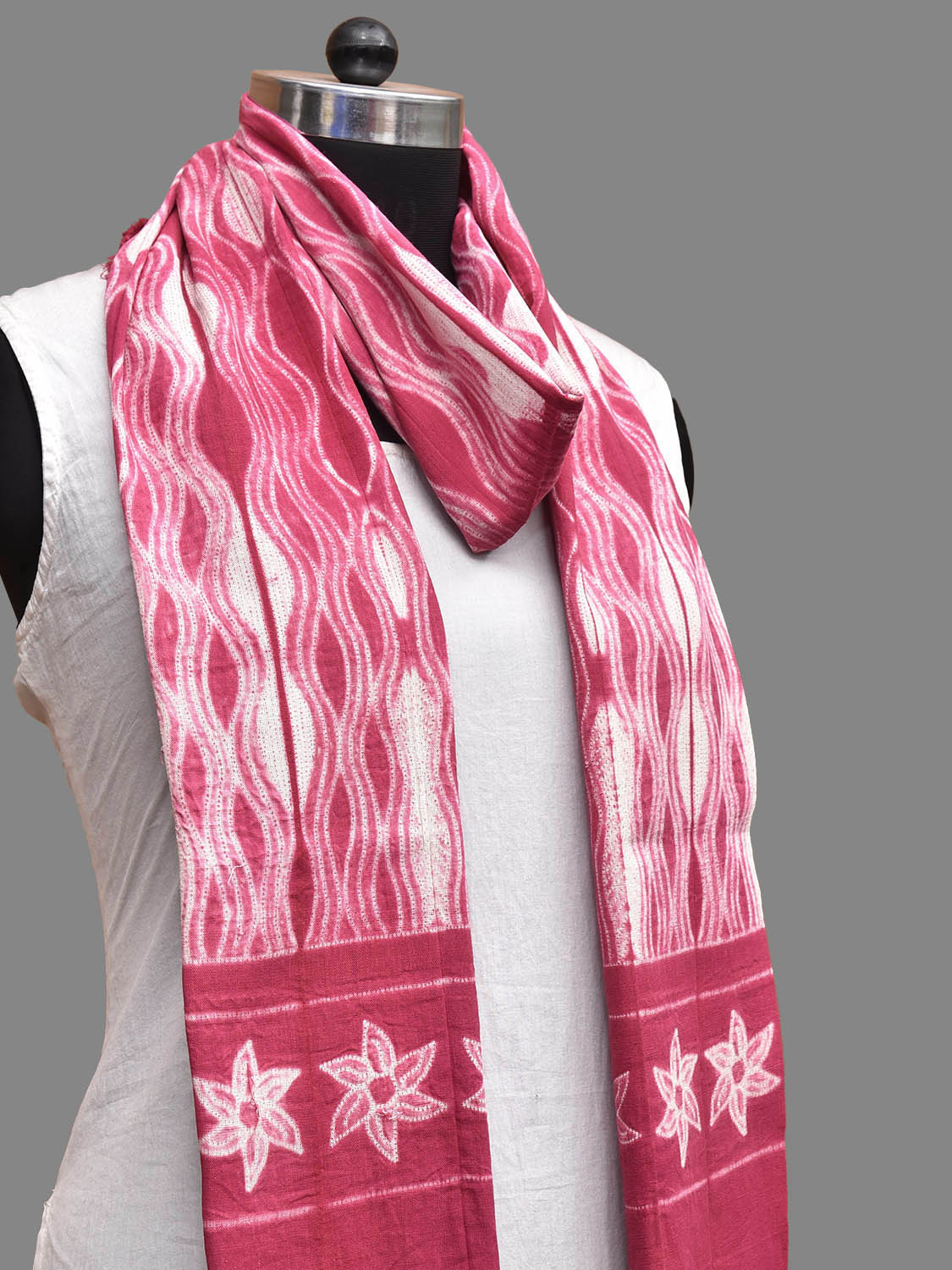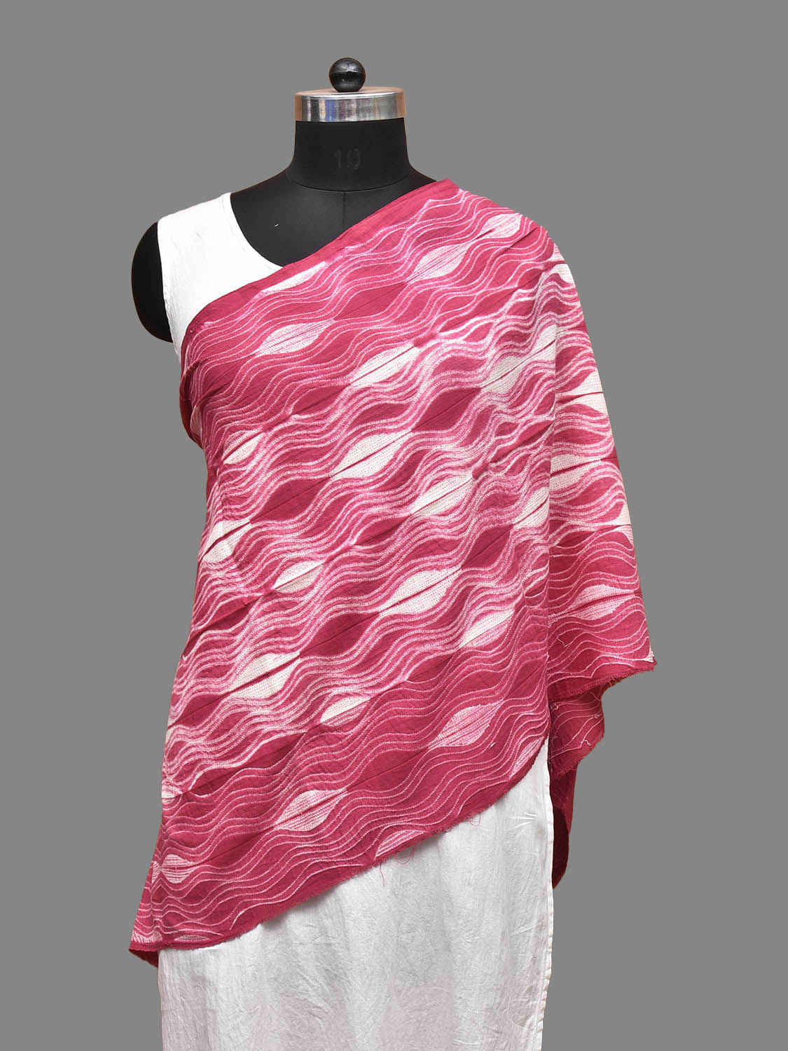 Pink Shibori Cotton Stole with Waves and Floral Design. Shibori is Japanese a Technique of tie and dye, and resist some parts by clamping or stitching the fabric. The result produced are unique geometric patterns & any other eloborate design. For fabric care we advise dry clean.