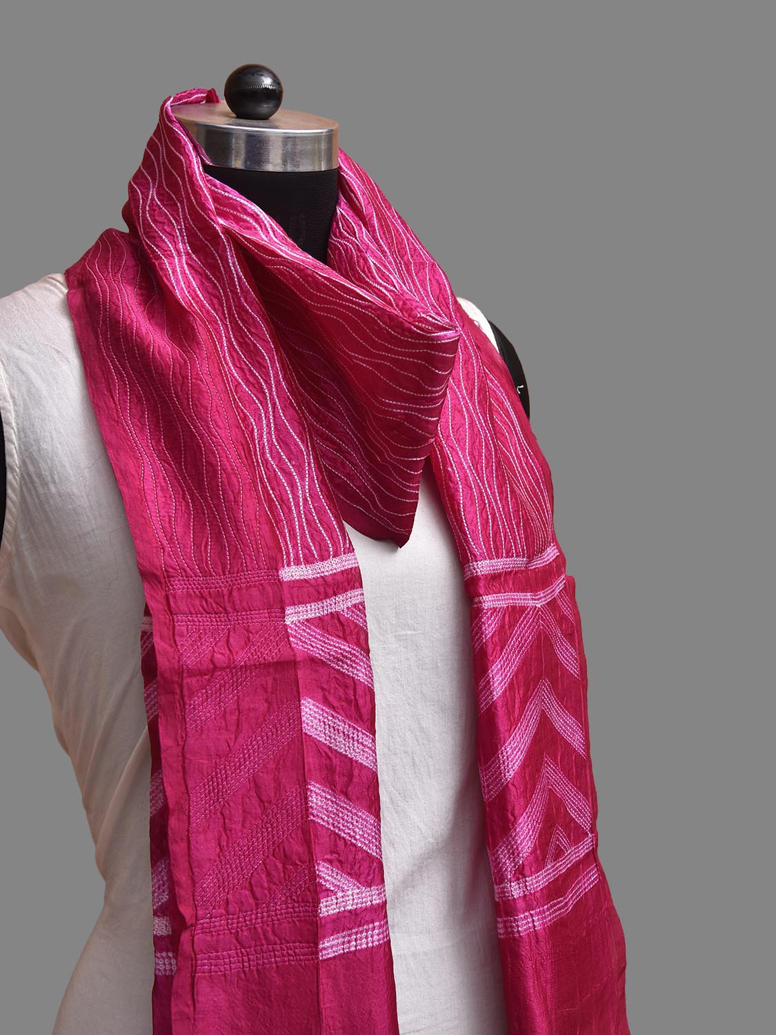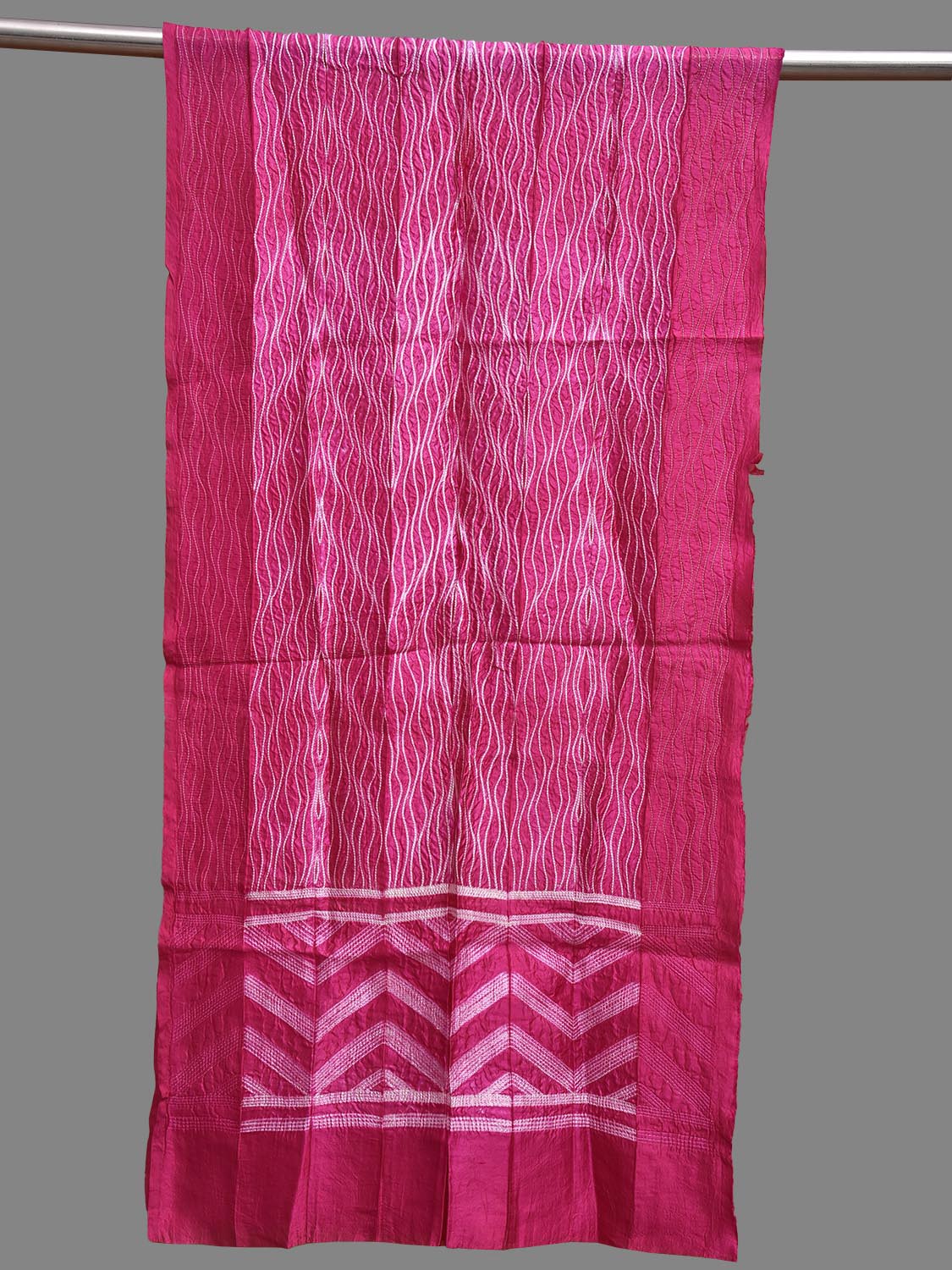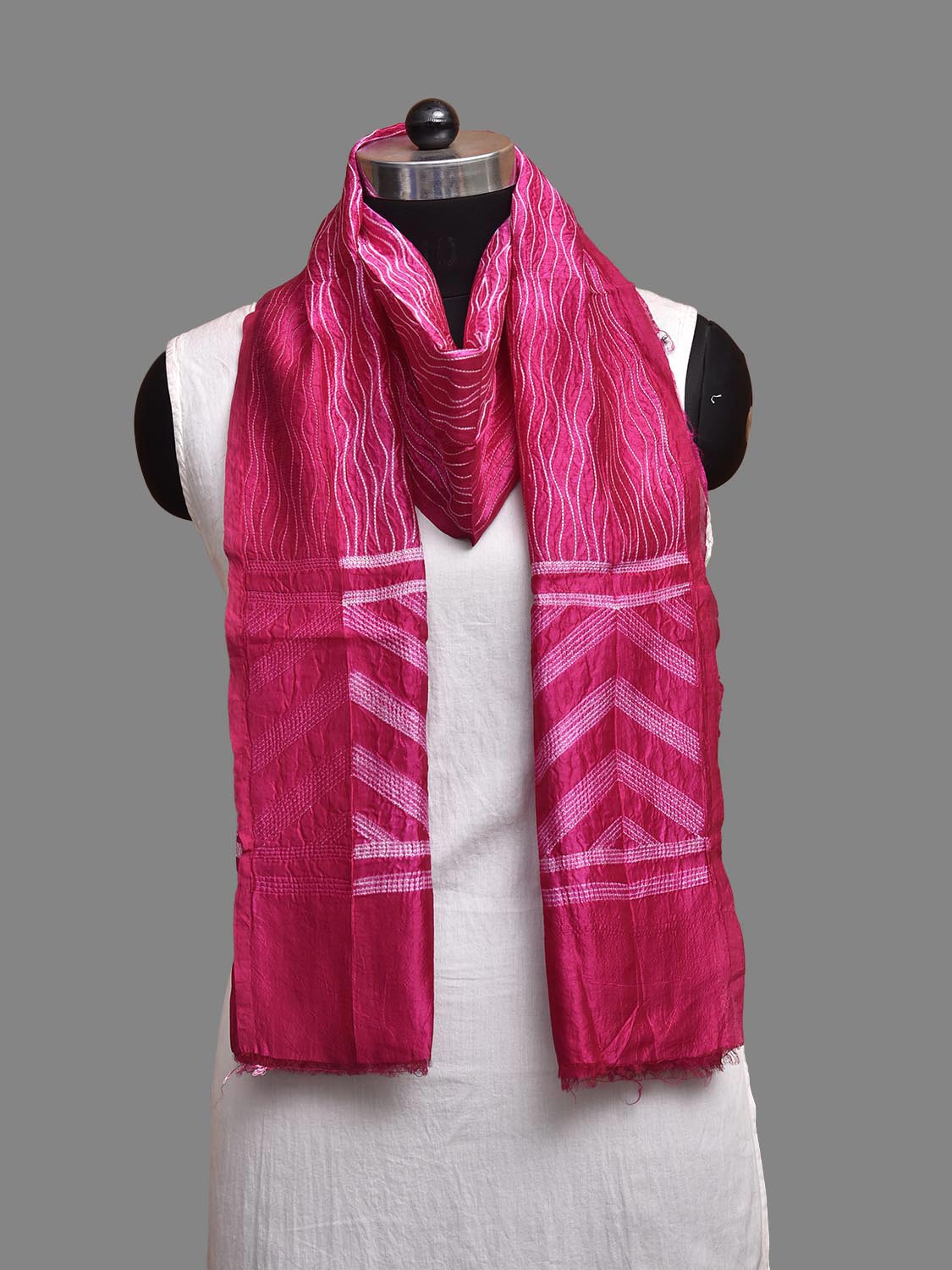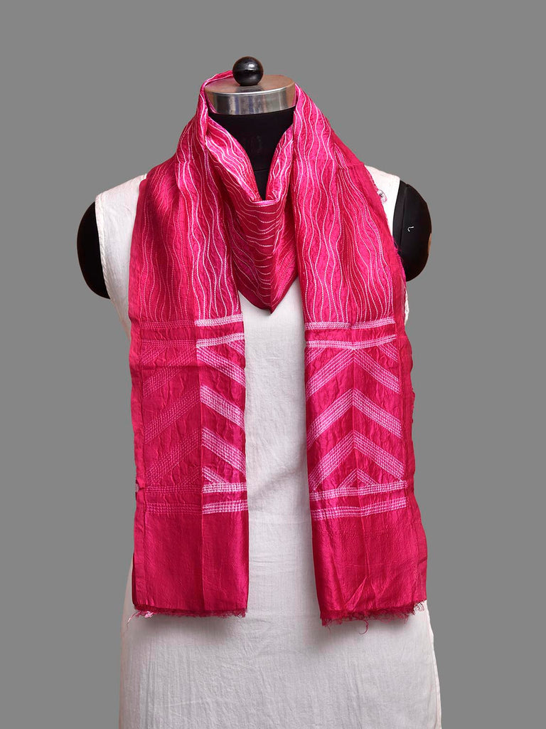 Pink Shibori Silk Stole with Zig-Zag Design. Shibori is Japanese a Technique of tie and dye, and resist some parts by clamping or stitching the fabric. The result produced are unique geometric patterns & any other eloborate design. For fabric care we advise dry clean.