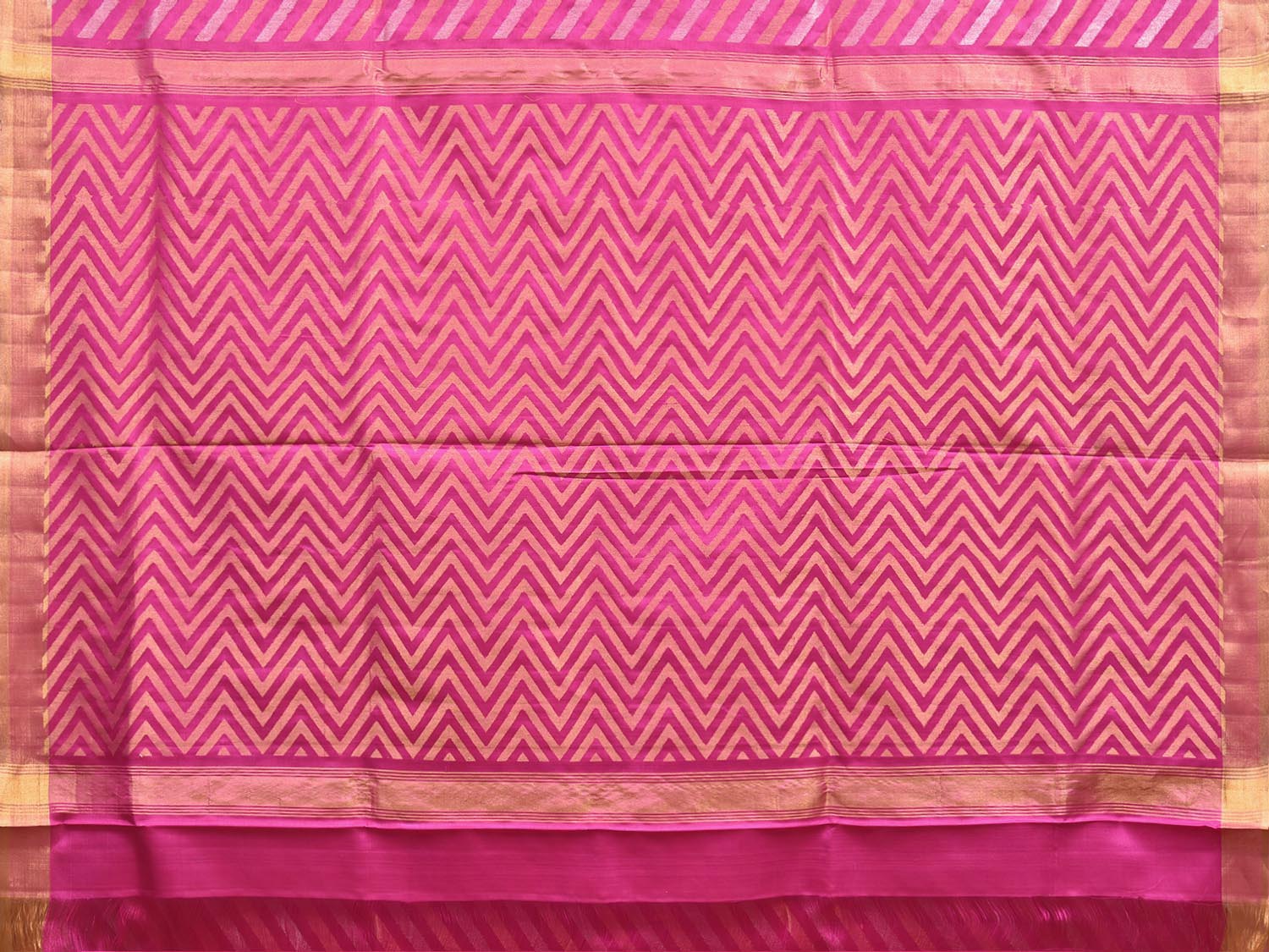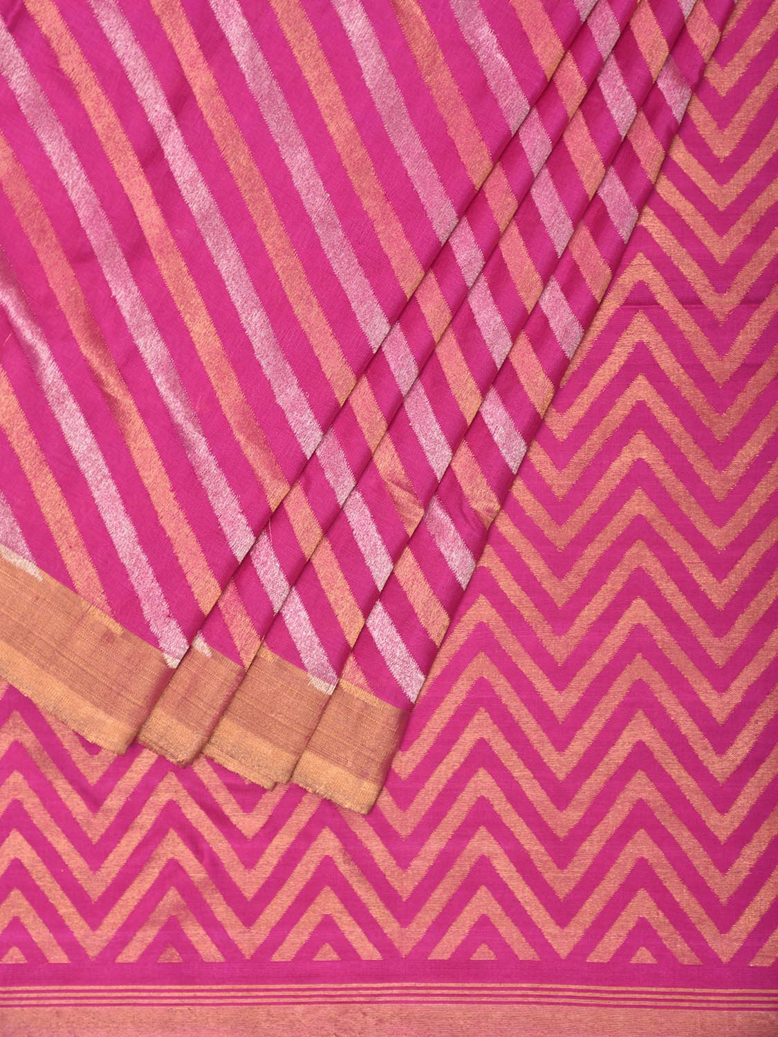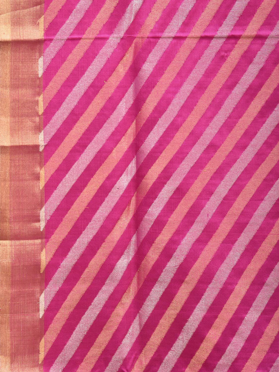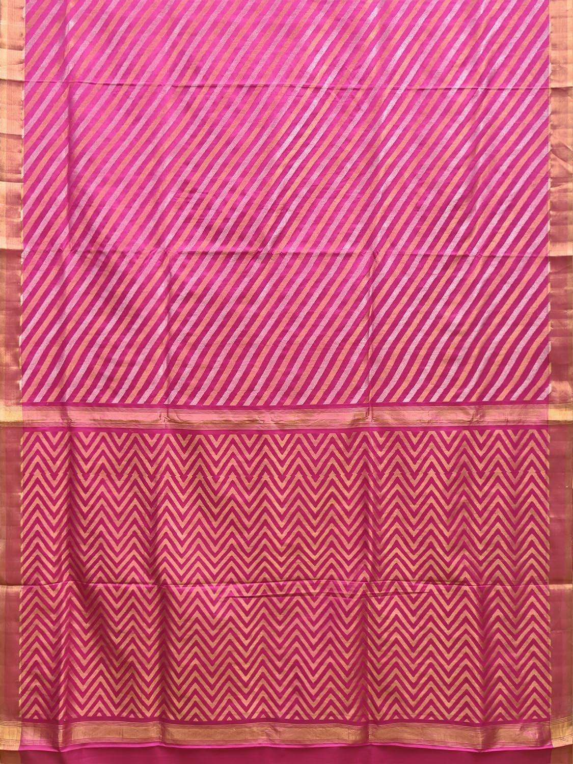 Pink Uppada Pure Silk Handloom Saree with Diagonal Body and Zig-Zag Pallu Design. For fabric care we advise dry clean.