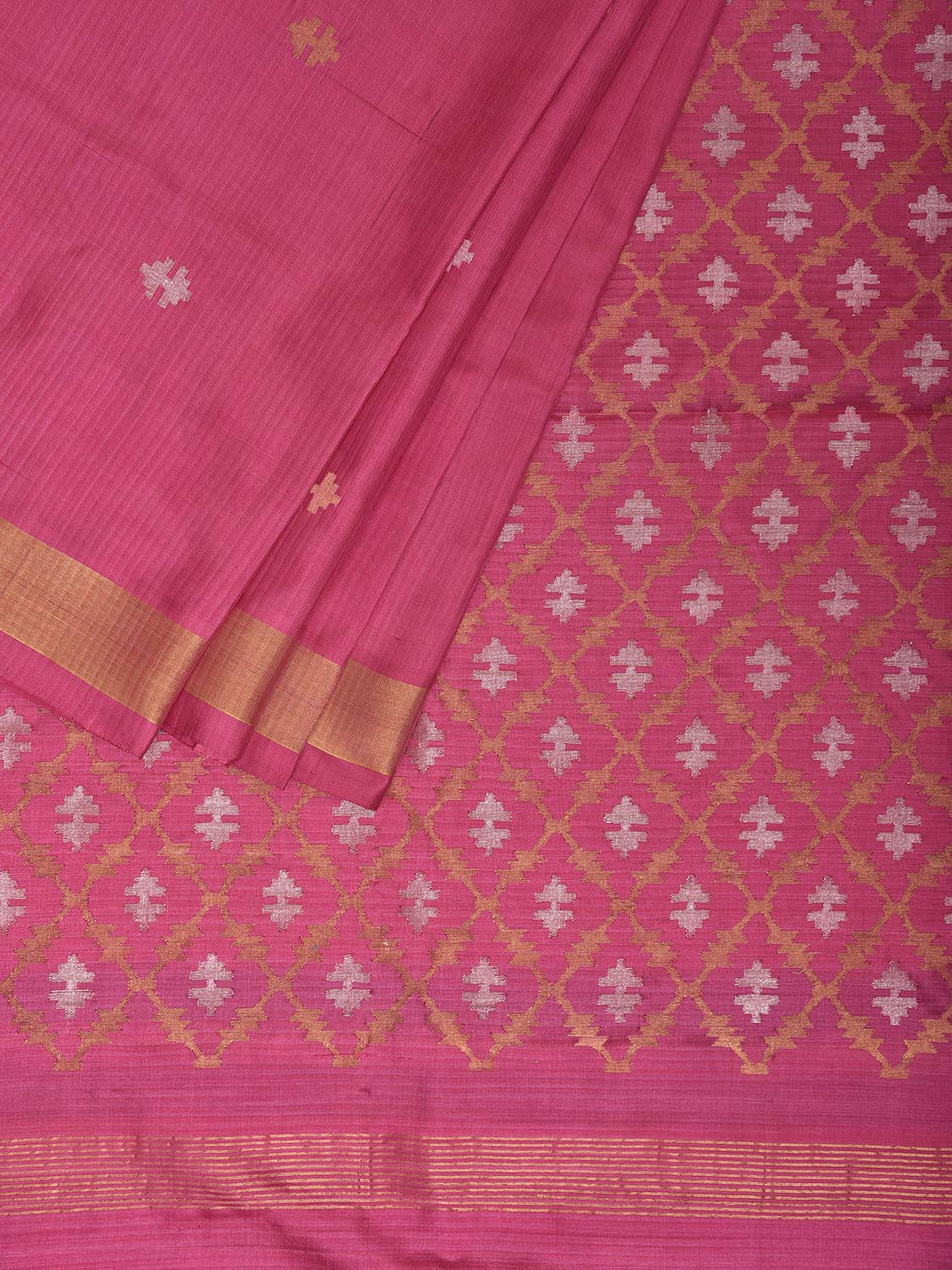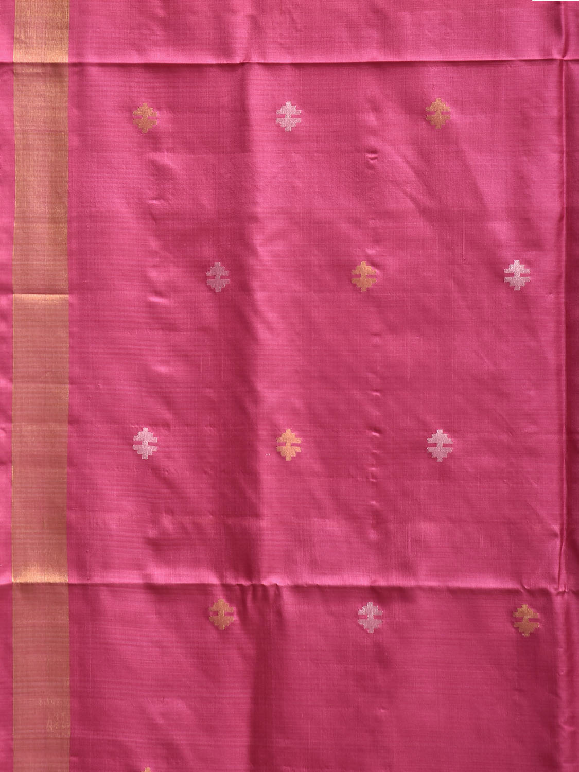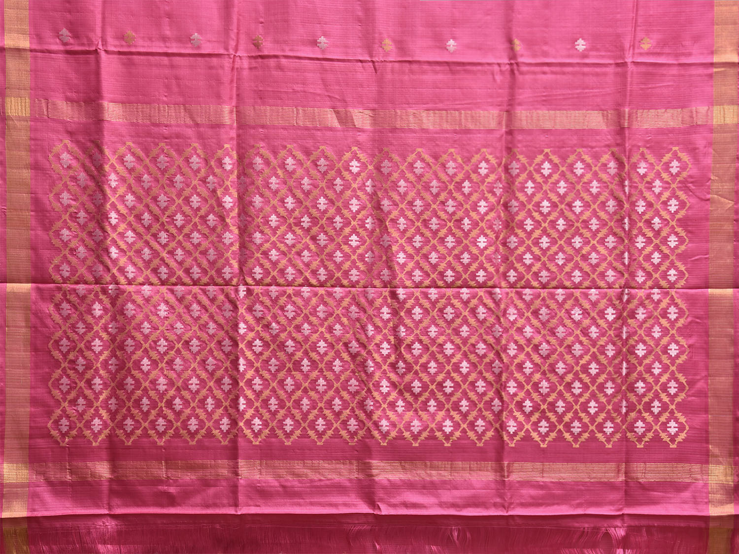 Pink Uppada Silk Handloom Saree with Jamdani Pallu Design.