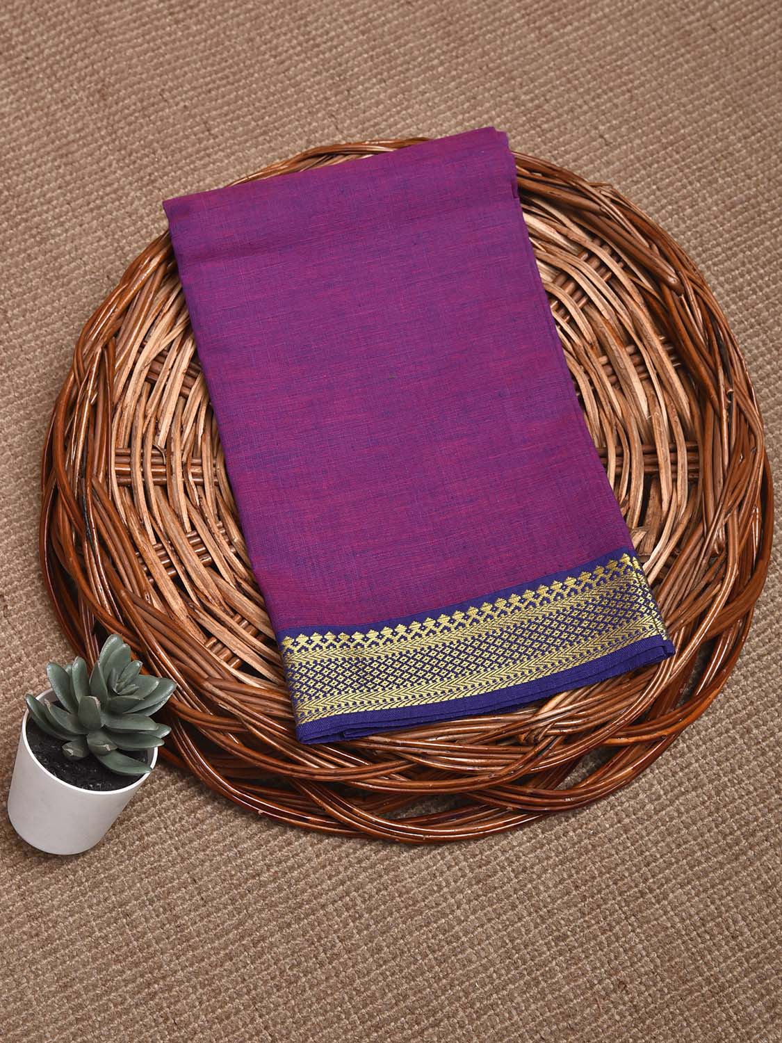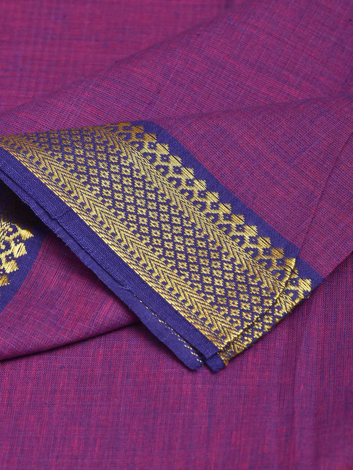 Purple and Blue Mangalgiri Cotton Blouse with Border Design Length 1mt Width 44 Inches. Beautiful Pattern Blouse Fabric and Easy to Match to Any Suitable Saree. For fabric care we advise gentle handwash separately.