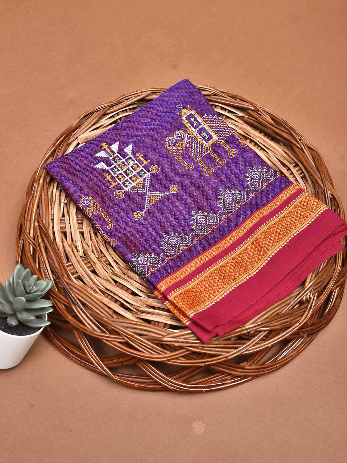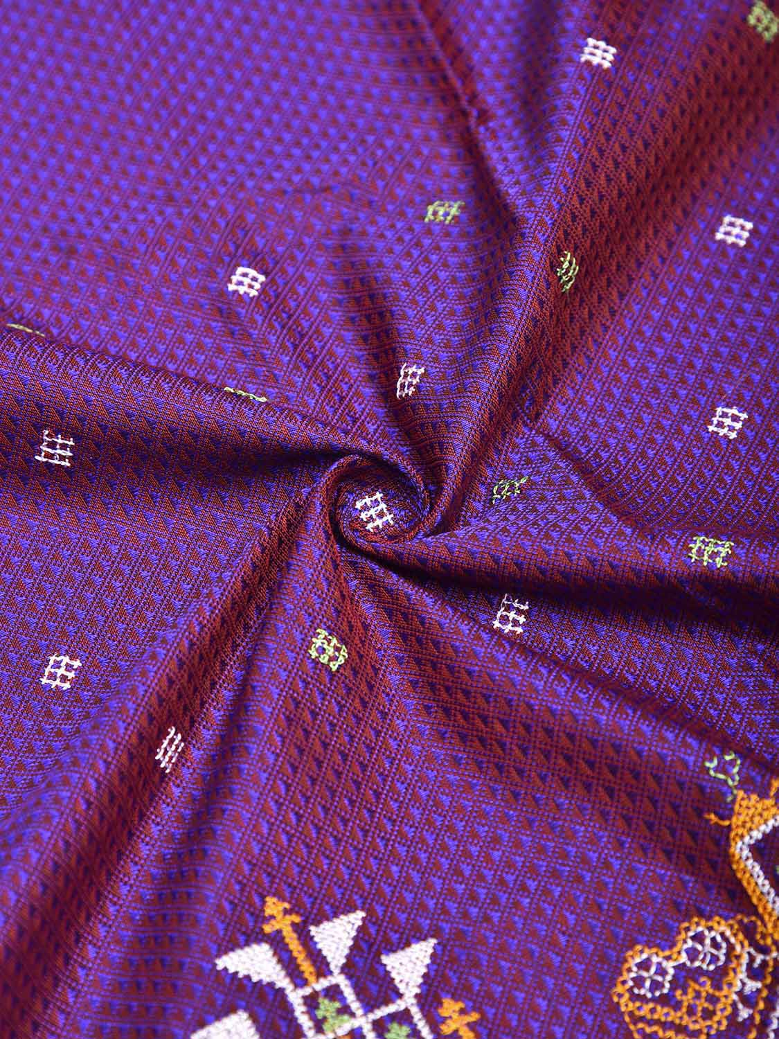 Purple and Pink Kasuti Jacquard Viscose Blouse with Peacocks Design Length 1mt Width 36 Inches. Beautiful Pattern Blouse Fabric and Easy to Match to Any Suitable Saree. We Advise Gentle Handwash for Fabric Care.