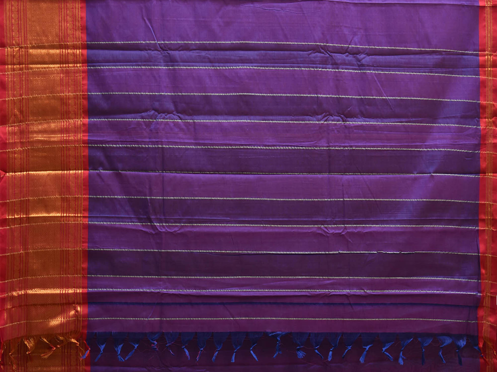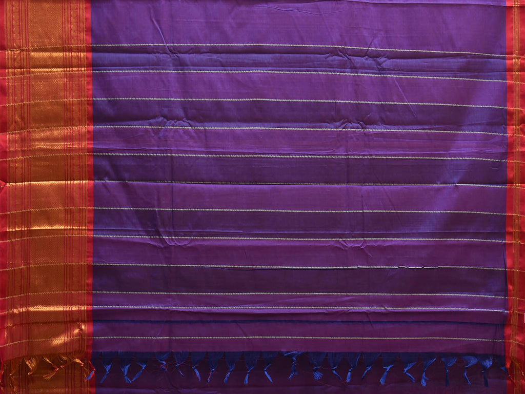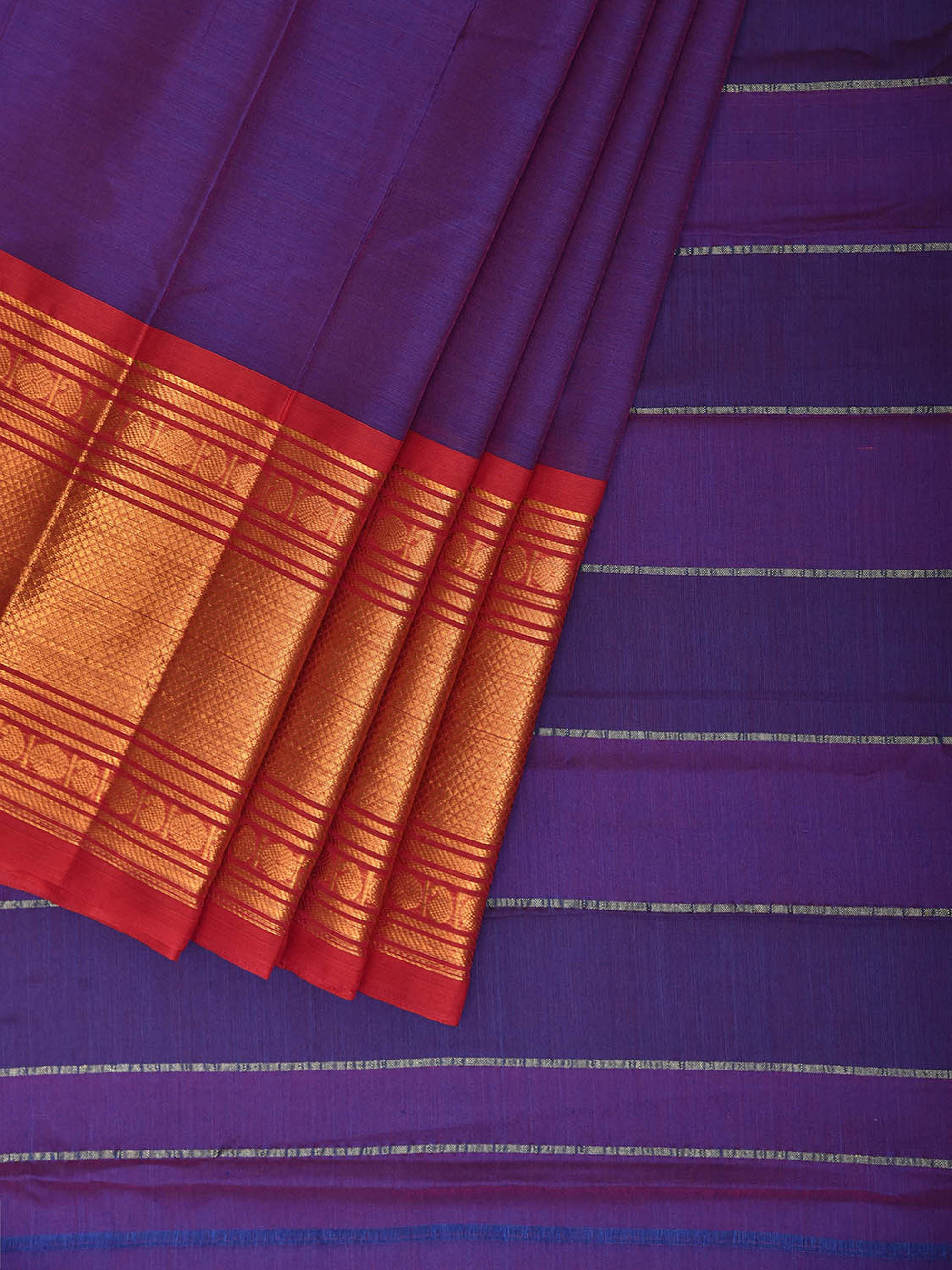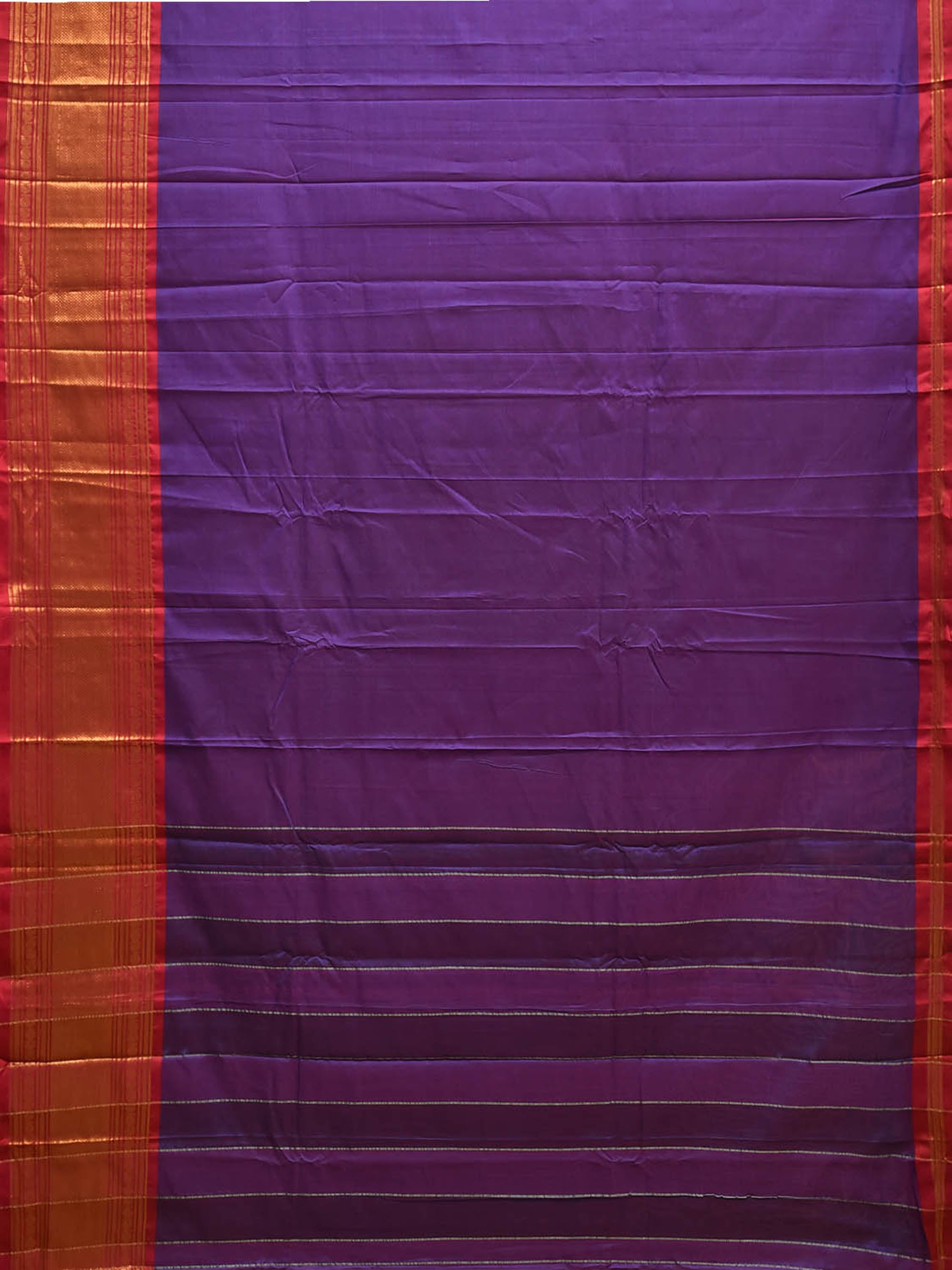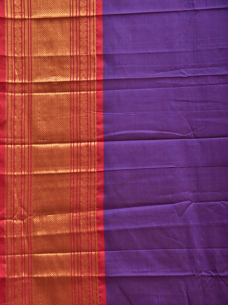 Purple and Red Kanchipuram Cotton Plain Saree with Strips Pallu Design No Blouse. Traditional Simple South Indian Attire Saree for any Casual Occasions. As it’s a cotton saree we advice gentle handwash separately for fabric care. This saree has no blouse.