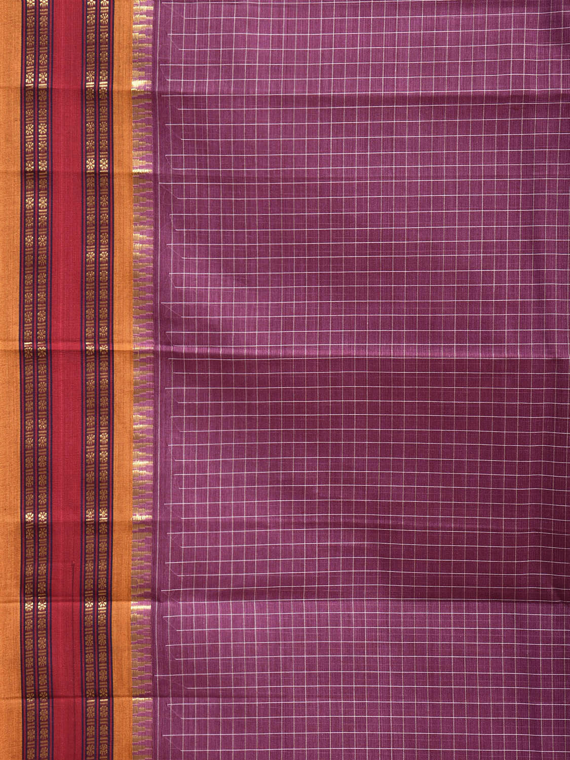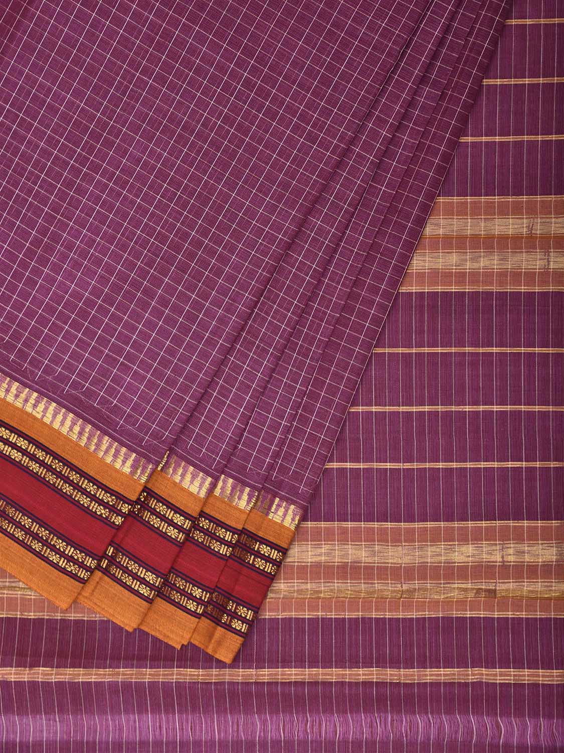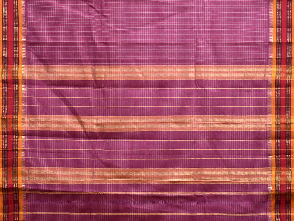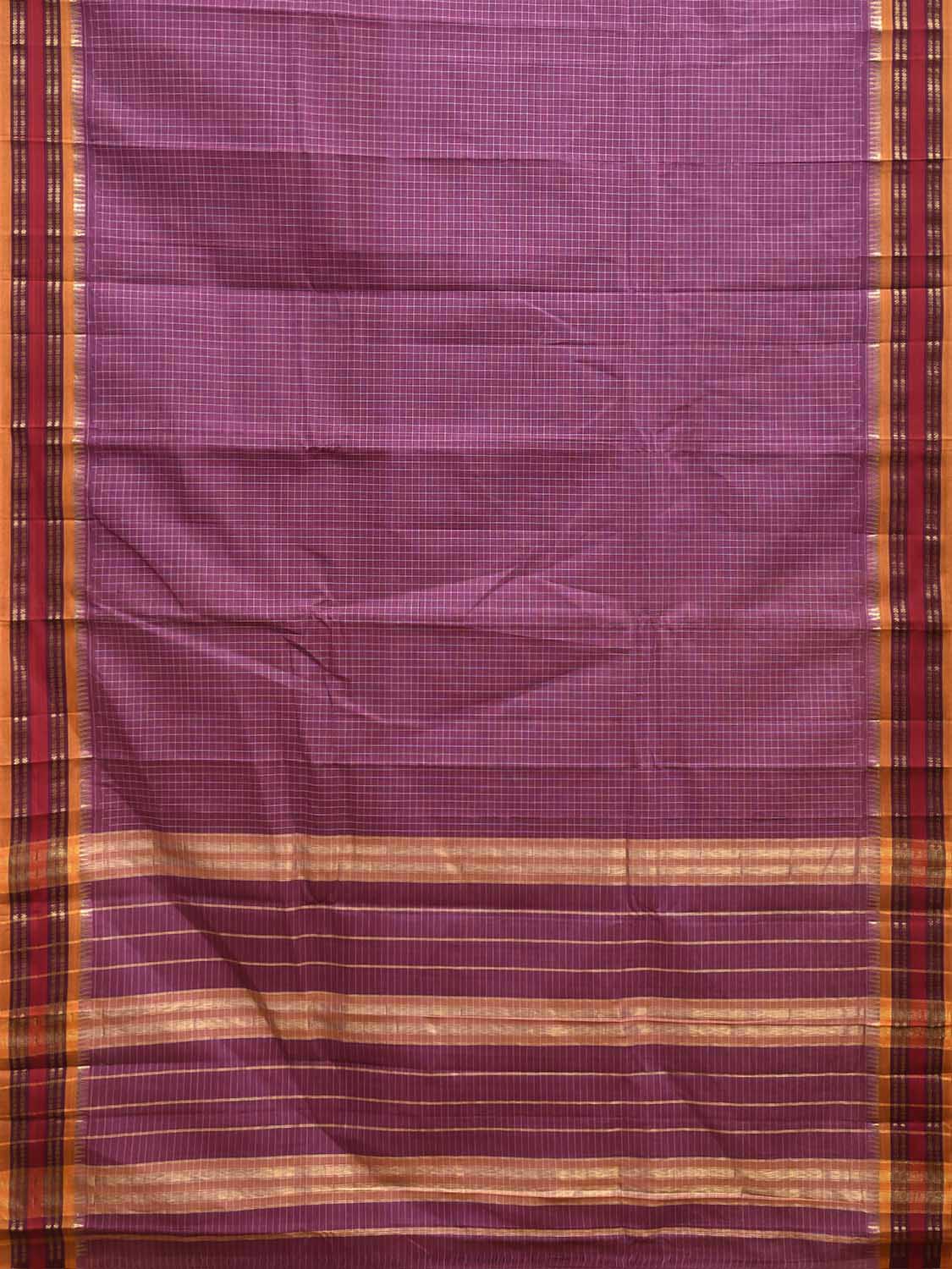 Purple and Yellow Narayanpet Cotton Handloom Saree with Checks Design No Blouse. This saree has no blouse.