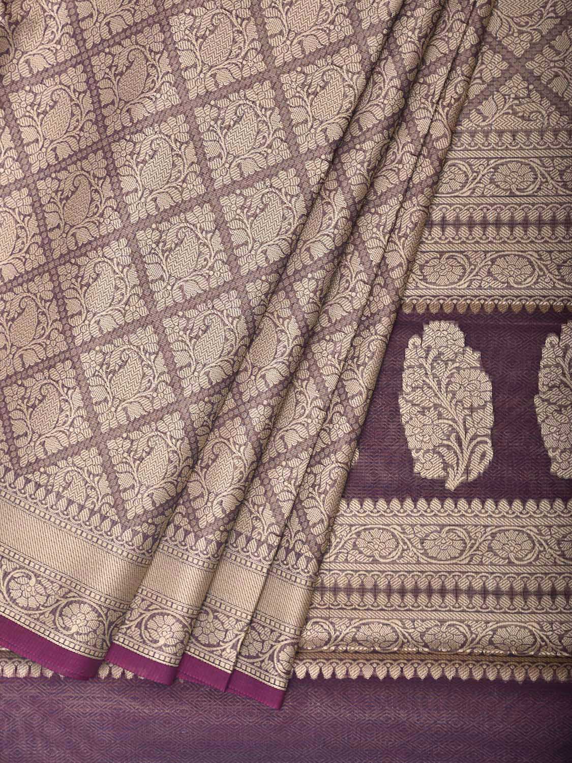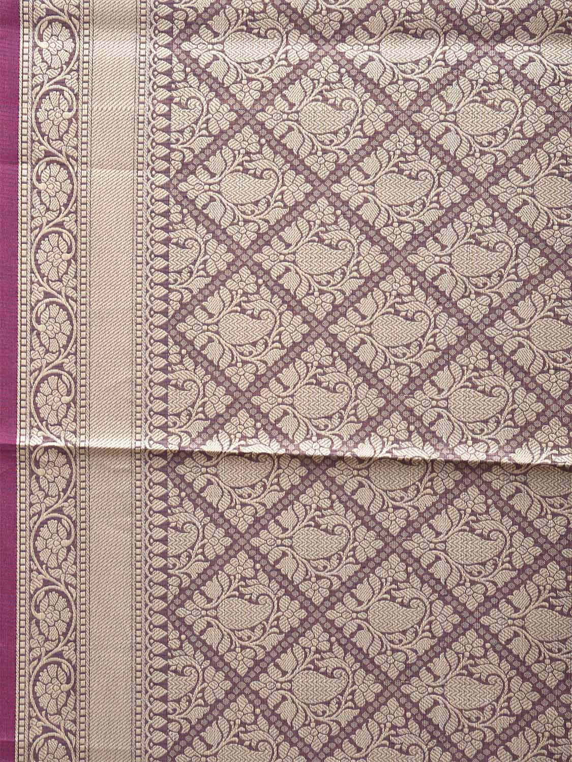 Purple Dhakai Jamdani Cotton Viscose Saree with Grill and Floral Pallu Design. These are some of the traditional Dhakai Jamdani designs, these sarees have geometric designs and sometimes floral or combination of both. We advice gentle handwash separately for fabric care.