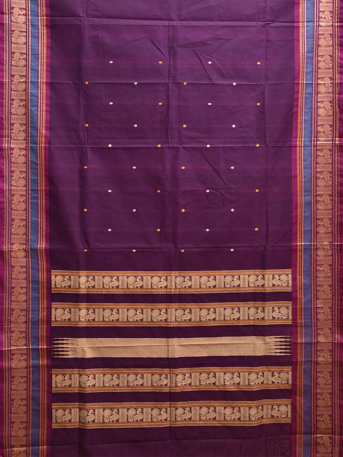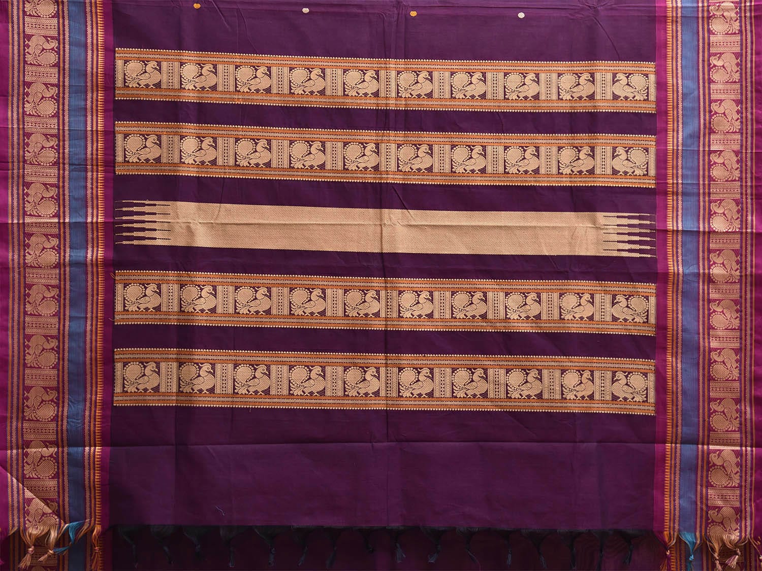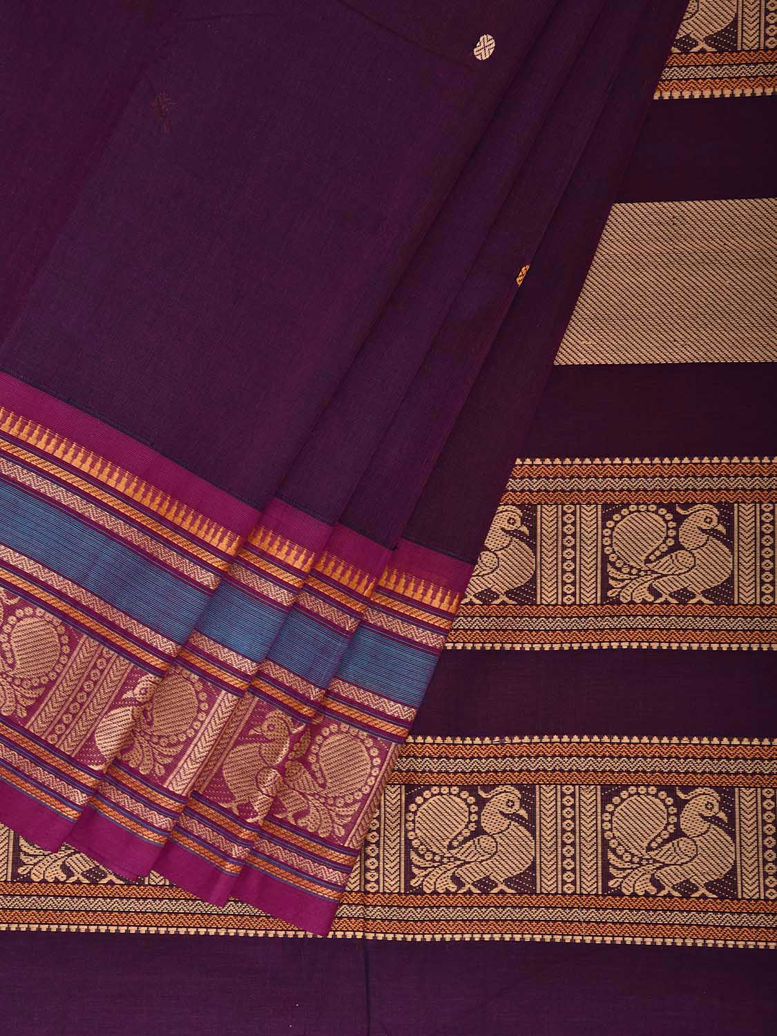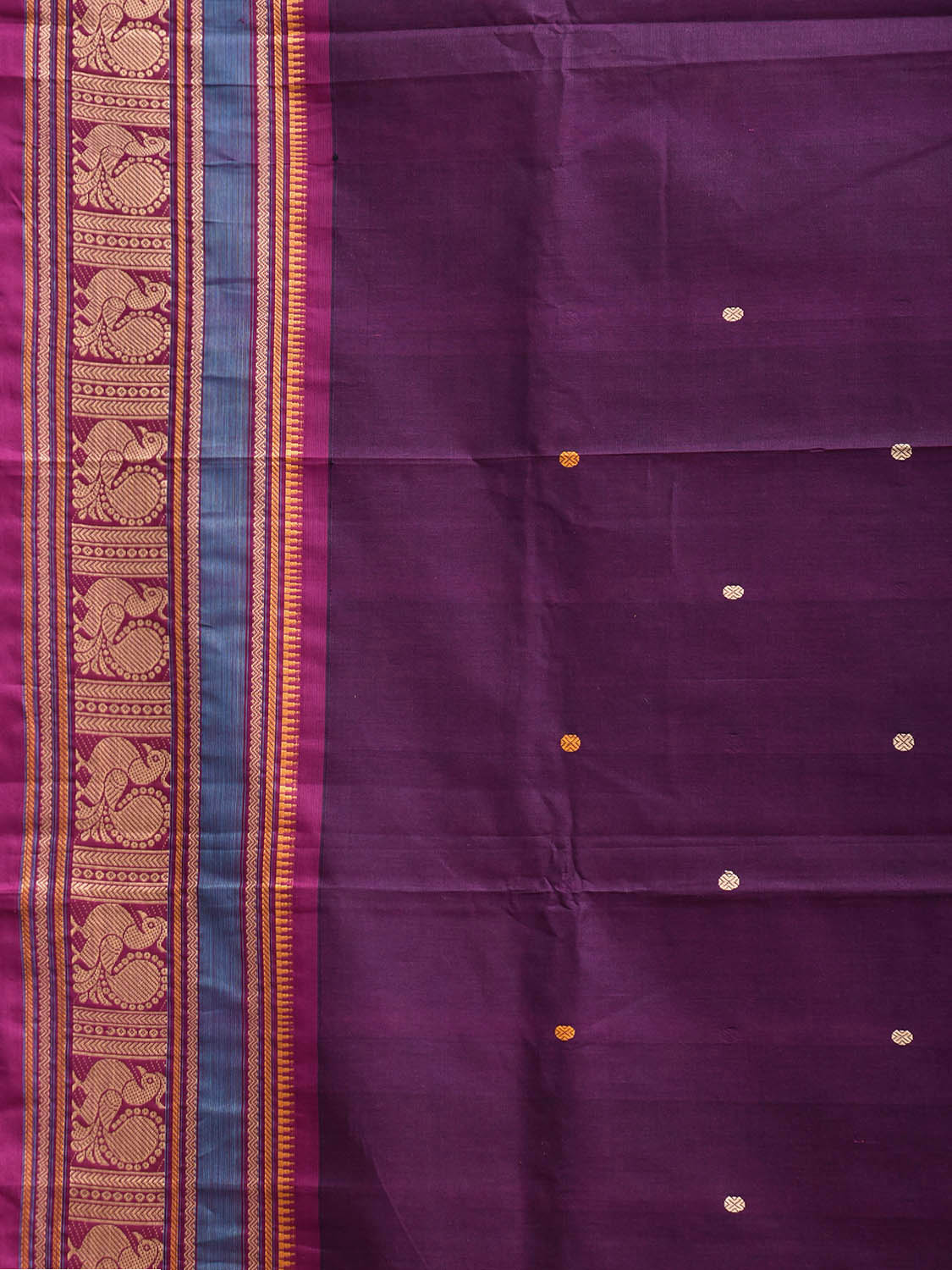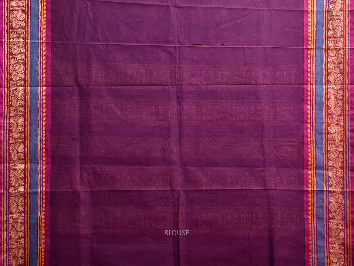 Purple Kanchipuram Cotton Saree with Checks and Border Design. Traditional Simple South Indian Attire Saree for any Casual Occasions. As it’s a cotton saree we advice gentle handwash separately for fabric care.