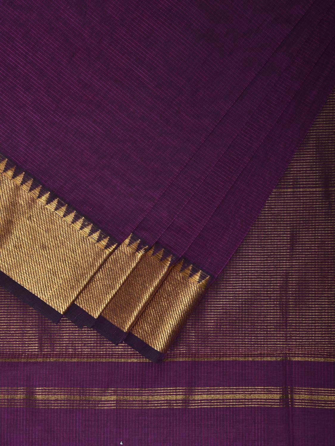 Purple Mangalgiri Cotton Handloom Saree with Strips and Small Temple Border Design No Blouse. These are Simple and Traditional Andhra Pradesh Handloom Dupattas, being soft cotton they are comfortable to wear. For fabric care we advise gentle handwash it separately. This saree has no blouse.
