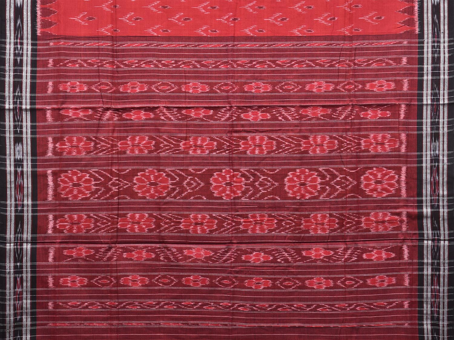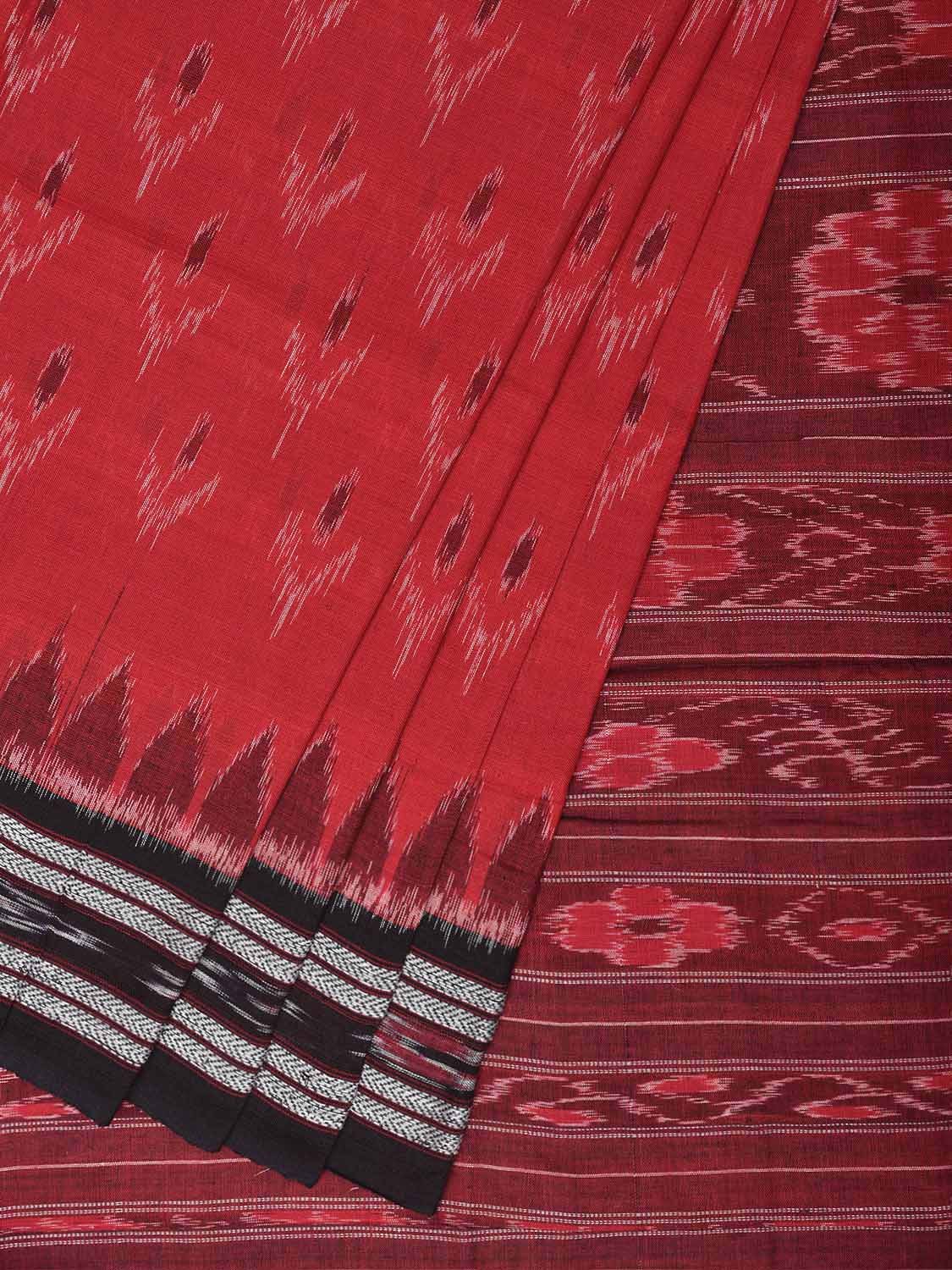Red and Black Ikat Cotton Handloom Saree with Body Buta and Pallu Design No Blouse. This Handloom Saree from Andhra Pradesh has been woven using the resist-dyeing, which produces the unique patterns adorning the fabric. We advise gentle handwash separately for fabric care. This saree has no blouse.