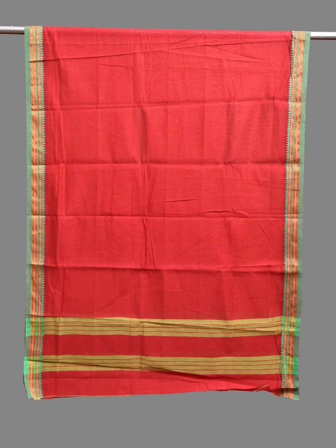 Red and Green Bamboo Cotton Dupatta with Small Temple Border Design ds3871