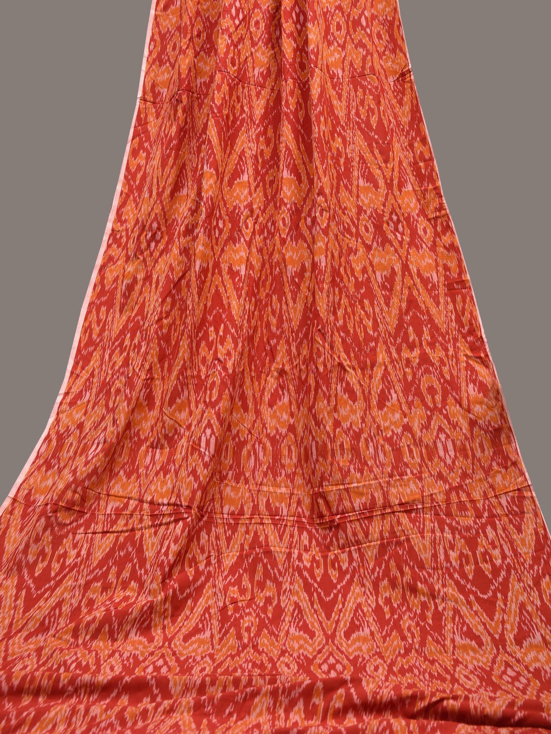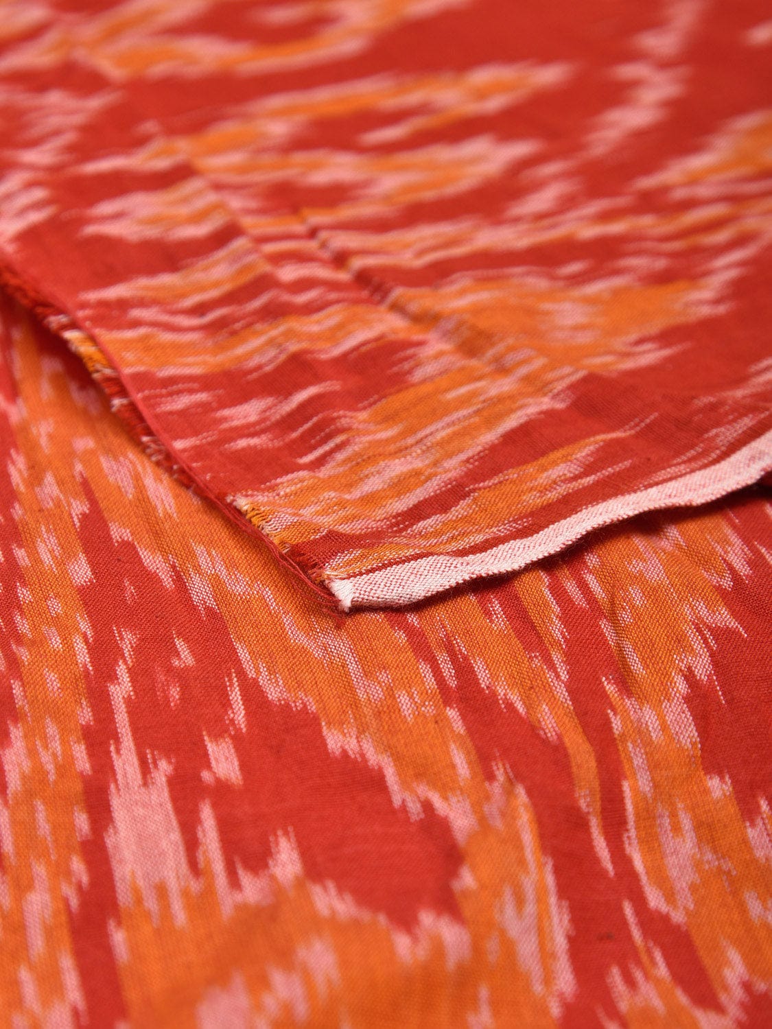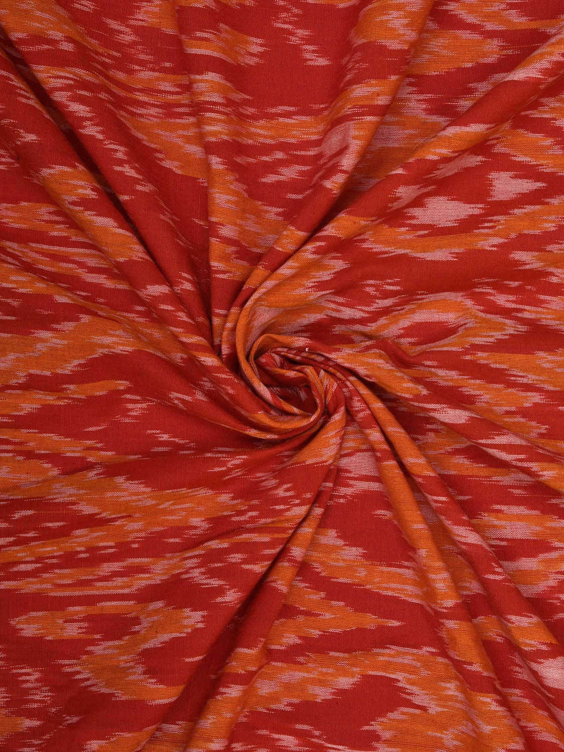 Red and Orange Ikat Cotton Handloom 2.5mts Fabric with Uzbekistan Pattern Design. This Handloom Cotton Fabric from Andhra Pradesh has been woven using the resist-dyeing, which produces the unique patterns adorning the fabric. Fabric is 44 inches in width. The price mentioned is for Quantity 1 = 2.5 meters. Note: Don't wash with other cloths for few times in the beginning.