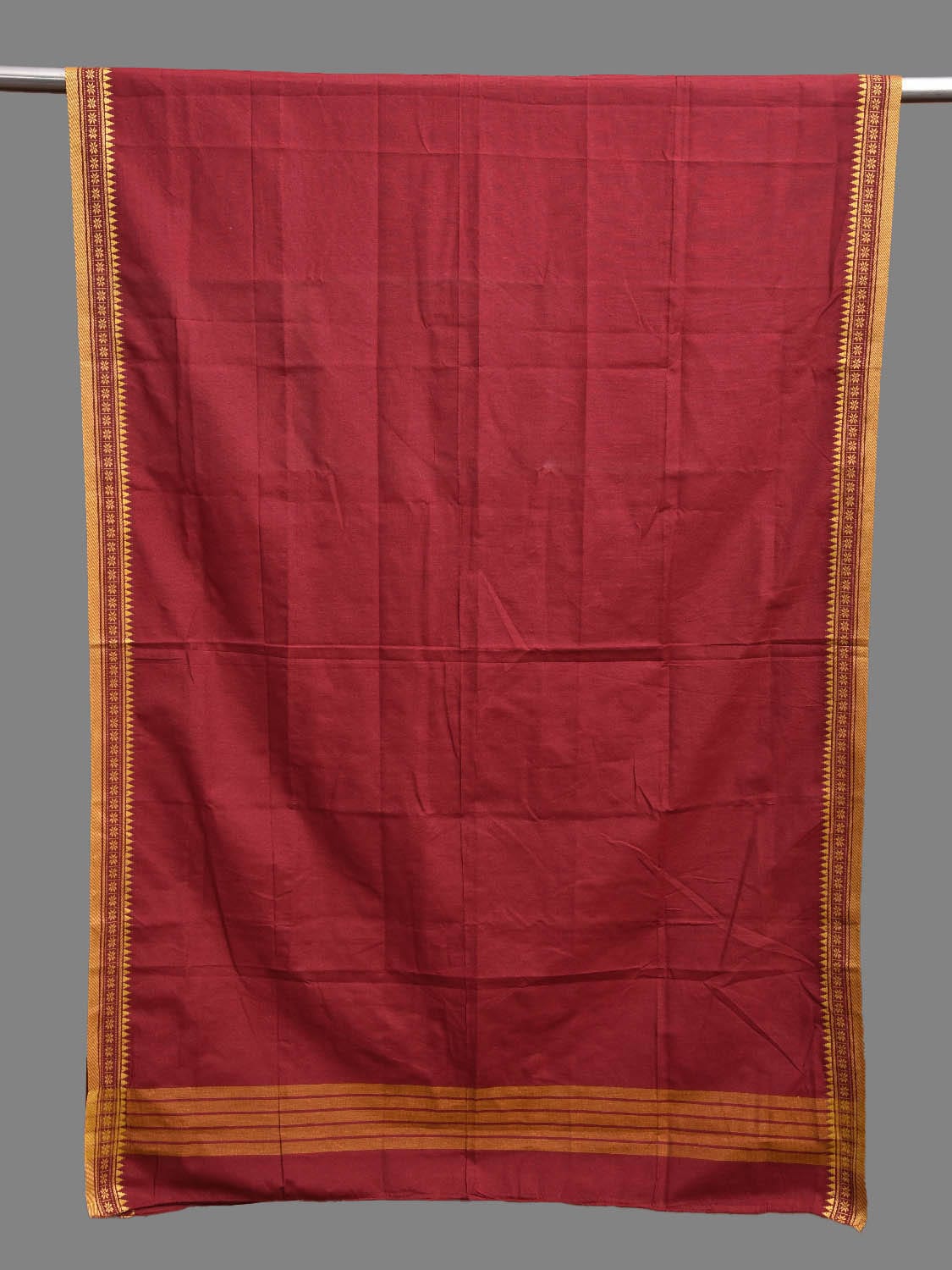 Red and Yellow Bamboo Cotton Dupatta with Small Temple Border Design ds3873