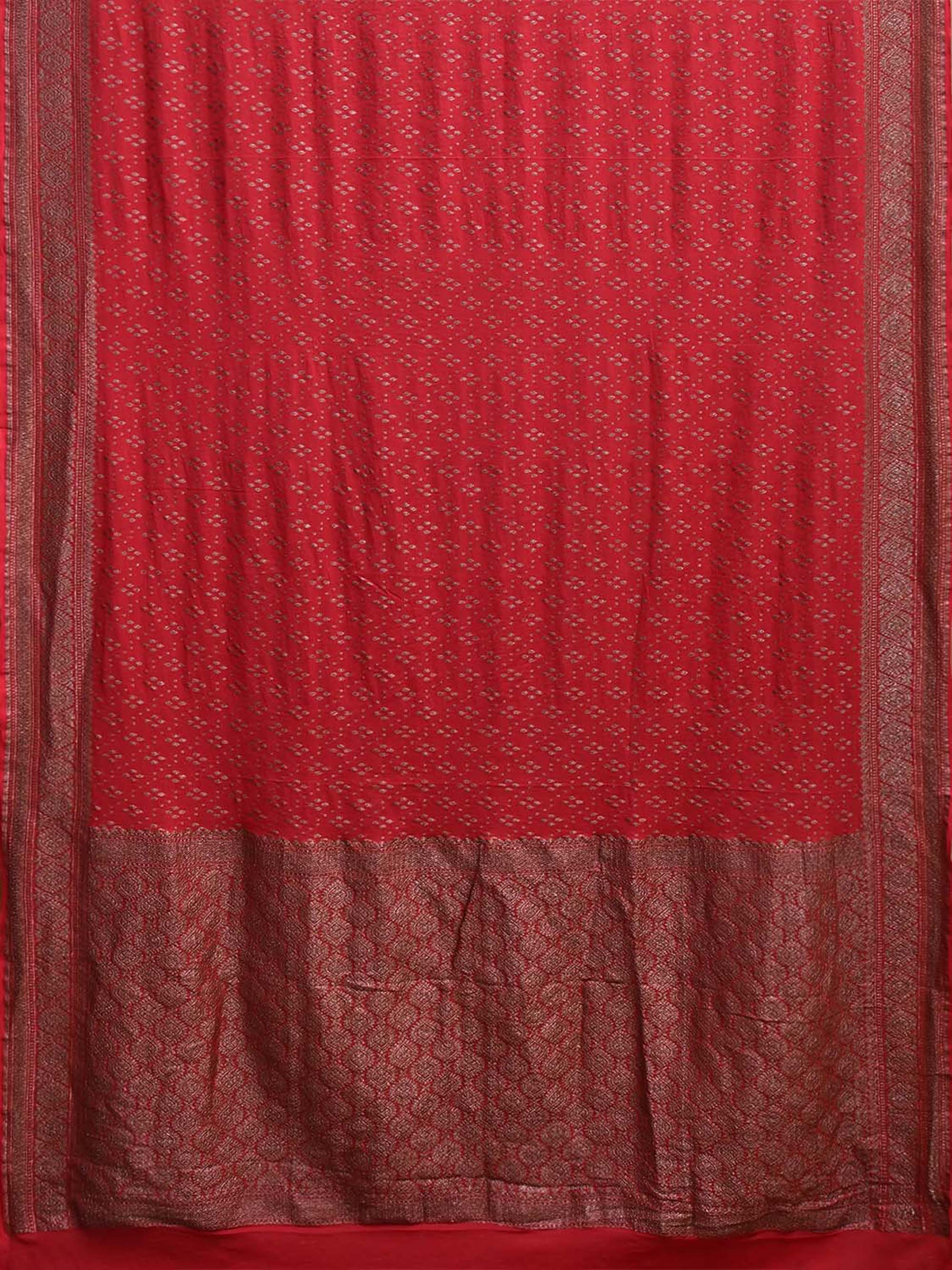 Red Banaras Georgette Saree with Pallu and Border Design b0340