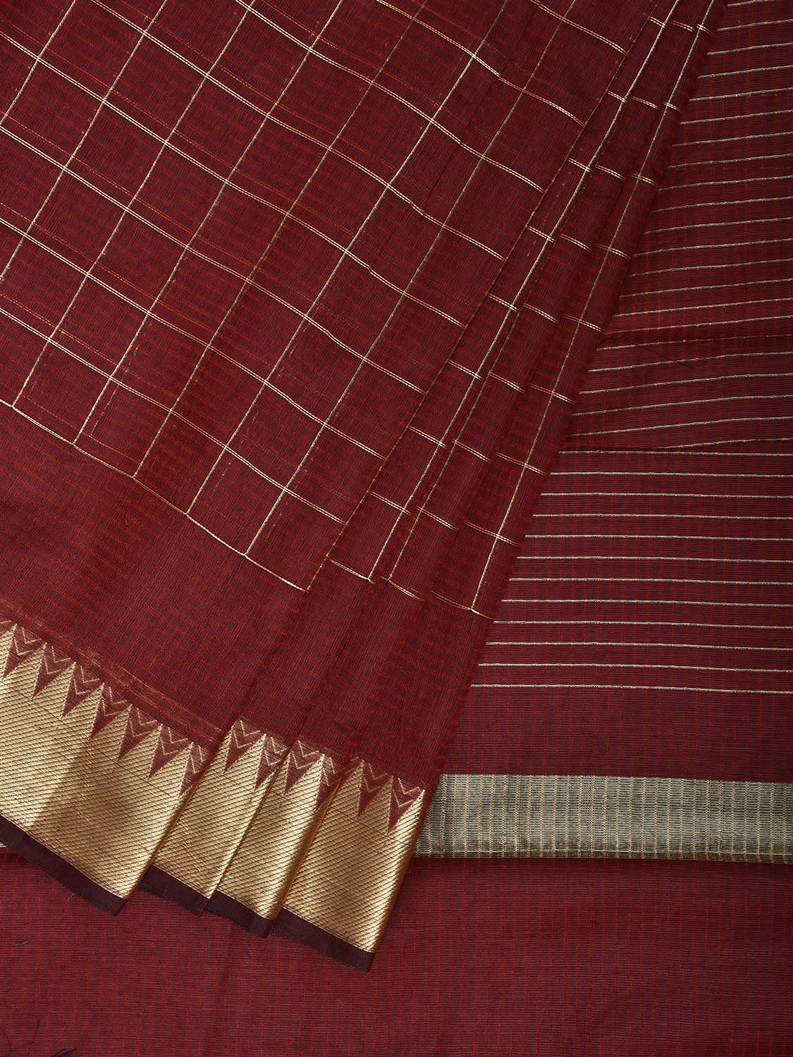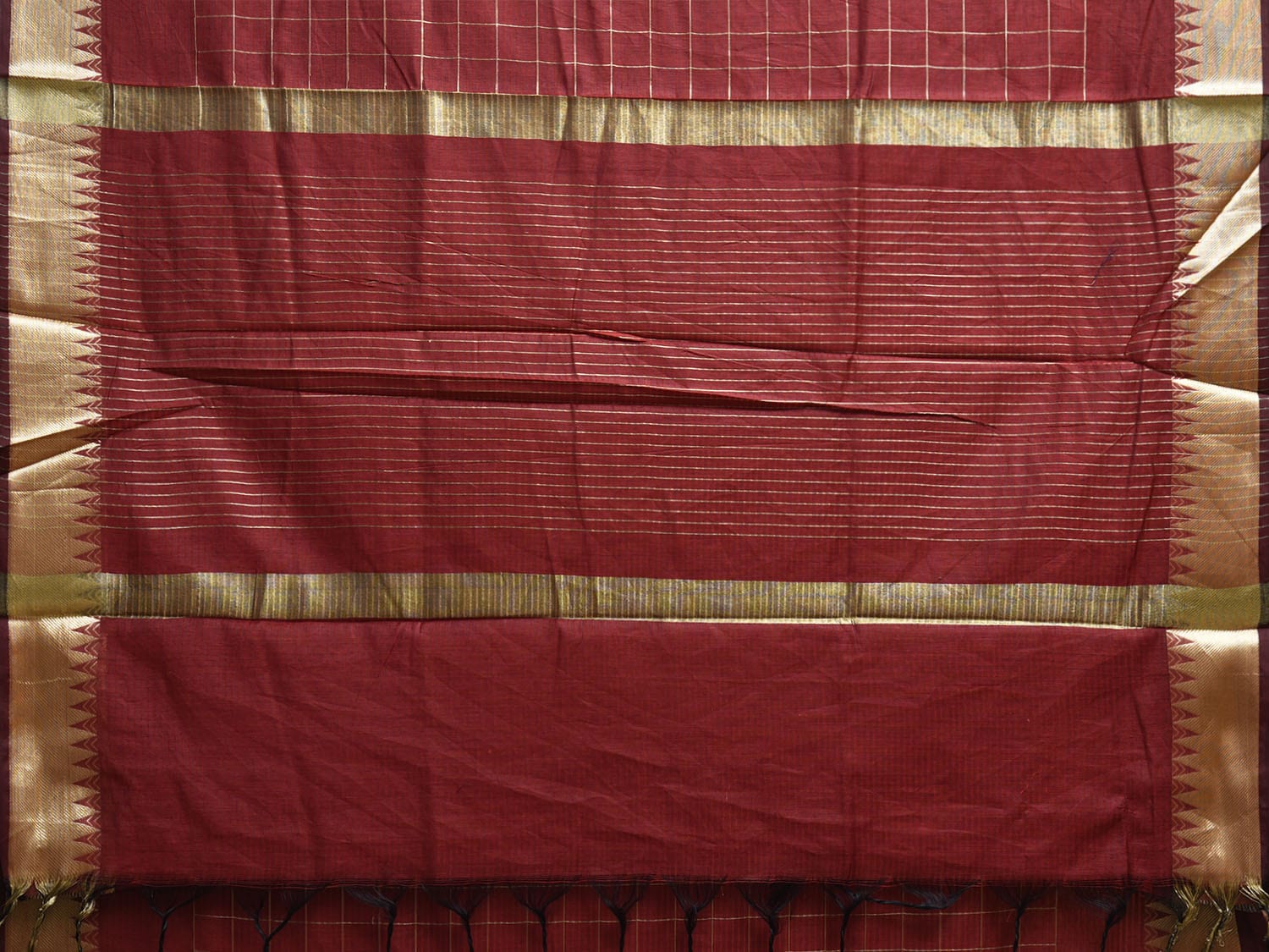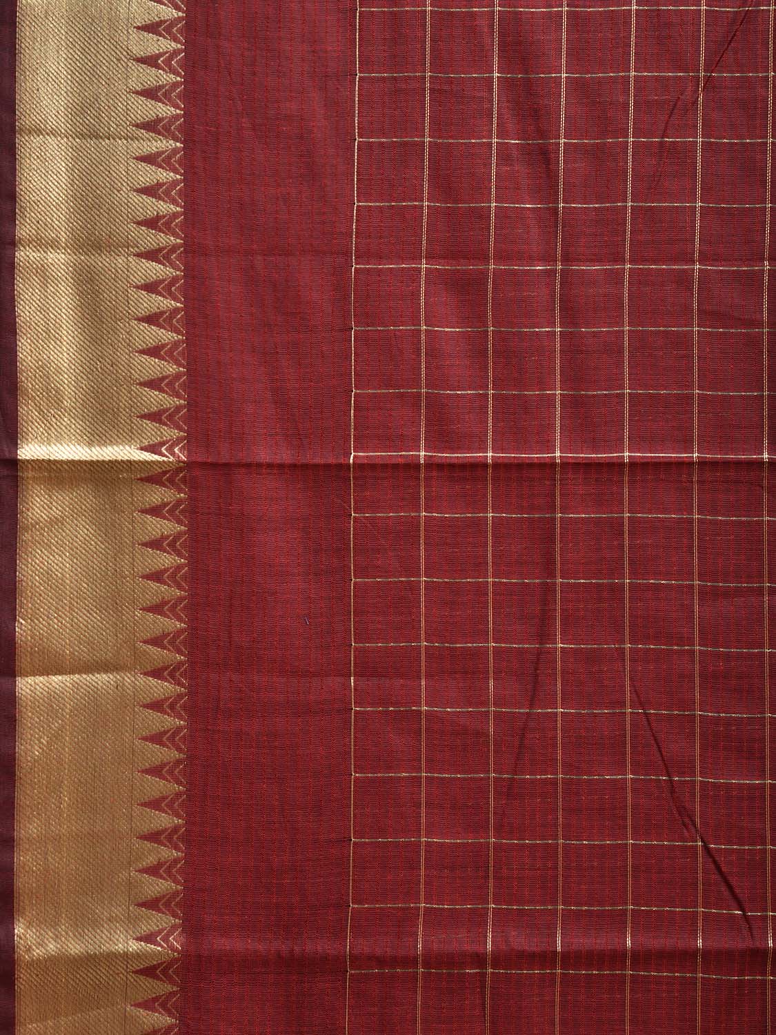 Red Mangalgiri Cotton Handloom Saree with Checks and Temple Border Design. These are Simple and Traditional Andhra Pradesh Handloom Dupattas, being soft cotton they are comfortable to wear. For fabric care we advise gentle handwash it separately.