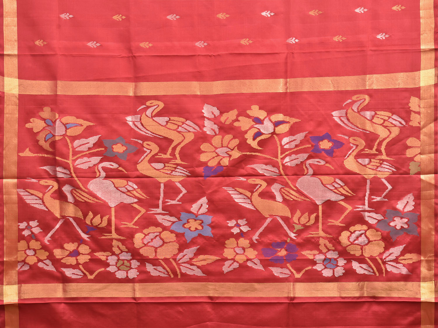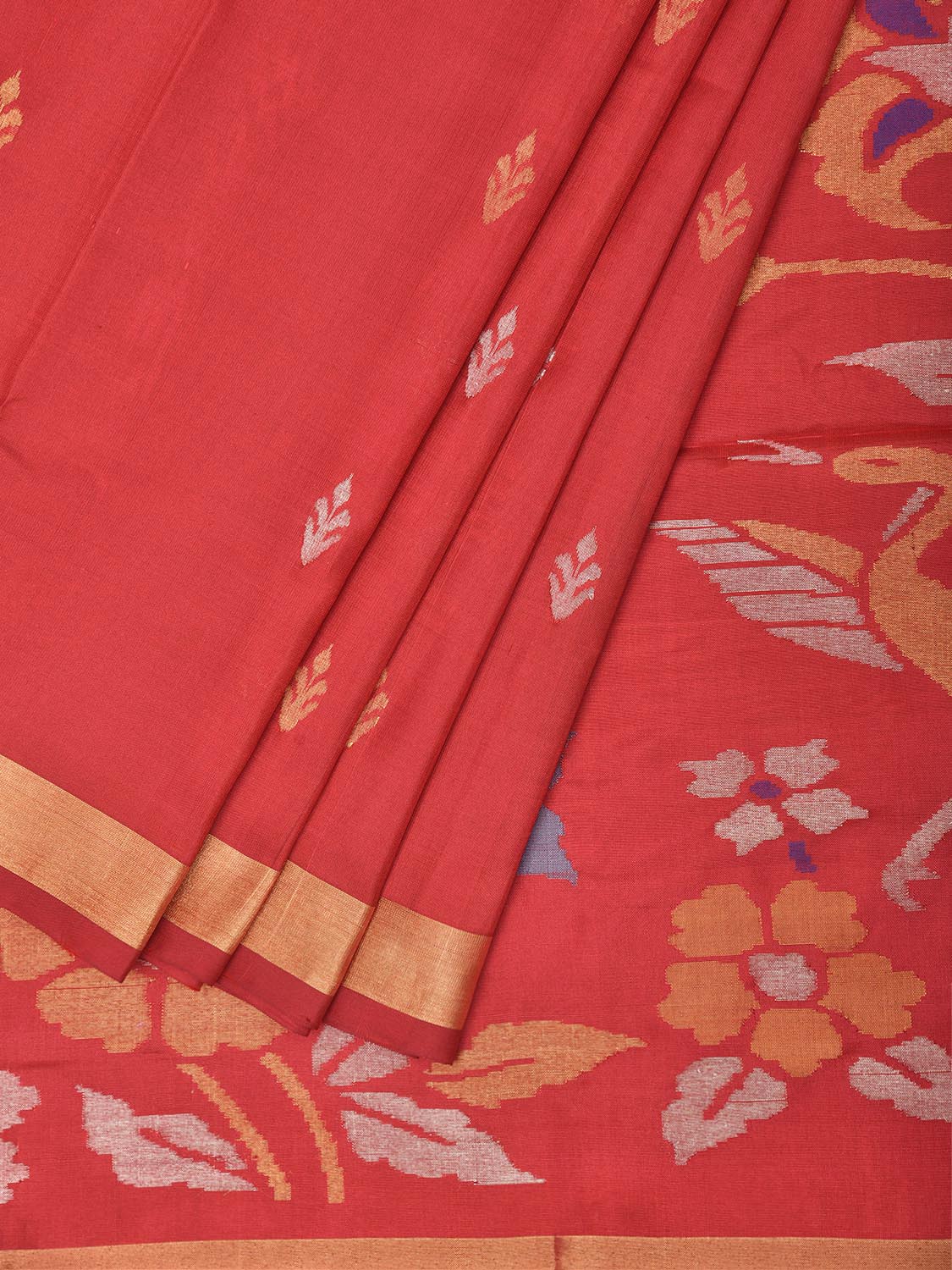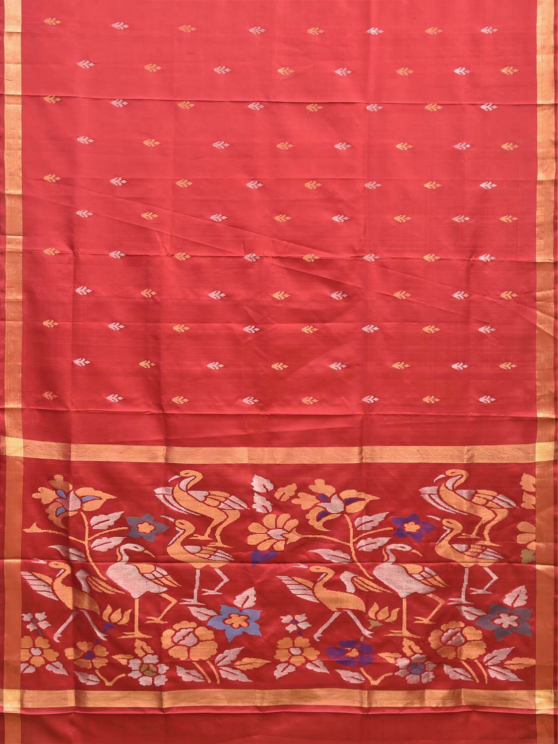 Red Uppada Pure Silk Handloom Saree with Birds Pallu Design. For fabric care we advise dry clean.