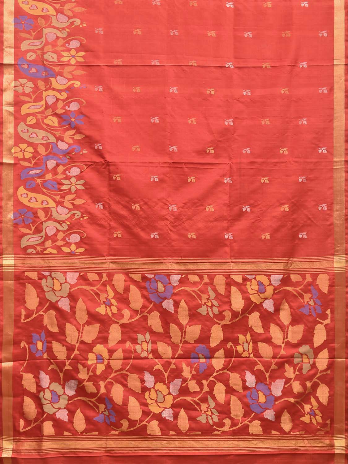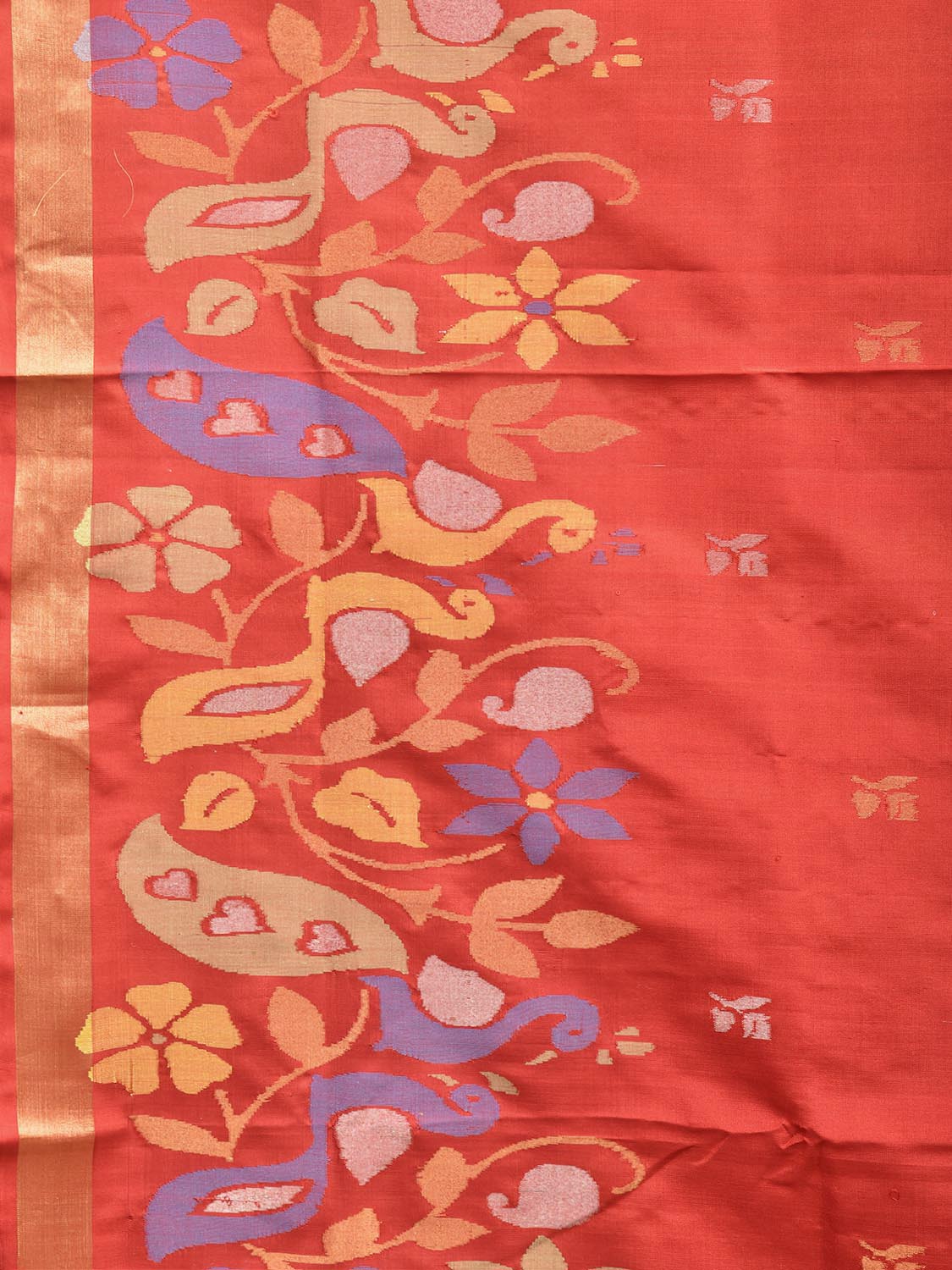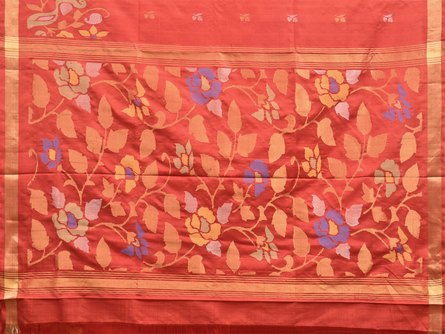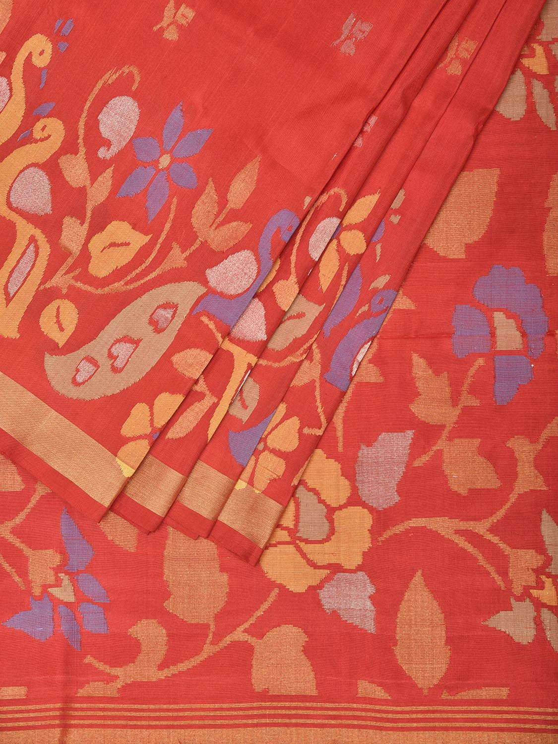 Red Uppada Pure Silk Handloom Saree with Floral Pallu and Peacocks Border Design. For fabric care we advise dry clean.