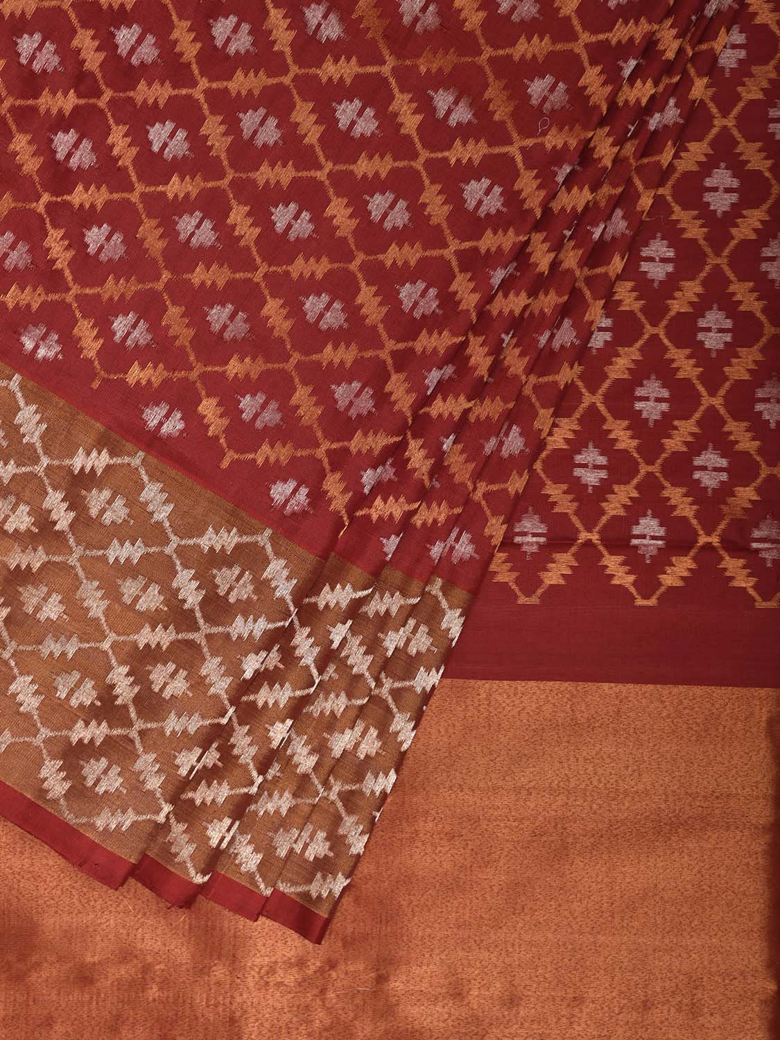 Red Uppada Silk Handloom Saree with All Over Jamdani Design.