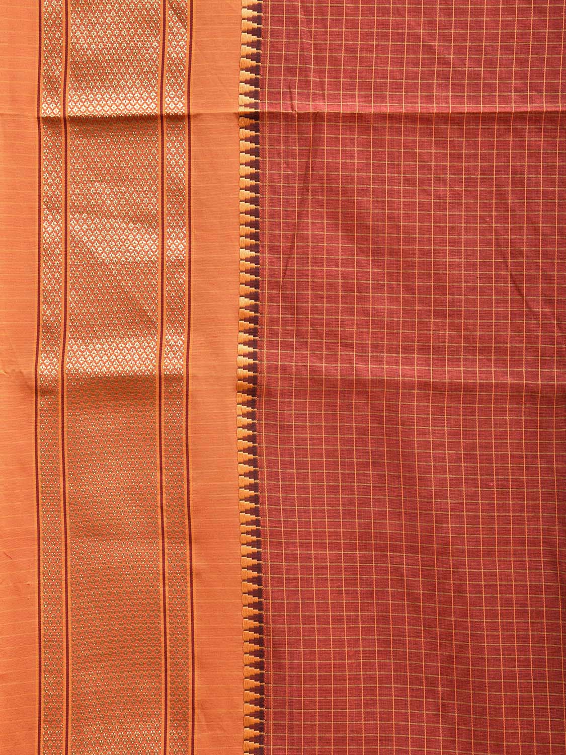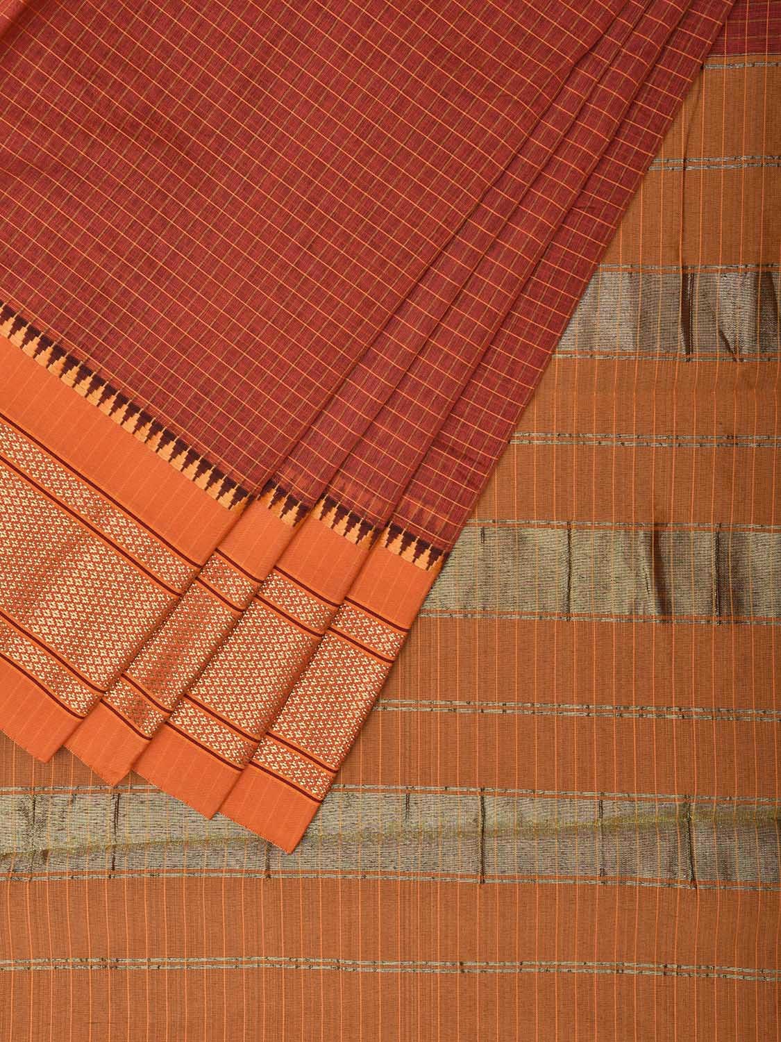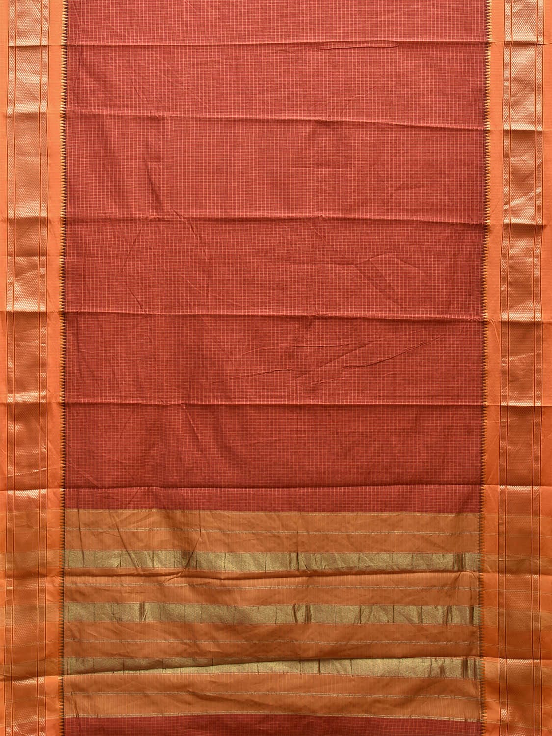 Rust and Mustard Bamboo Cotton Saree with Checks Design No Blouse. This is a blend of bamboo and cotton fibers, they have characteristics of both bamboo and cotton combined into one fabric. We Advise Gentle Handwash for Fabric Care. This Saree has no Blouse.