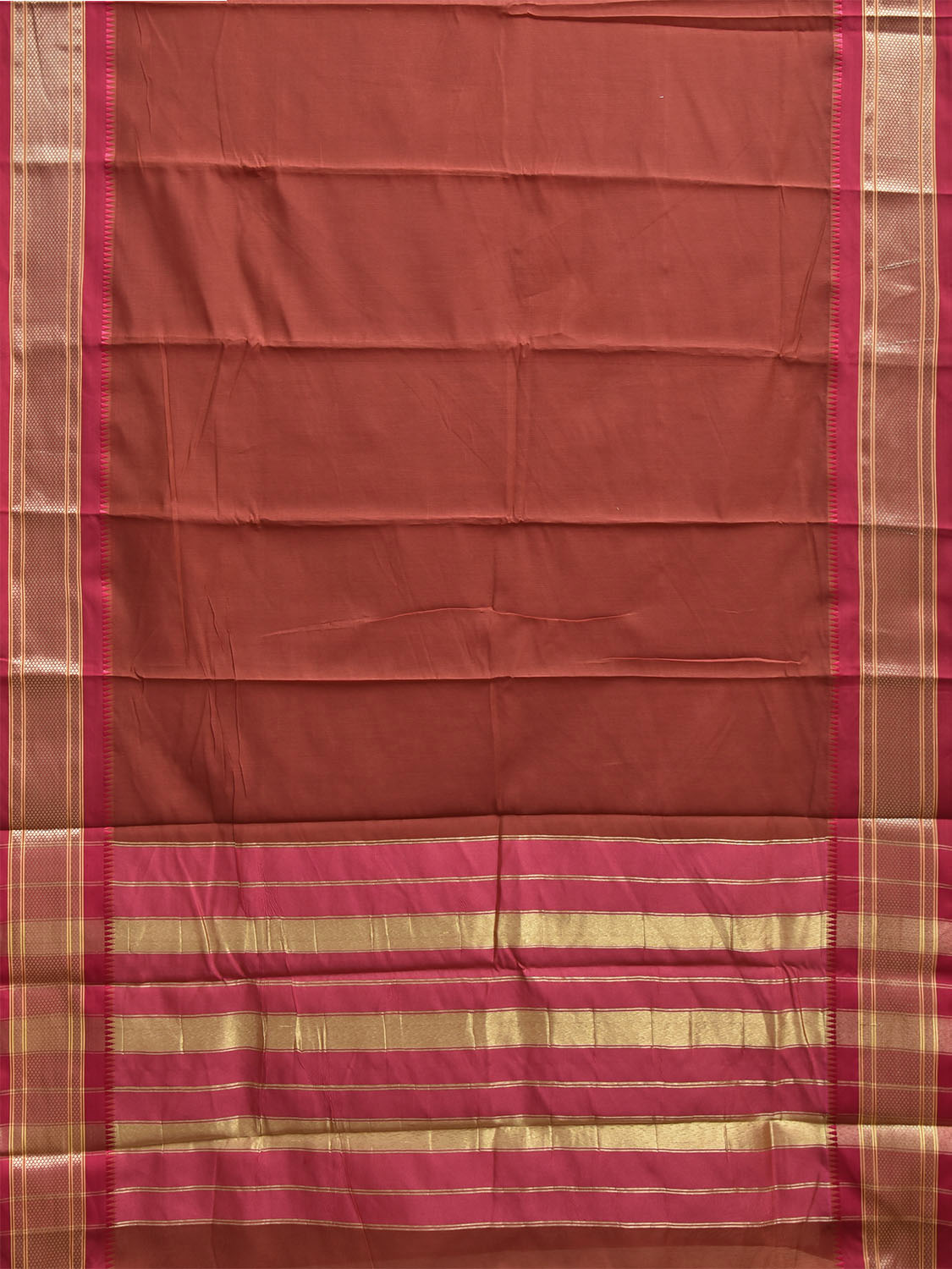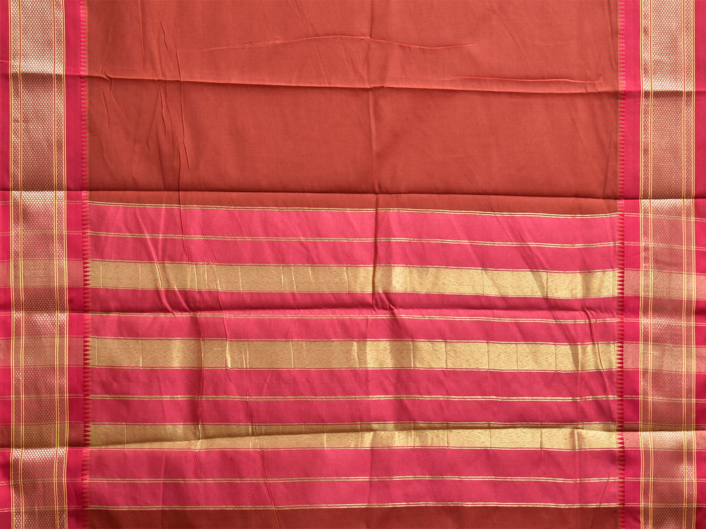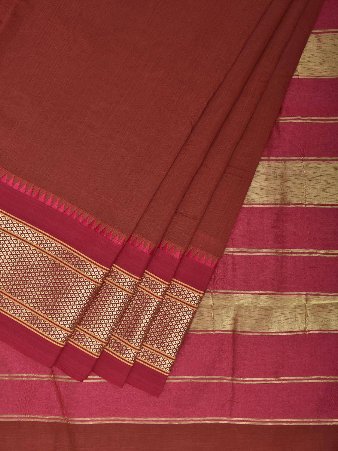 Rust and Pink Bamboo Cotton Plain Saree with Contrast Pallu Design No Blouse bc1009