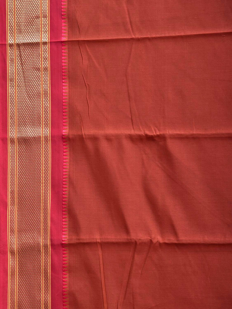 Rust and Pink Bamboo Cotton Plain Saree with Contrast Pallu Design No Blouse. This is a blend of bamboo and cotton fibers, they have characteristics of both bamboo and cotton combined into one fabric. We Advise Gentle Handwash for Fabric Care. This Saree has no Blouse.