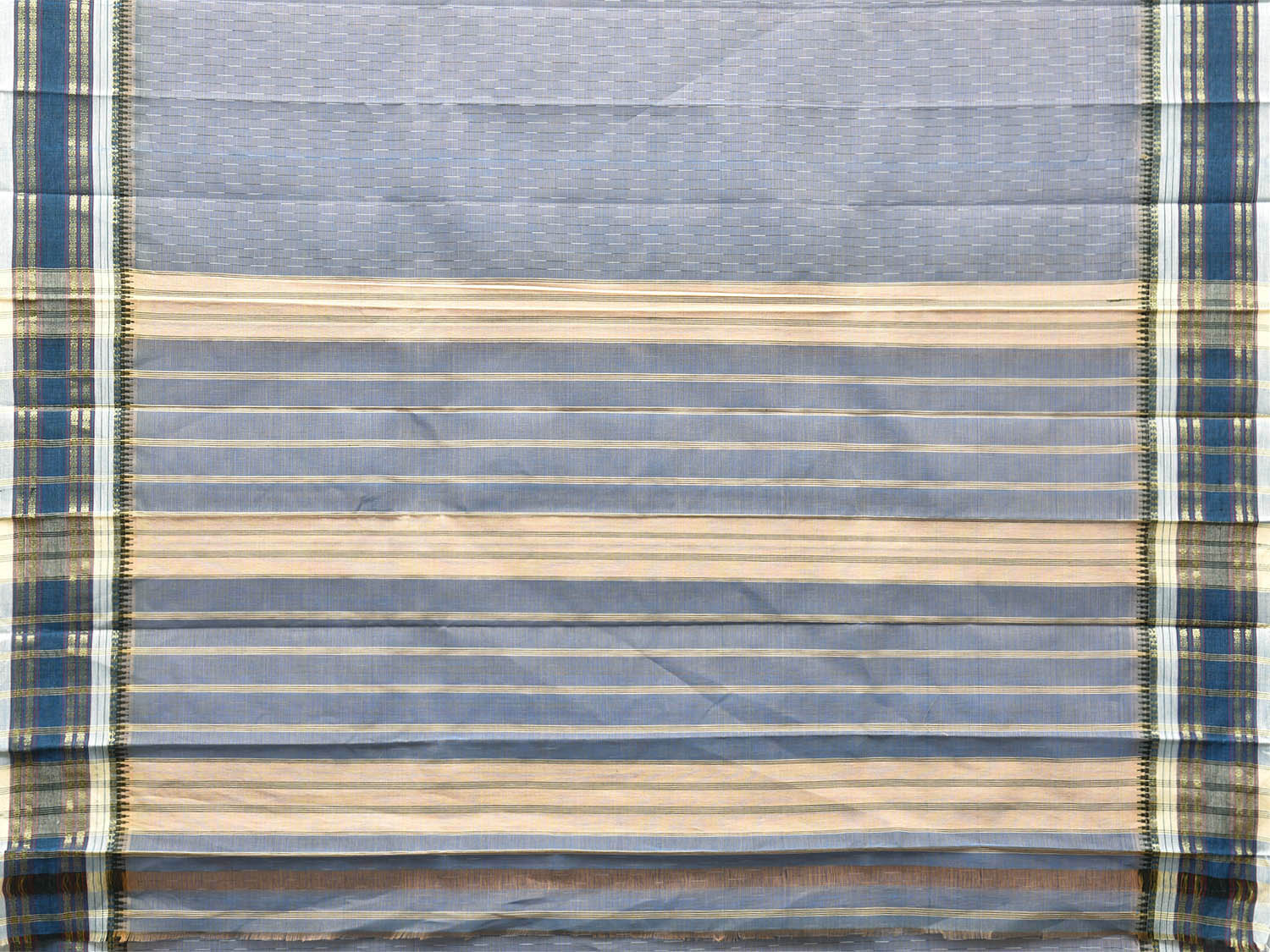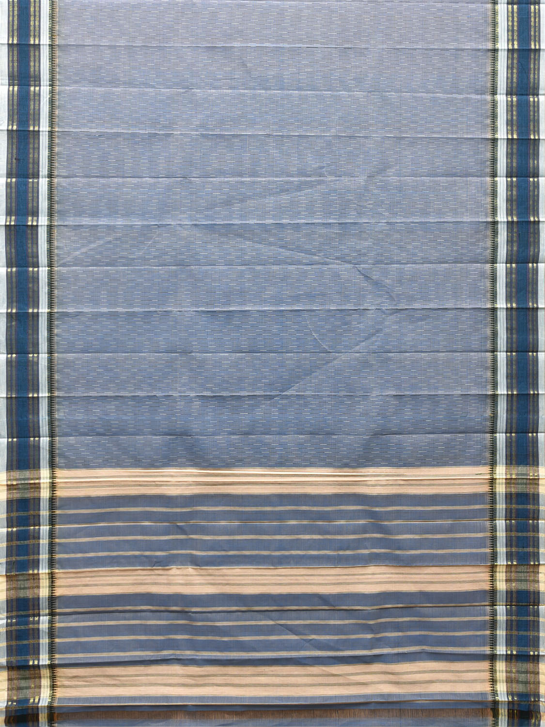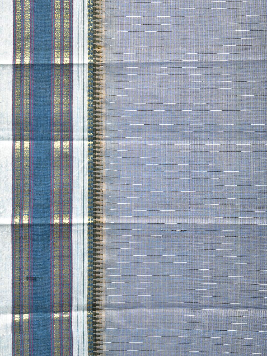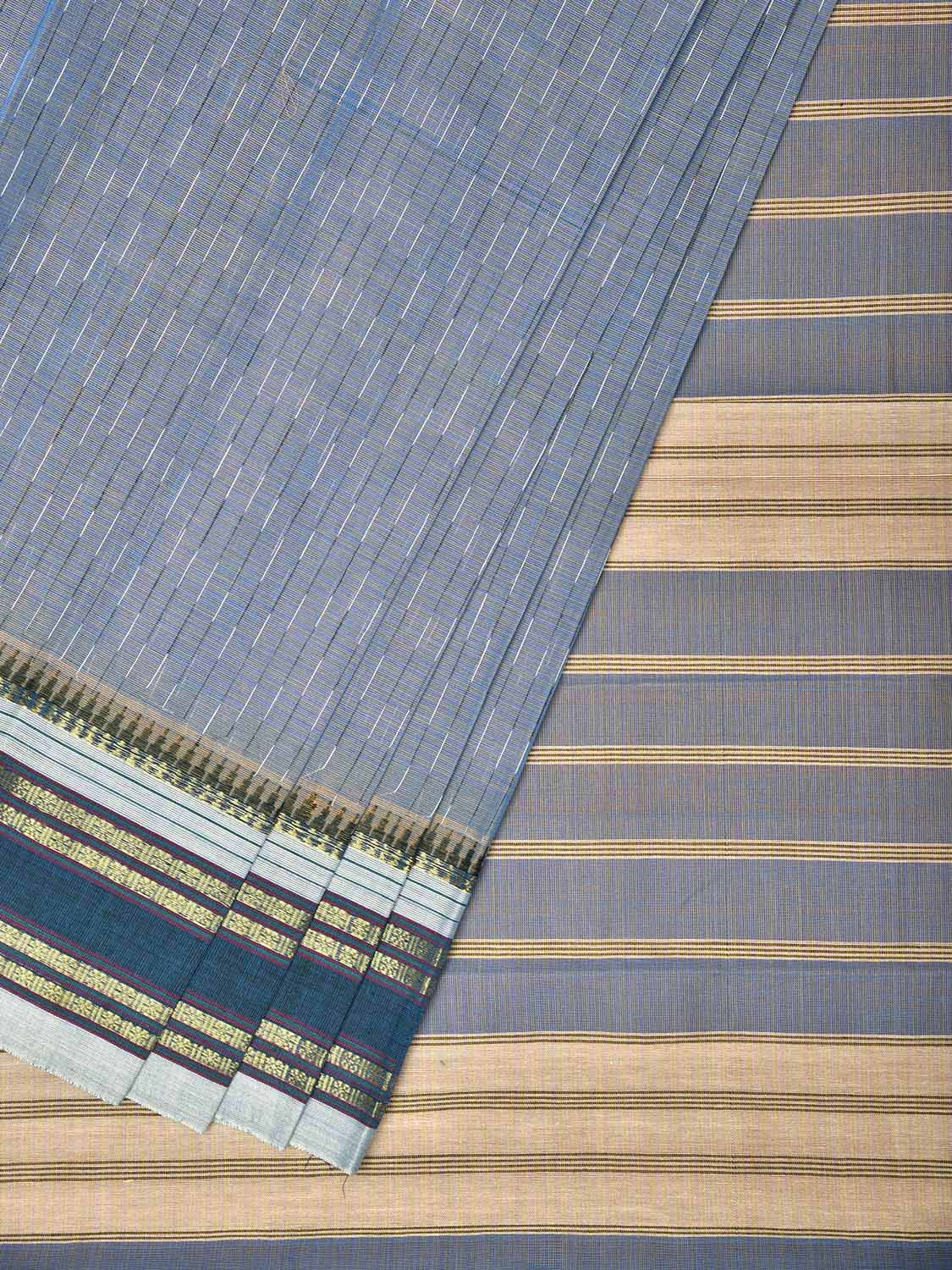 Sea Blue and Cream Narayanpet Cotton Saree with Strips Design No Blouse. For fabric care we advise gentle handwash separately. This saree has no blouse.
