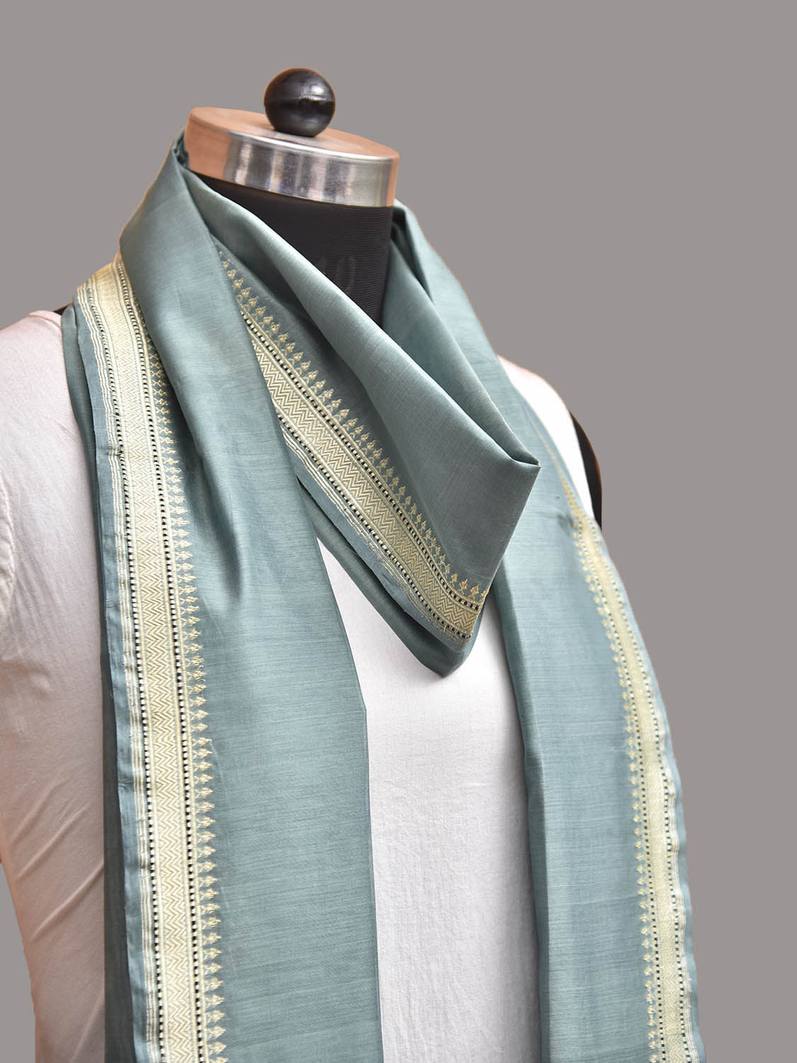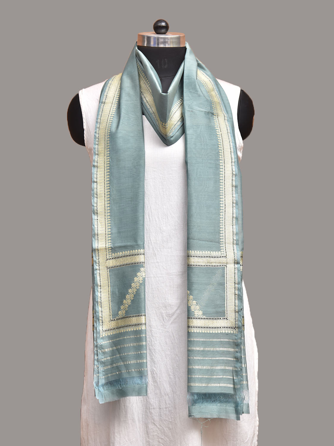 Sea Blue Banaras Cotton Silk Dupatta with Pallu Design. We advice dry clean for fabric care.