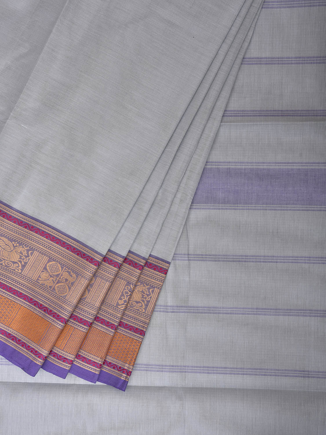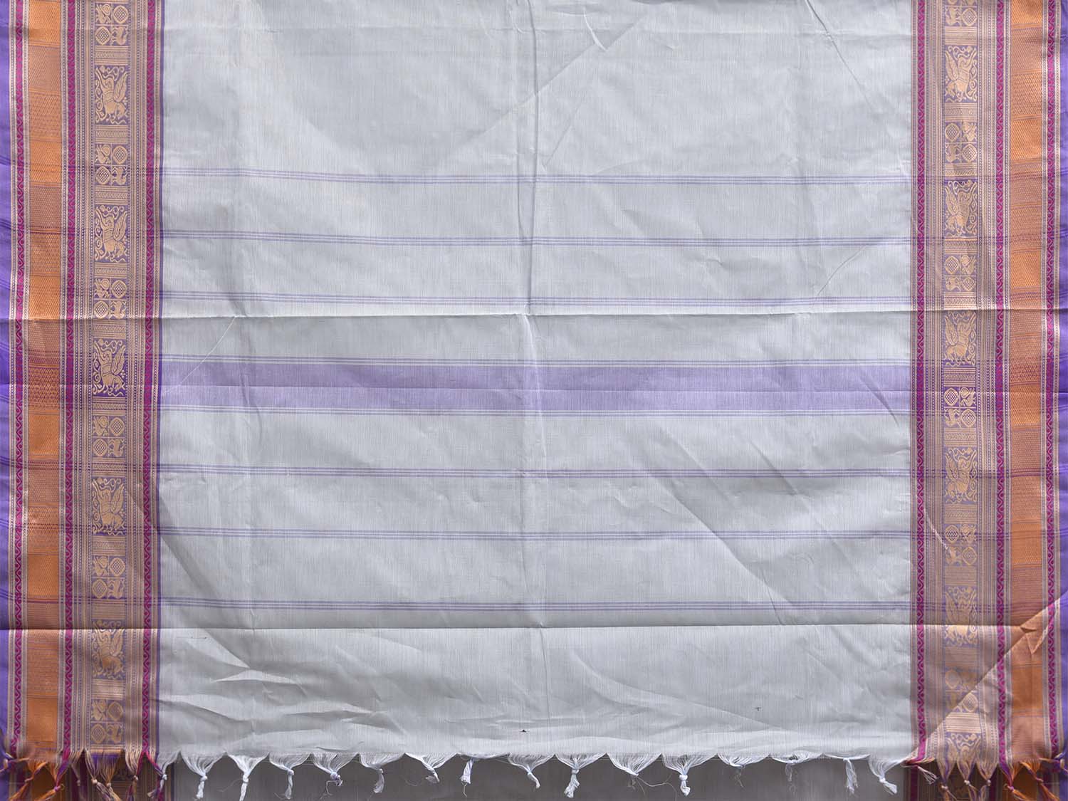 Sea Blue Kanchipuram Cotton Plain Saree with Strips Pallu and Border Design. Traditional Simple South Indian Attire Saree for any Casual Occasions. As it’s a cotton saree we advice gentle handwash separately for fabric care. This saree has no blouse.