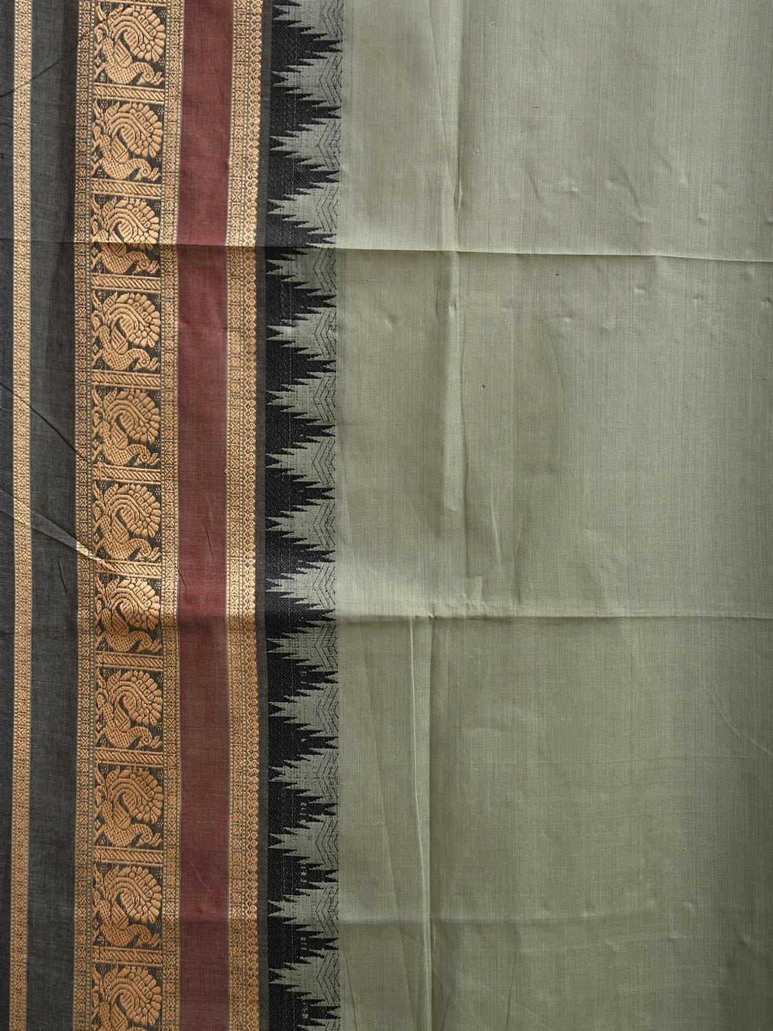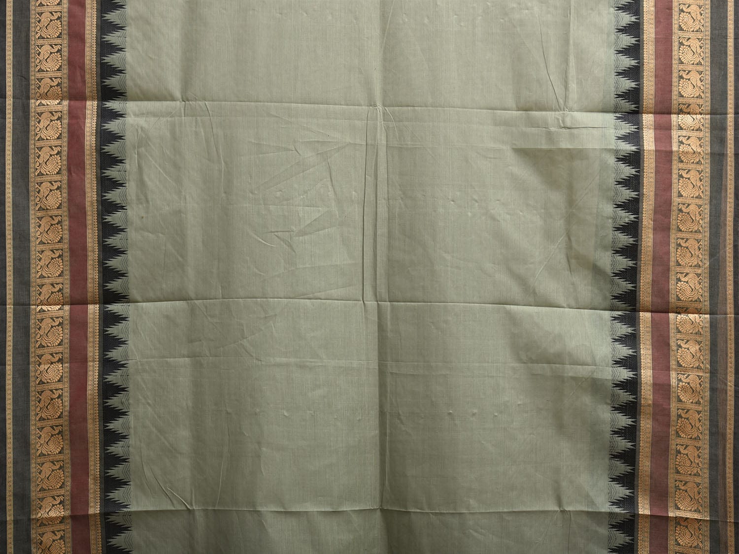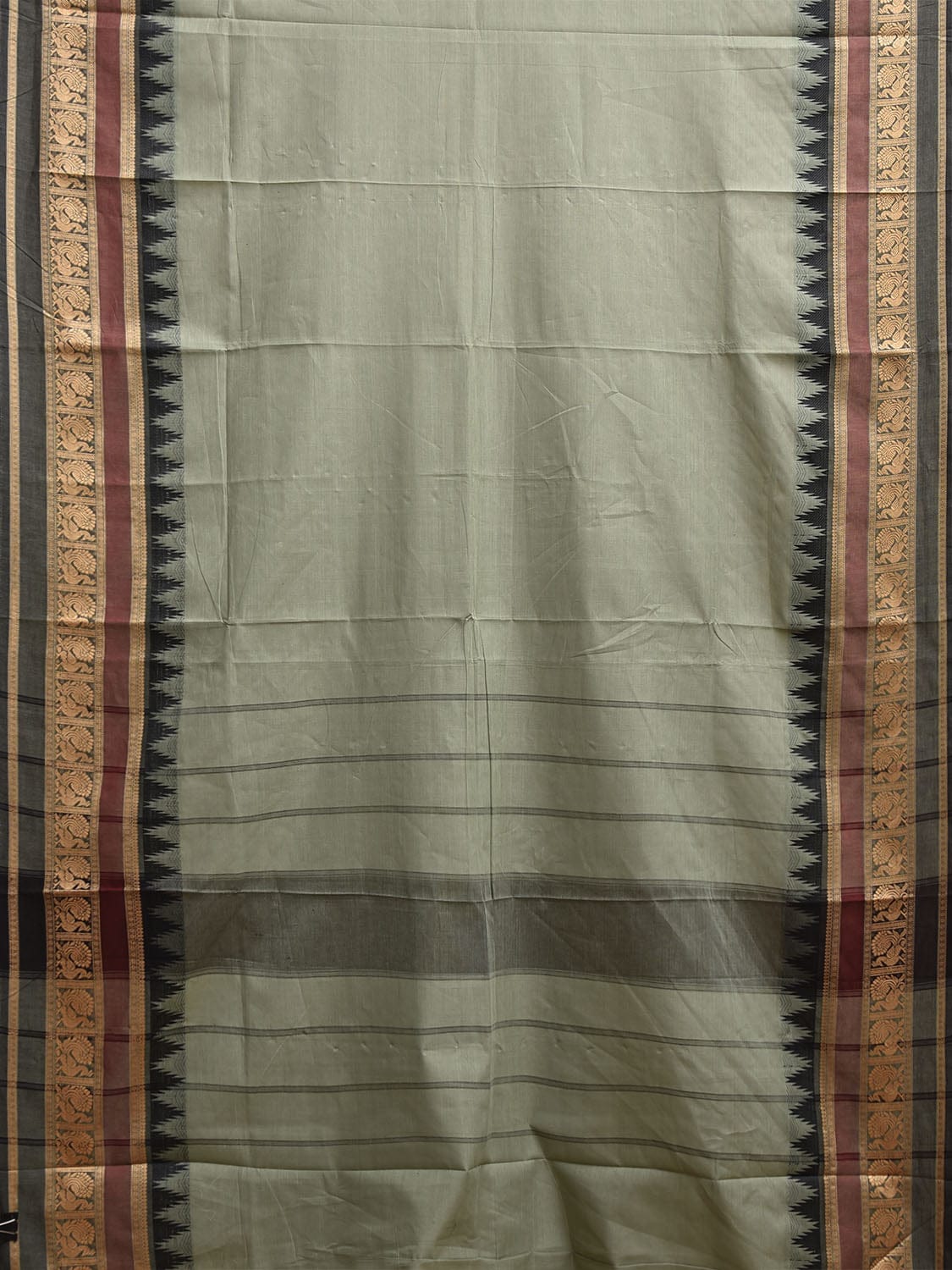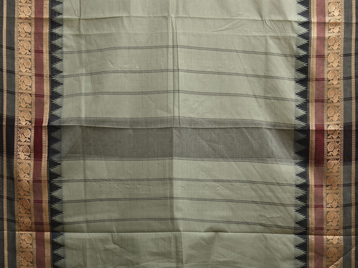 Sea Green and Black Kanchipuram Cotton Plain Saree with Temple Border Design. Traditional Simple South Indian Attire Saree for any Casual Occasions. As it’s a cotton saree we advice gentle handwash separately for fabric care.