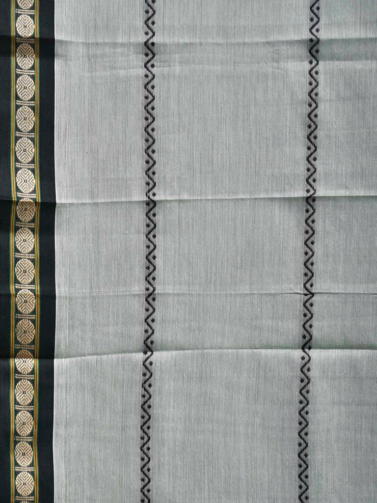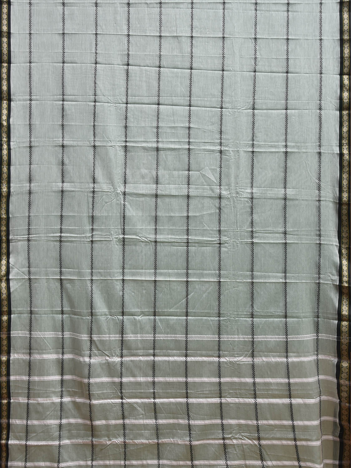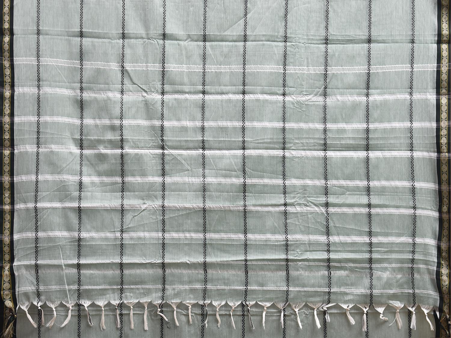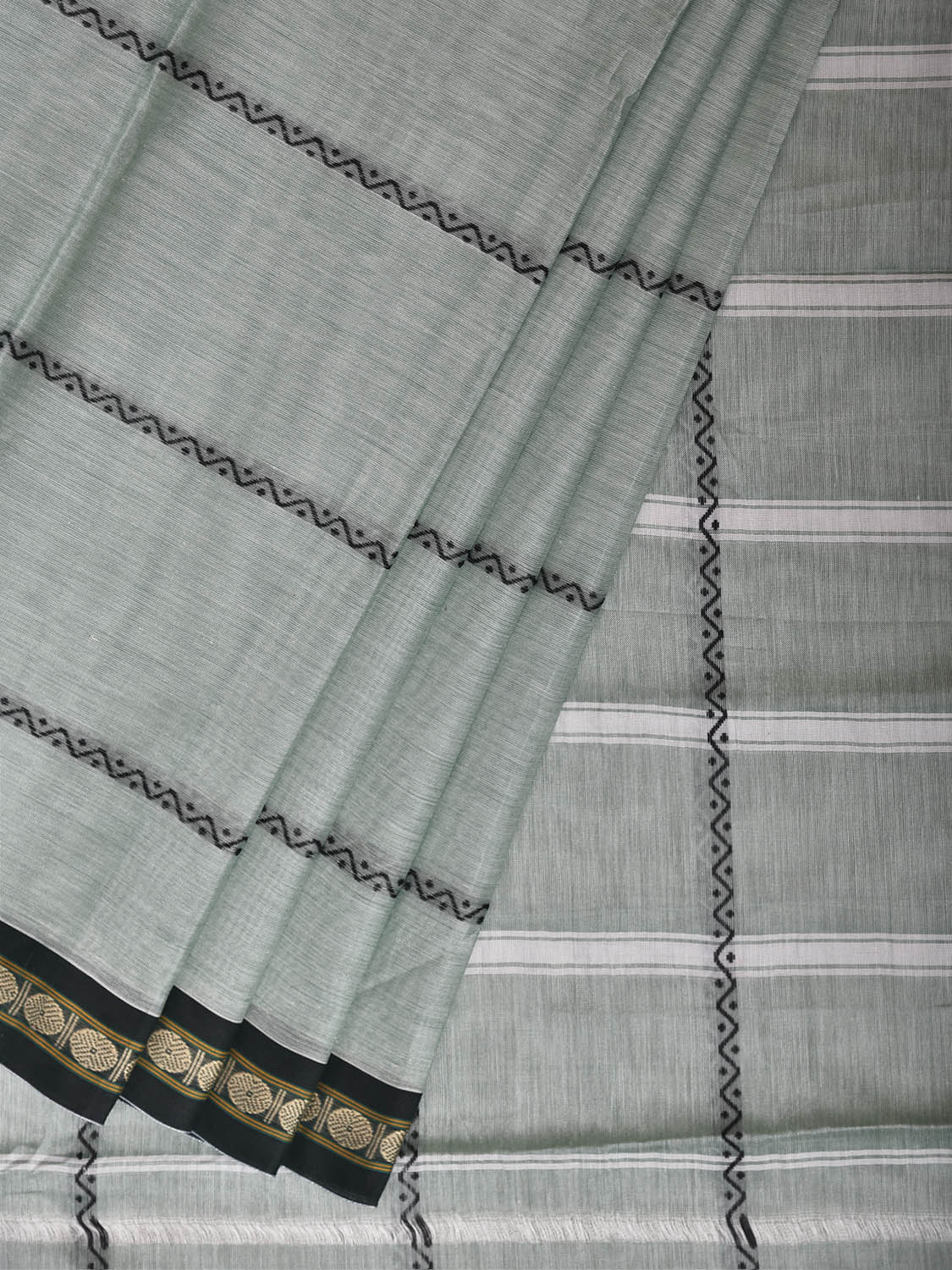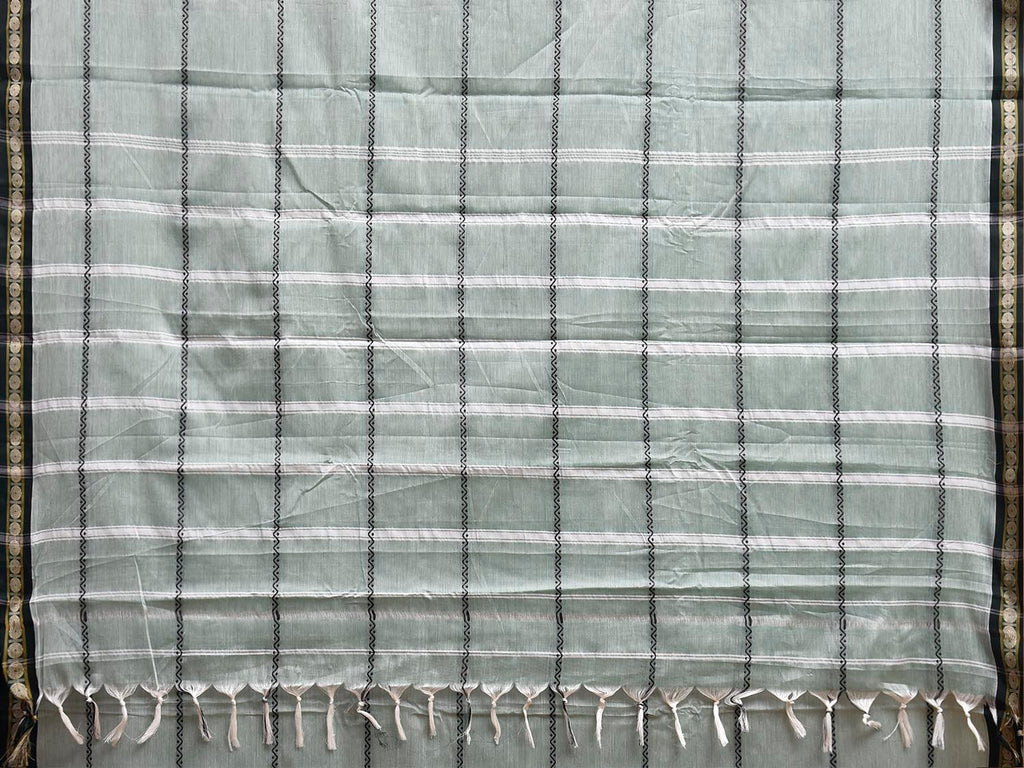 Sea Green and Black Narayanpet Cotton Saree with Strips Design No Blouse. This saree has no blouse.