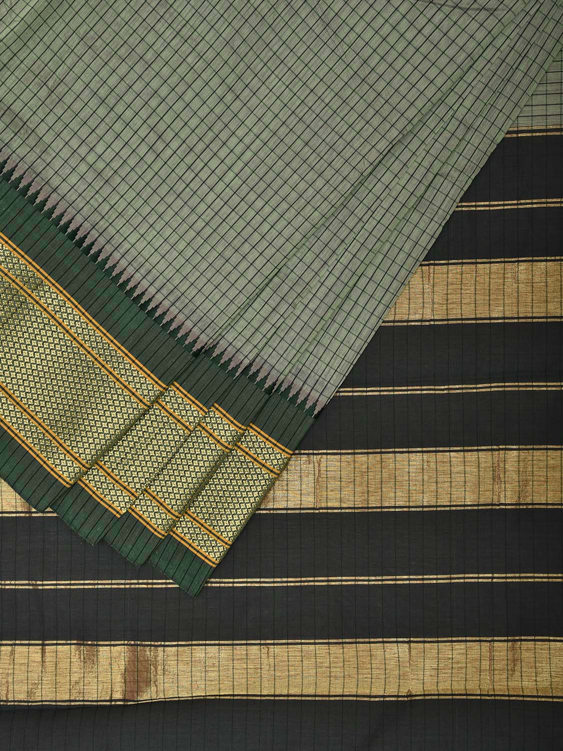 Sea Green and Dark Green Bamboo Cotton Saree with Checks Design No Blouse. This is a blend of bamboo and cotton fibers, they have characteristics of both bamboo and cotton combined into one fabric. We Advise Gentle Handwash for Fabric Care. This Saree has no Blouse.