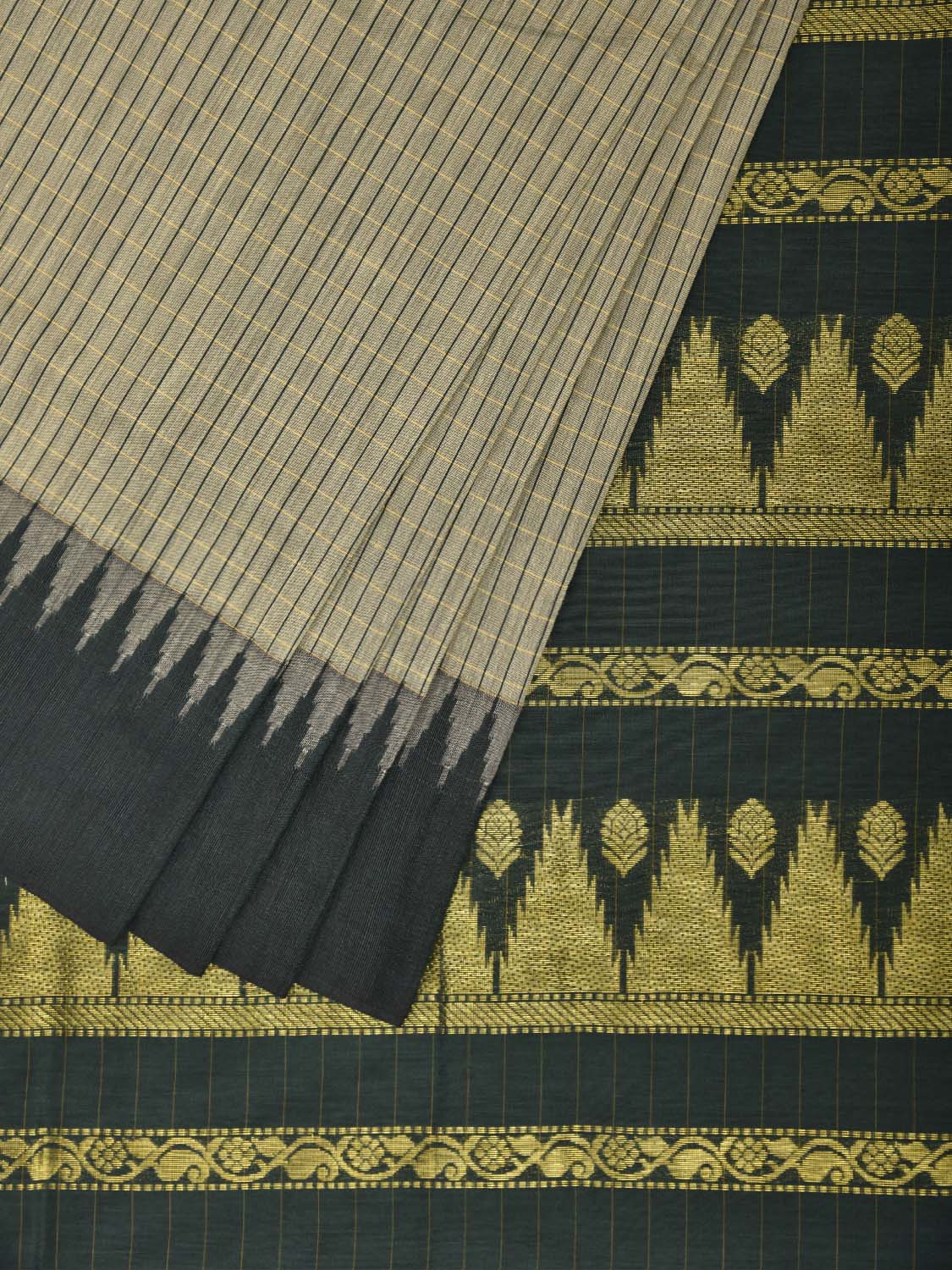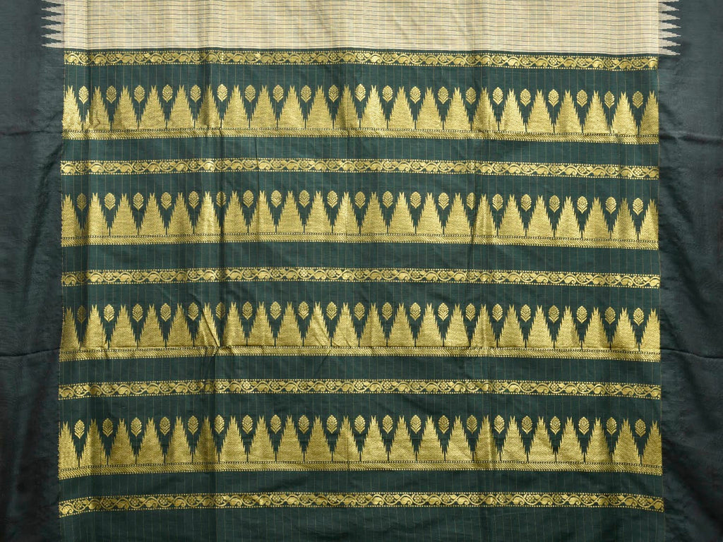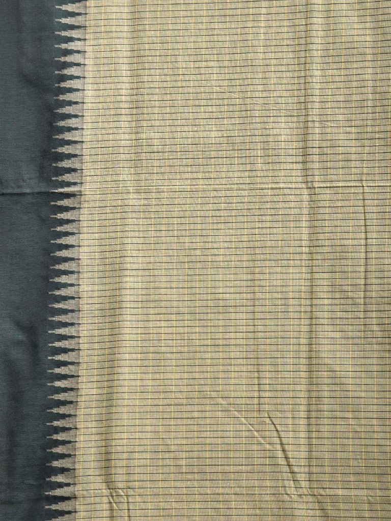 Sea Green and Green Gadwal Cotton Viscose Saree with Checks and Temple Border Design. Gadwal Sarees are known for their traditional design of border and pallu made of silk and body being either cotton or silk. They are known as Sico sarees for border and pallu being silk and body being cotton. We advice dry clean for fabric care.